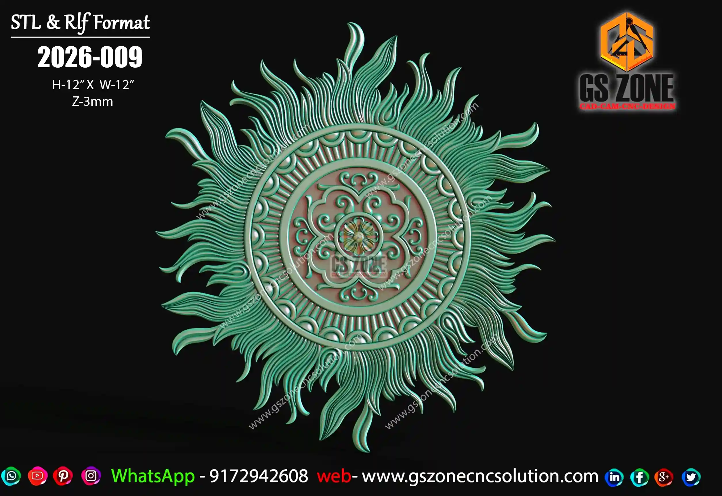 ✅ GSZONE Regular Design 🔖 Product Code: 2025-036 📏 Height & Width: 12 inches 📏 Z-Depth: 7 mm 📁 File Formats: .RLF, .STL (Compatible with ArtCAM & CNC Routers)