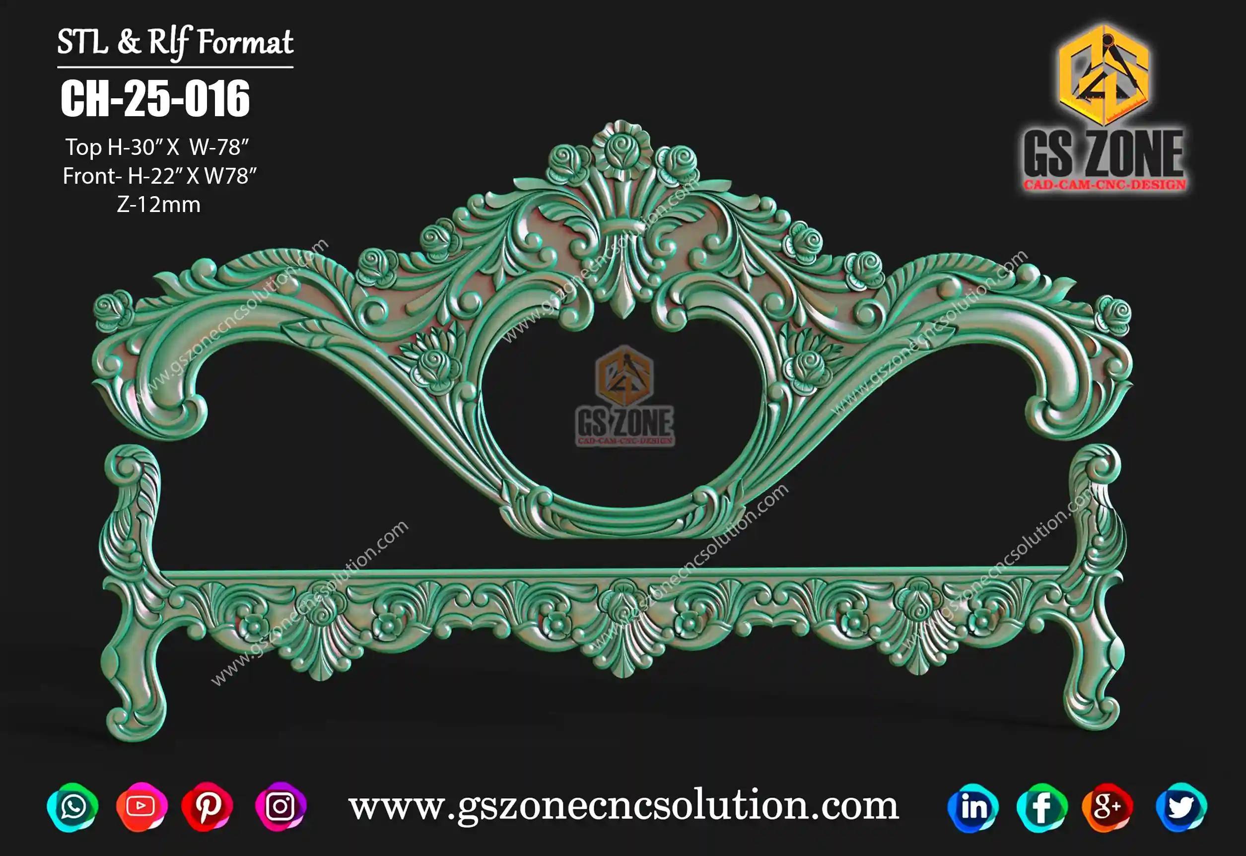 🎀 GSZONE CNC CARVING DESIGN – CH-25-016 🎀 (STL & RLF Format Available) 📏 Size & Dimensions 🔸 Top: H-30” × W-78” 🔸 Front: H-22” × W-78” 🔸 Z-Depth: 12 mm