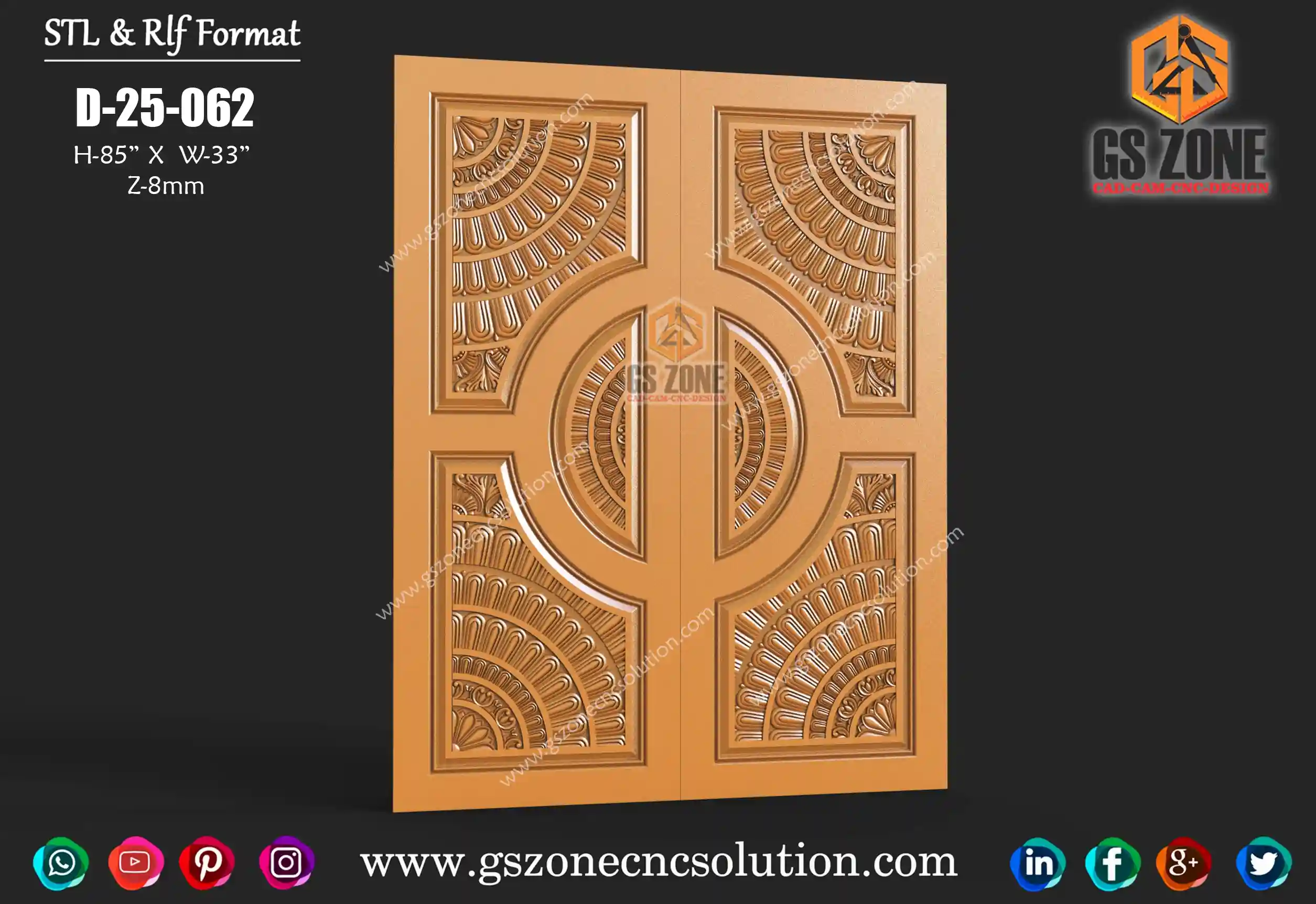 🔶 D-25-062 | Designer Double Door Panel – GSZone Exclusive 📏 Design Size: • Height – 85" • Width – 33" 🔍 Z-Depth: 8 mm 📁 File Formats: .RLF & .STL (ArtCAM / CNC Ready)