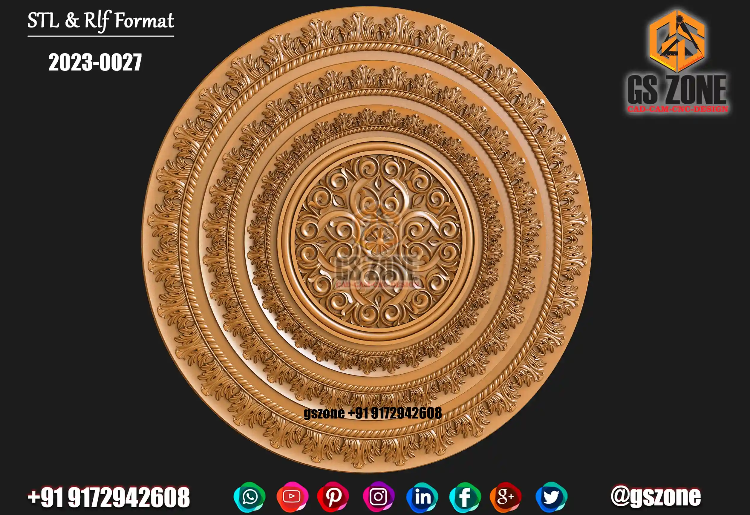 ✅ GSZONE Regular Design 🔖 Product Code: 2025-036 📏 Height & Width: 12 inches 📏 Z-Depth: 7 mm 📁 File Formats: .RLF, .STL (Compatible with ArtCAM & CNC Routers)