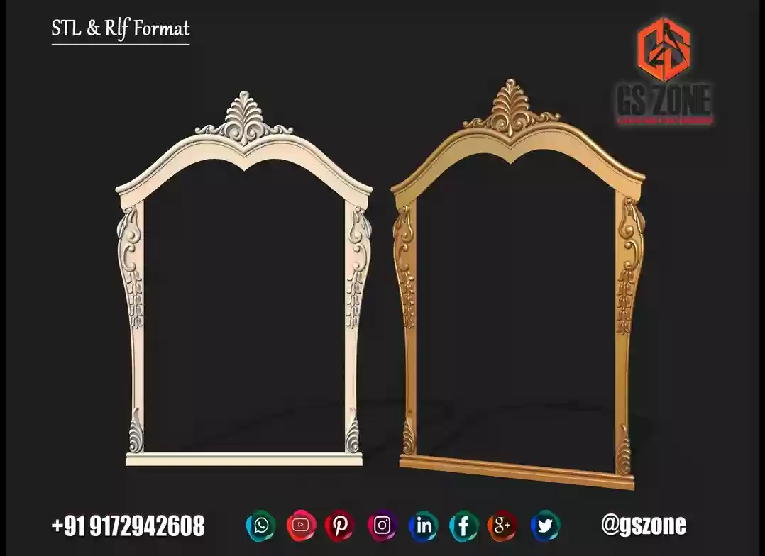 ✨ Premium Mirror Frame Design – M-26-001 Part of GS Zone Luxury Mirror Frame Series An elegant royal ornamental mirror frame design featuring beautiful floral carvings and classic scroll detailing. This design adds a luxurious and artistic look, perfect for premium interior decoration and wall mirrors. 📏 Size & Dimensions • Height: 71 Inches • Width: 23 Inches • Z-Depth: 10 mm