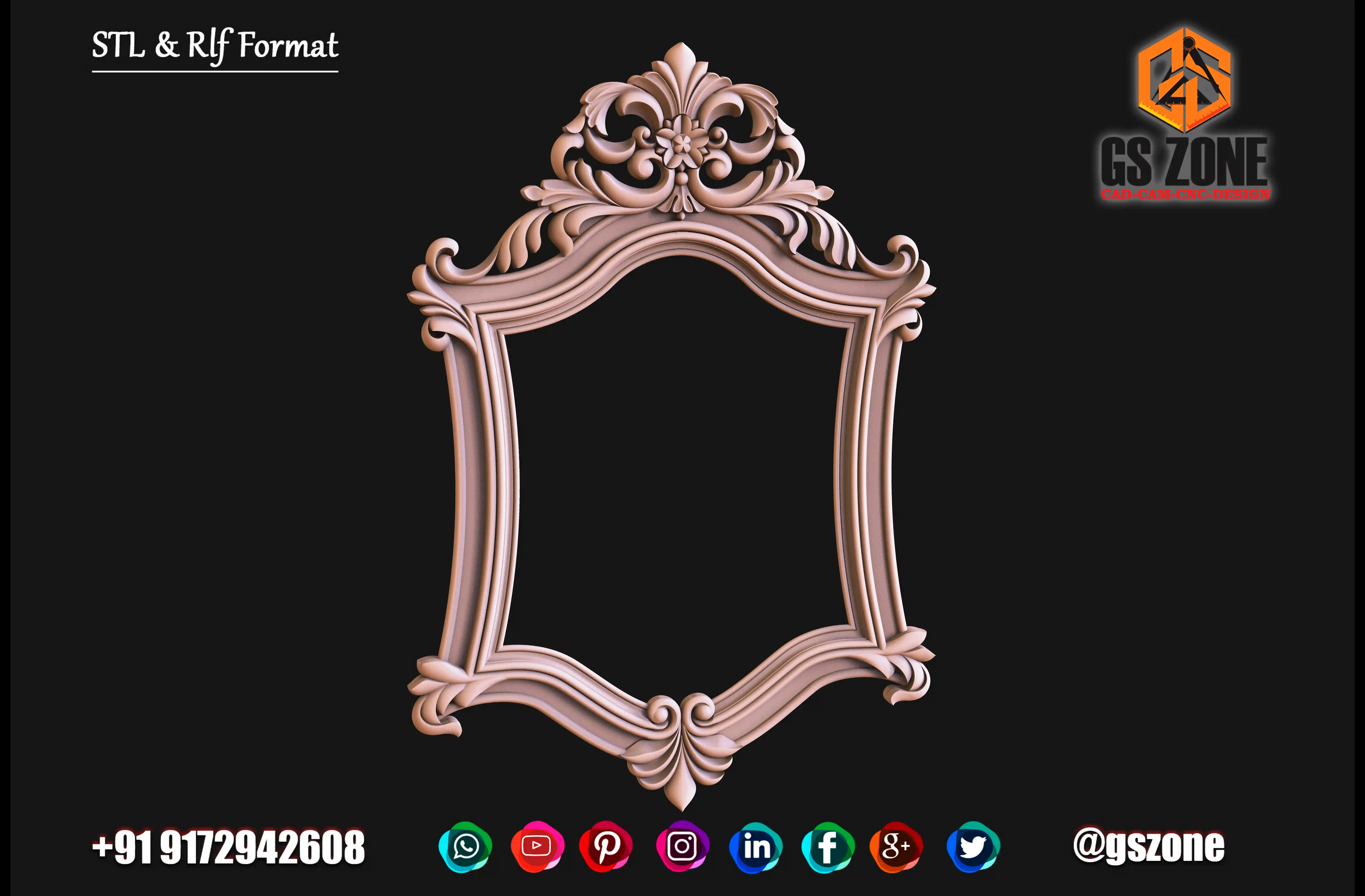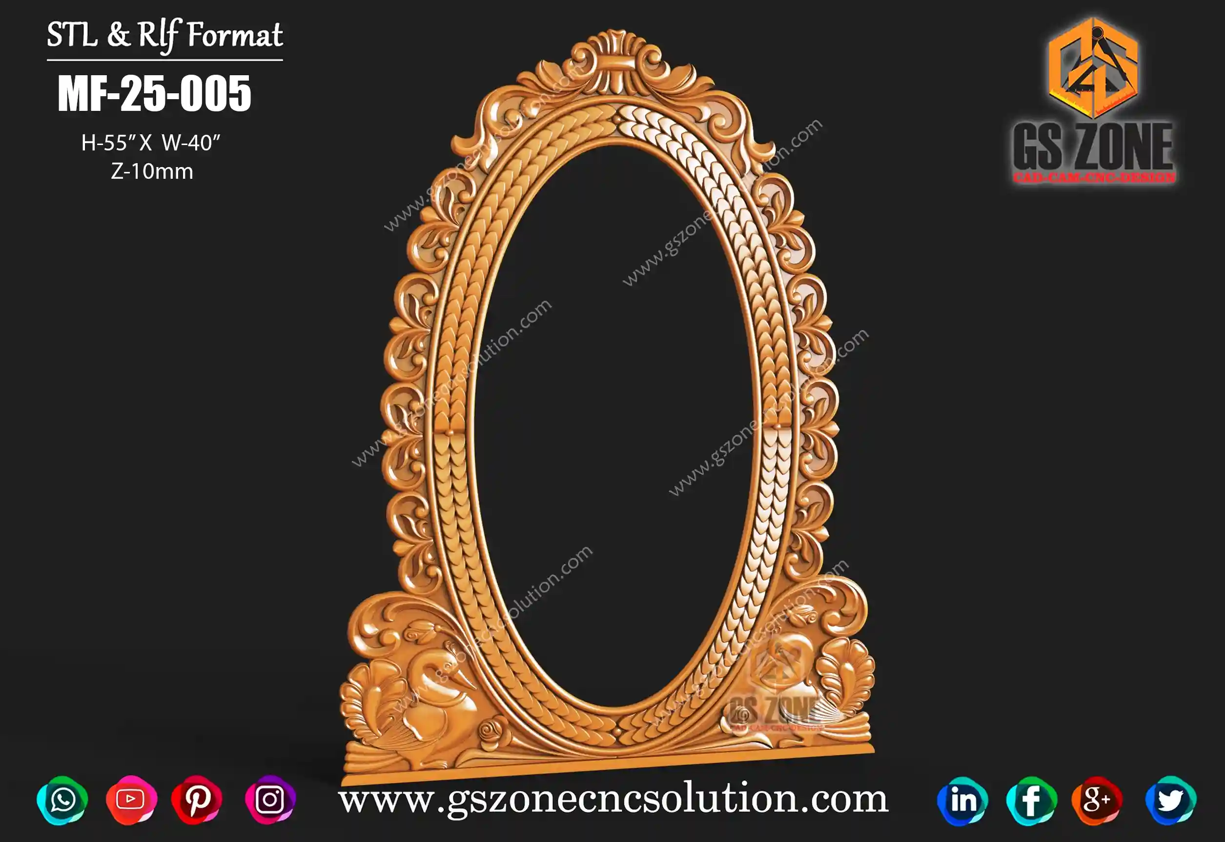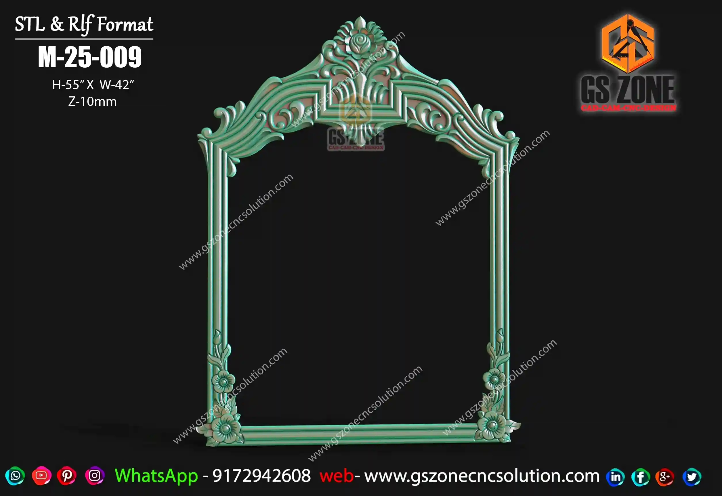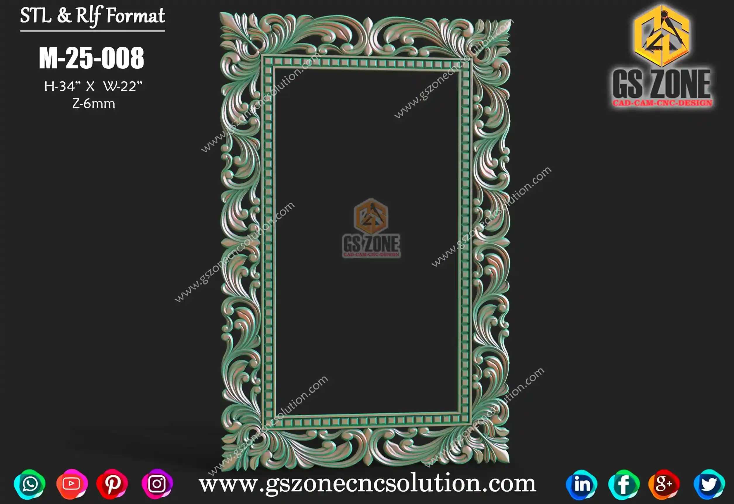 Gszone Model- 3D Mirror Frame Code-M-22-04 Format -.rlf &.stl use - CNC Router Thikness - 12 mm