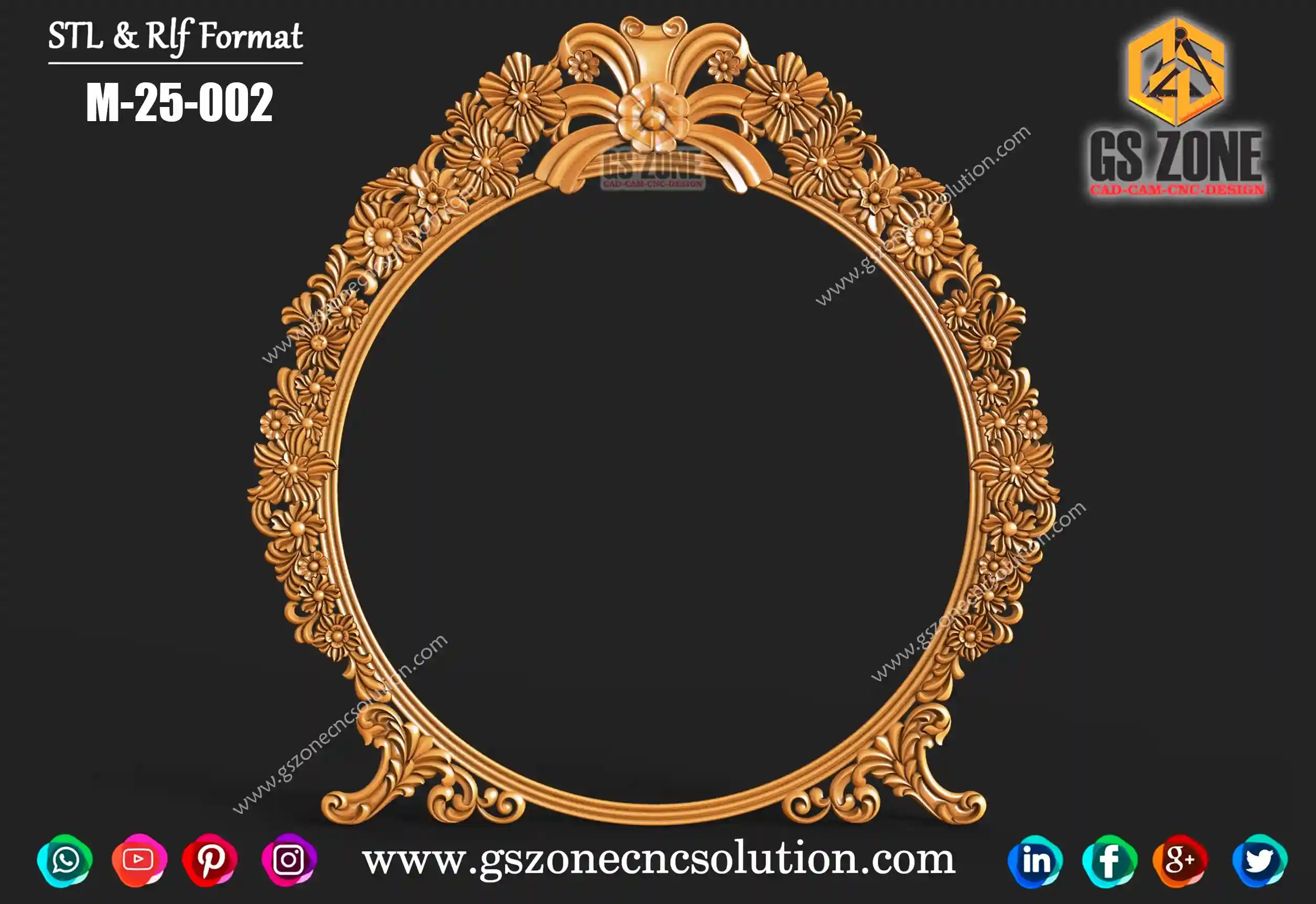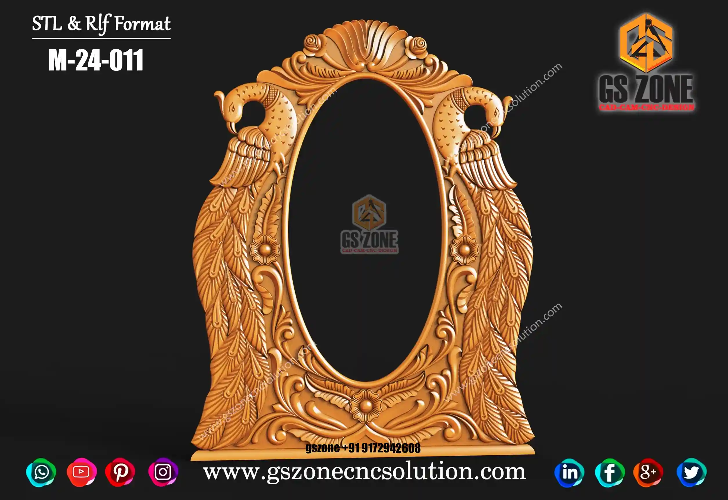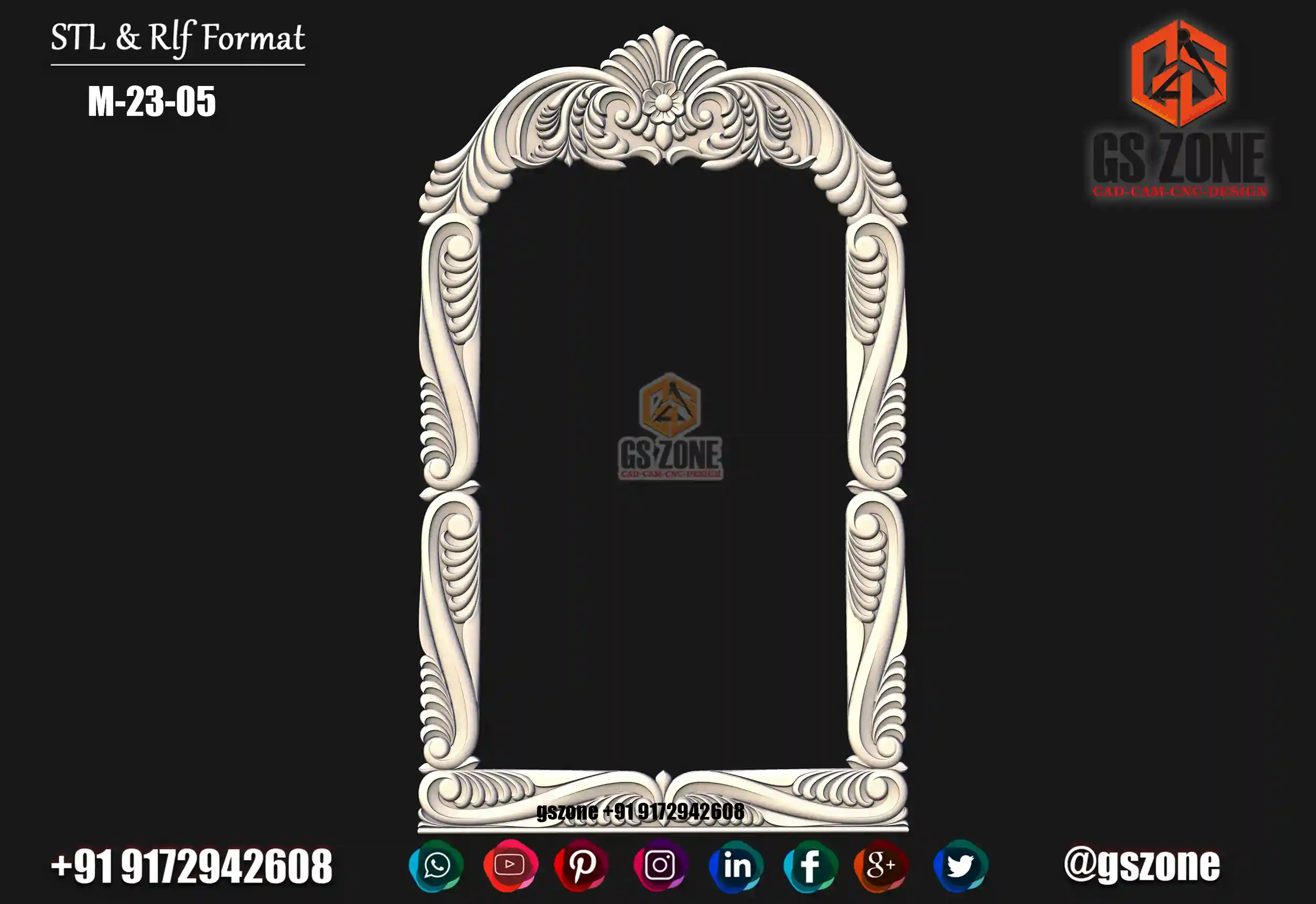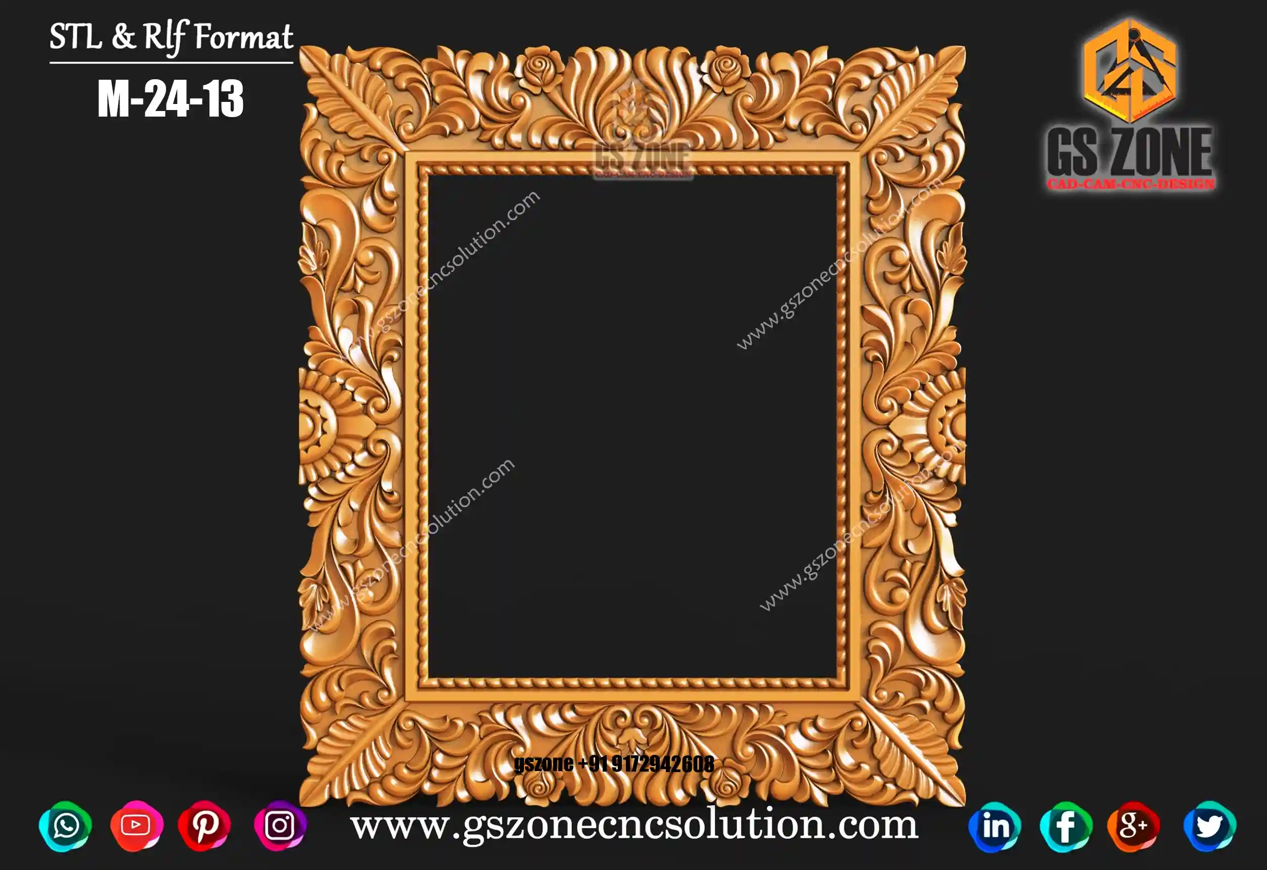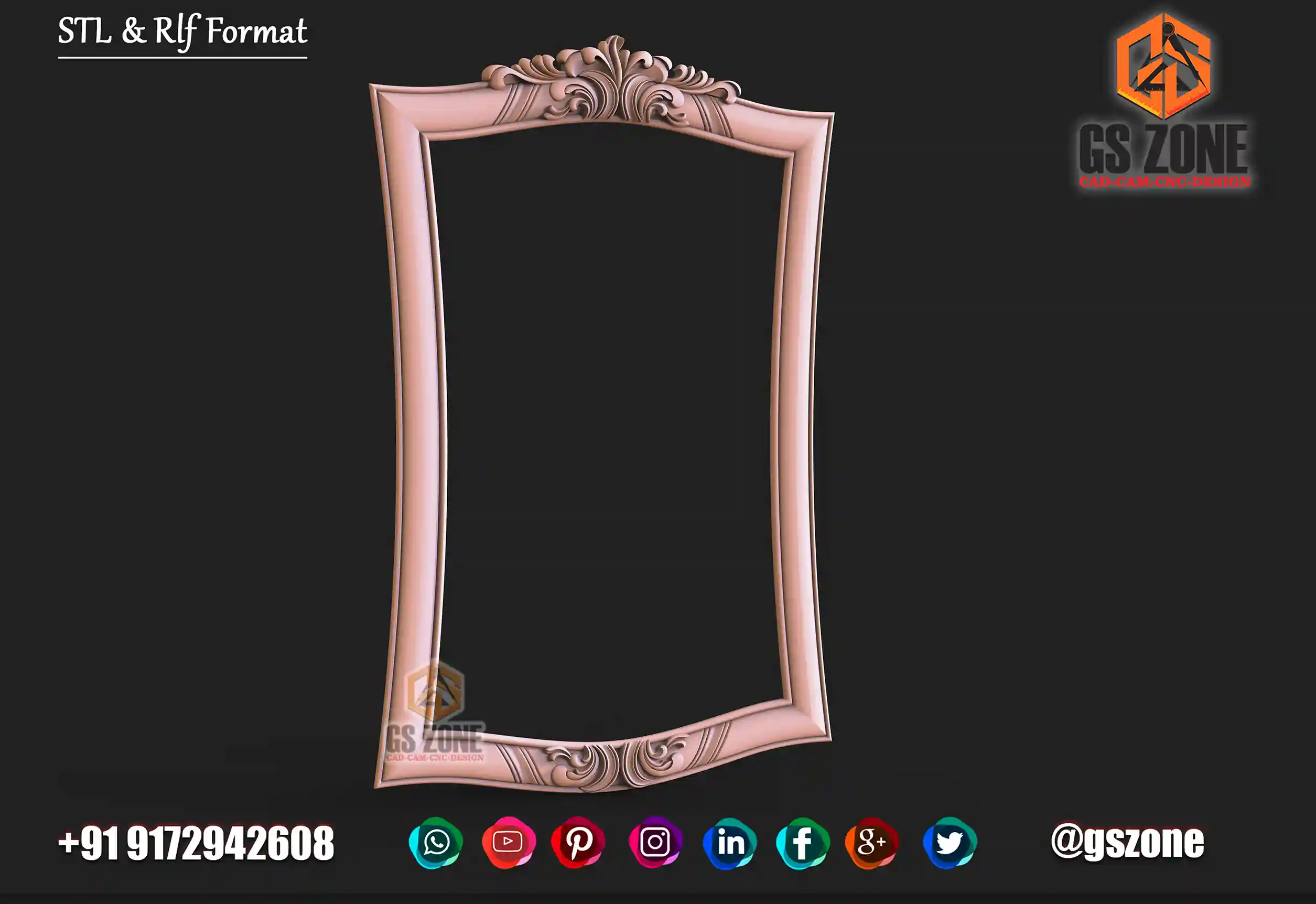 Gszone Model- 3D Mirror Frame Code-M-22-04 Format -.rlf &.stl use - CNC Router Thikness - 12 mm