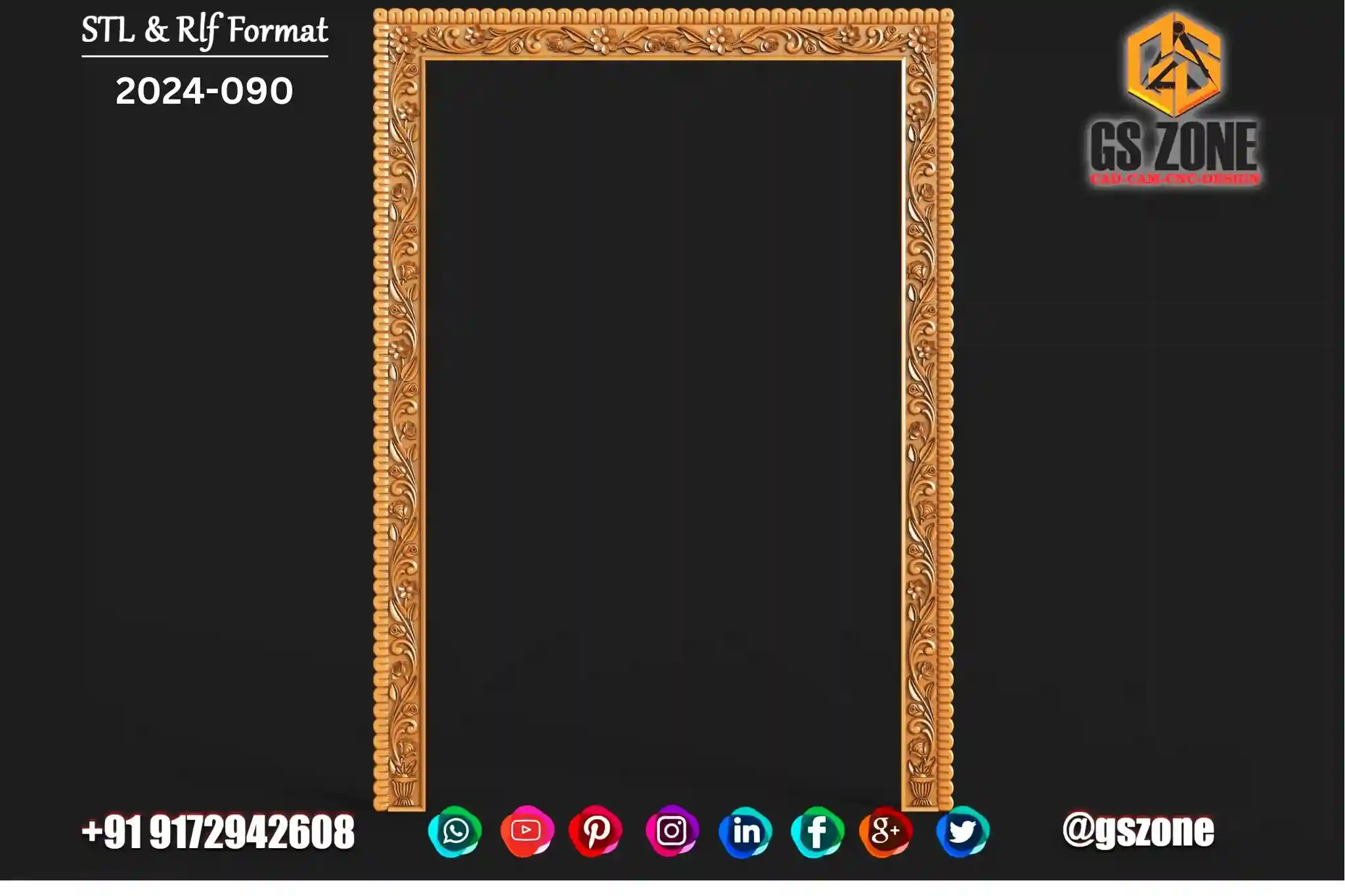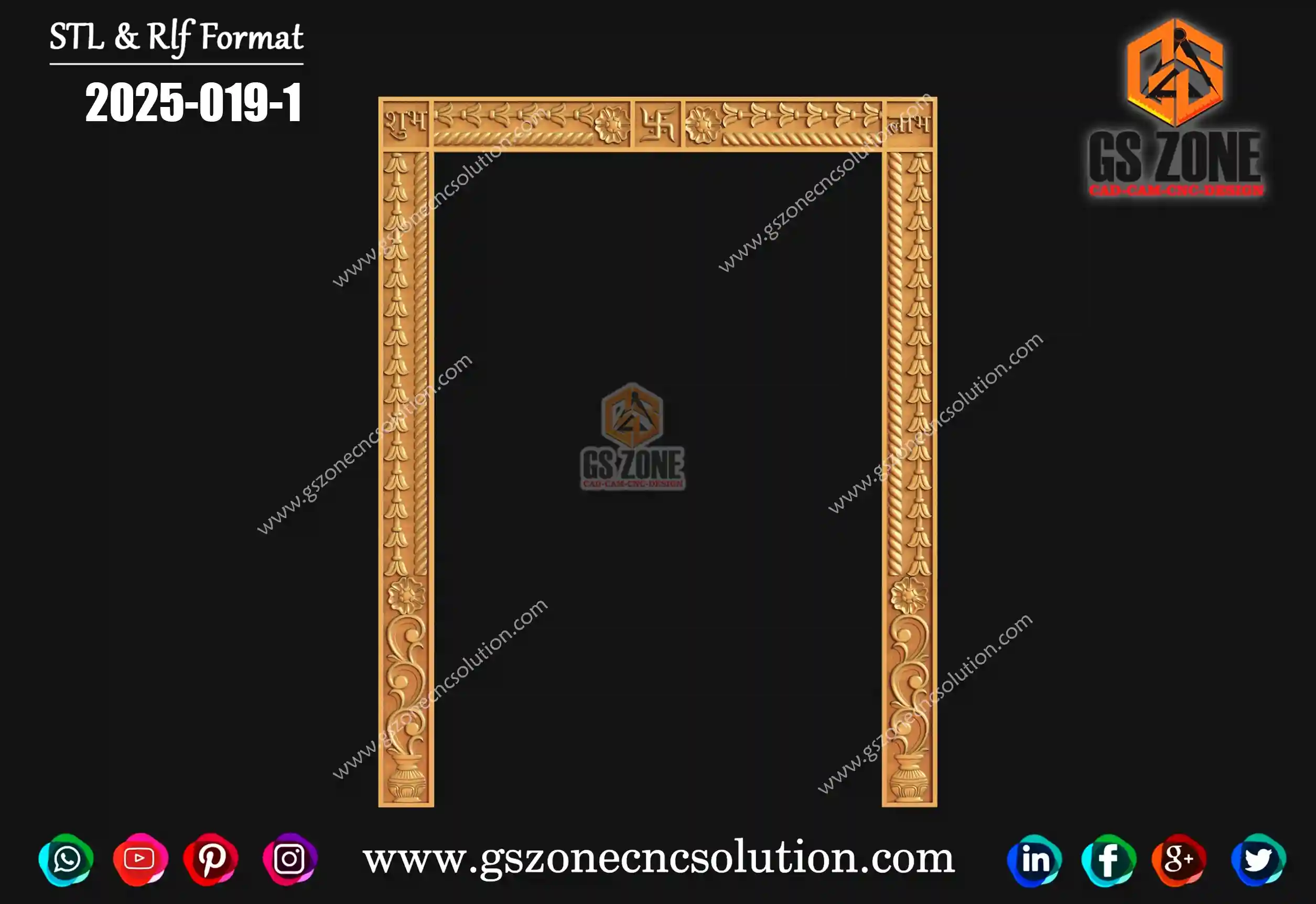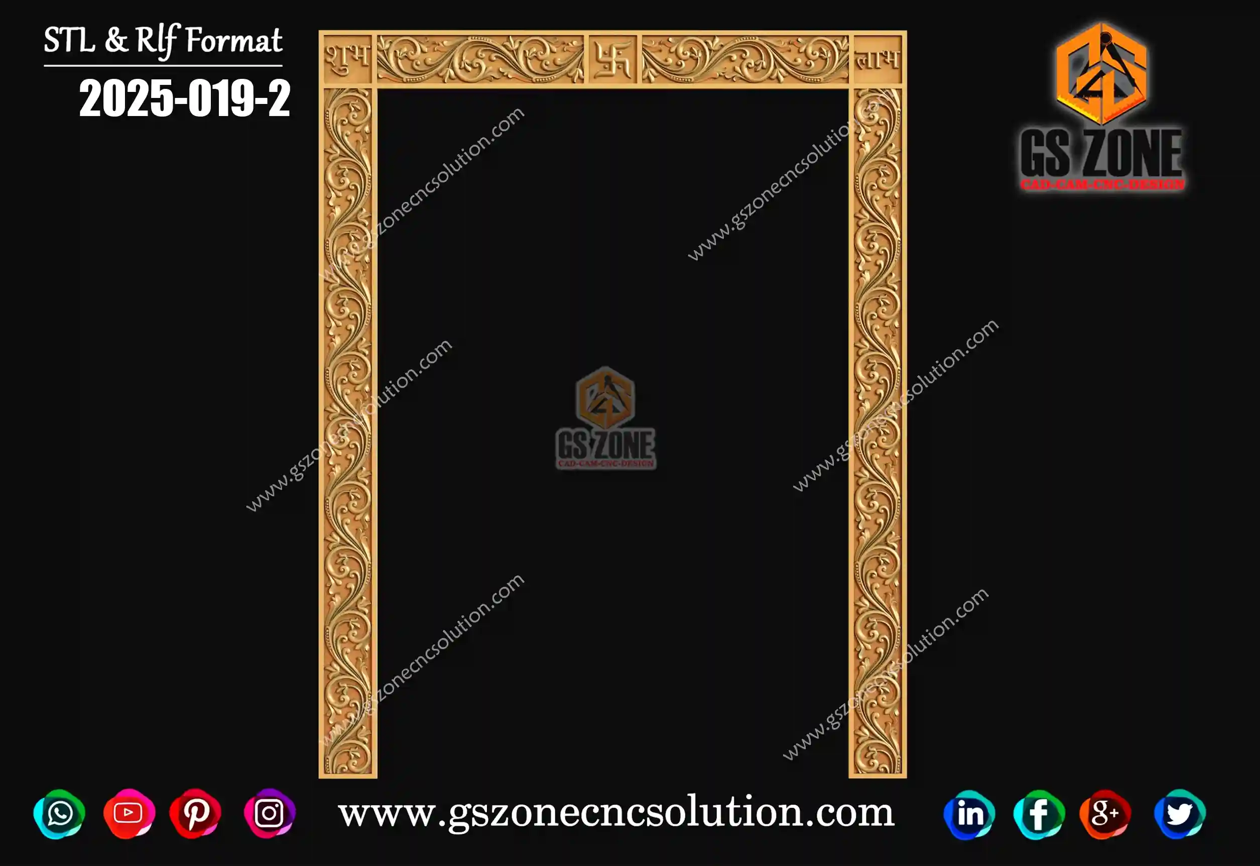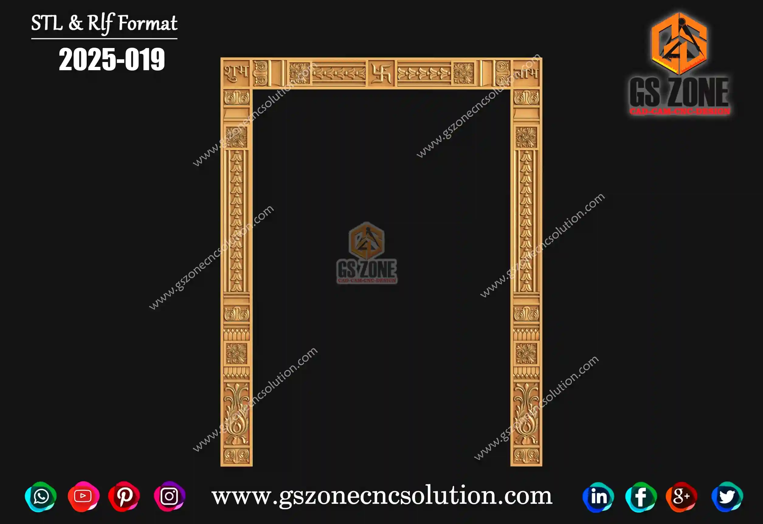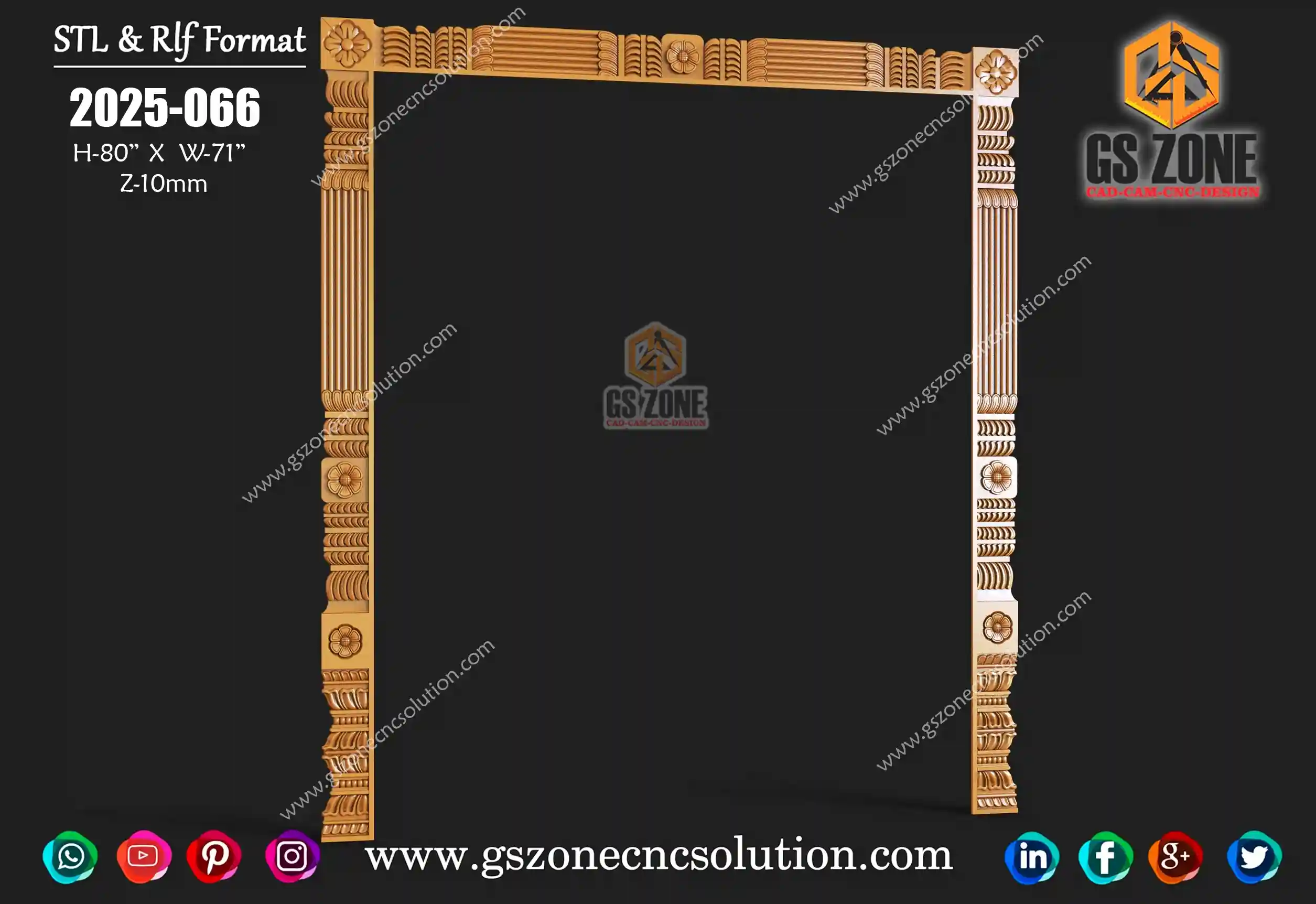 2025-069 | 3D Traditional Door Frame Design – GSZone Exclusive 📏 Design Size: • Height – 80" • Width – 71" 🔍 Z-Depth: 10 mm 📁 File Formats: .RLF & .STL (ArtCAM / CNC Ready)