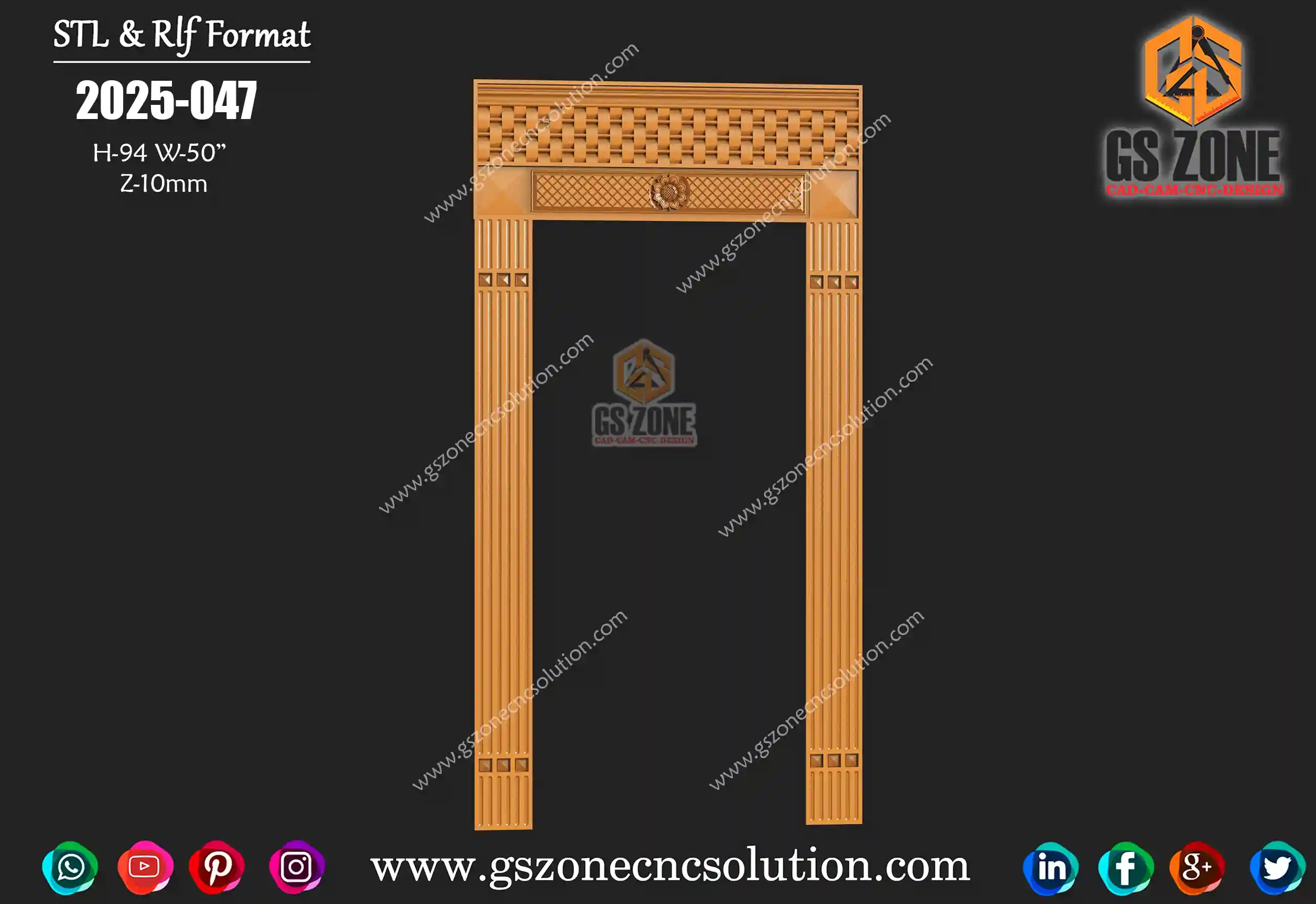 🔖 Product Code: DF-25-001 📏 Height: 94 inches 📏 Width: 50 inches 📏 Z-Depth: 10 mm 📁 File Formats: .RLF, .STL (Compatible with ArtCAM & CNC Routers)