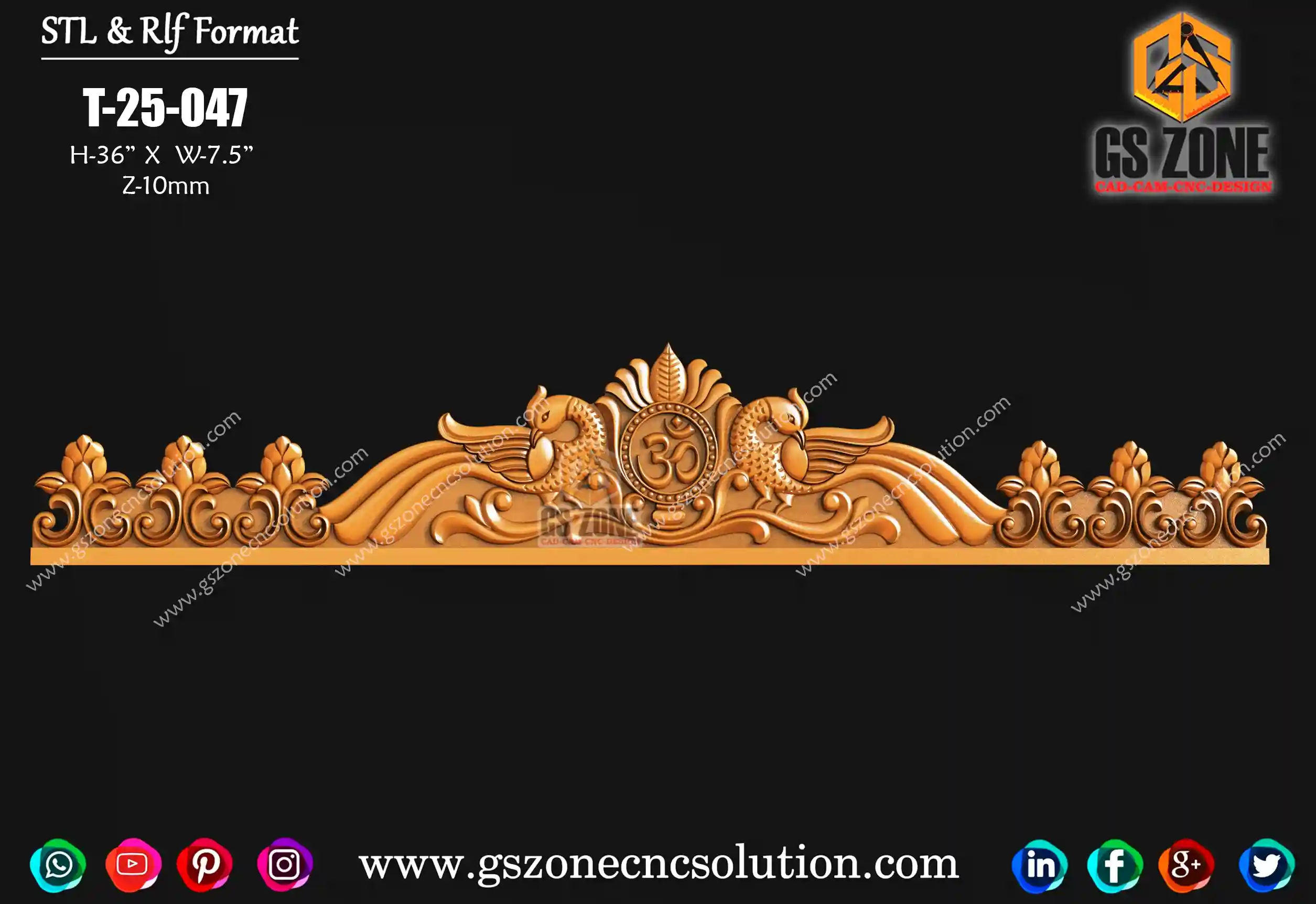 🕉️ T-25-047 | 3D Temple Top Panel 📐 Specifications Design Size: Height – 36" | Width – 7.5" Z-Depth: 10 mm File Formats: STL & RLF (CNC / ArtCAM Ready)