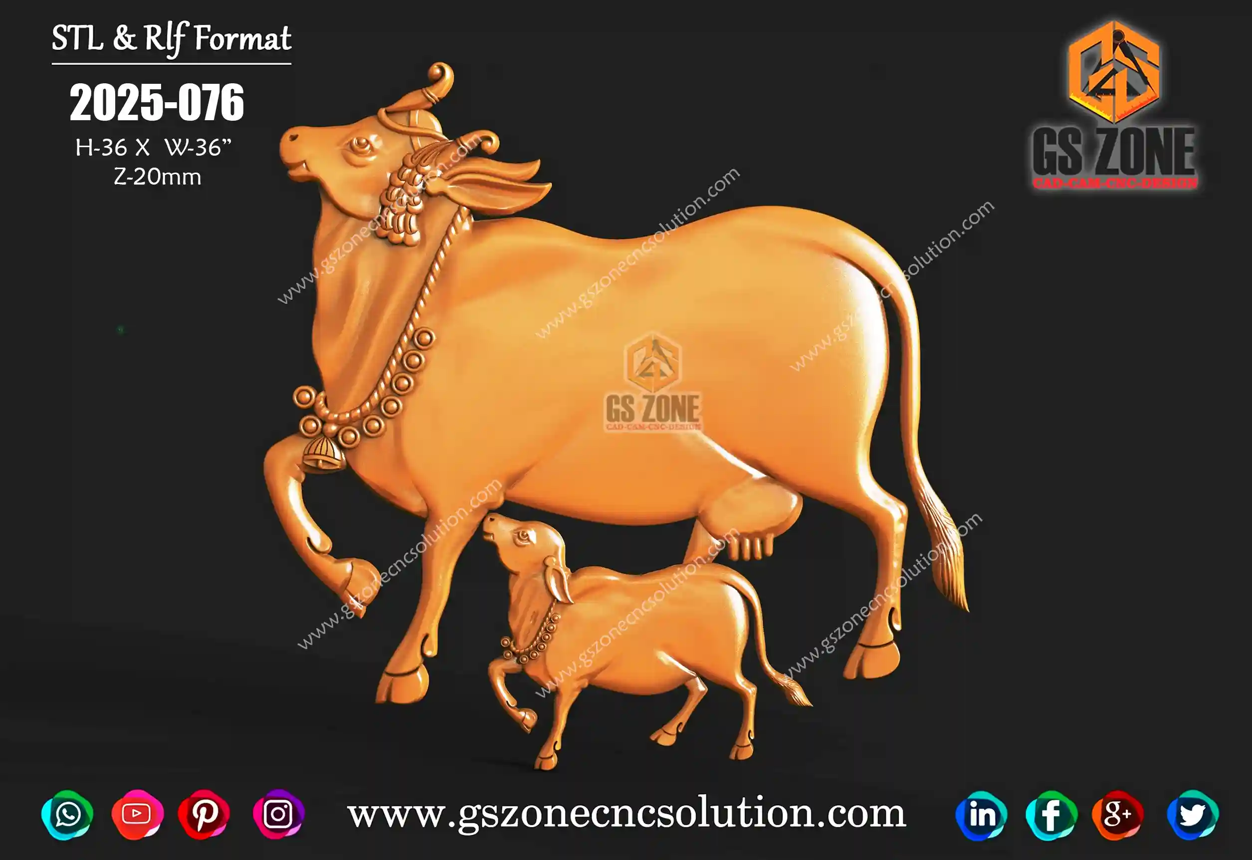 🔶 2025-076 | Cow & Calf 3D Relief – GSZone Exclusive 📏 Specifications: Size: H-36” × W-36” Z-Depth: 20mm Formats: STL & RLF