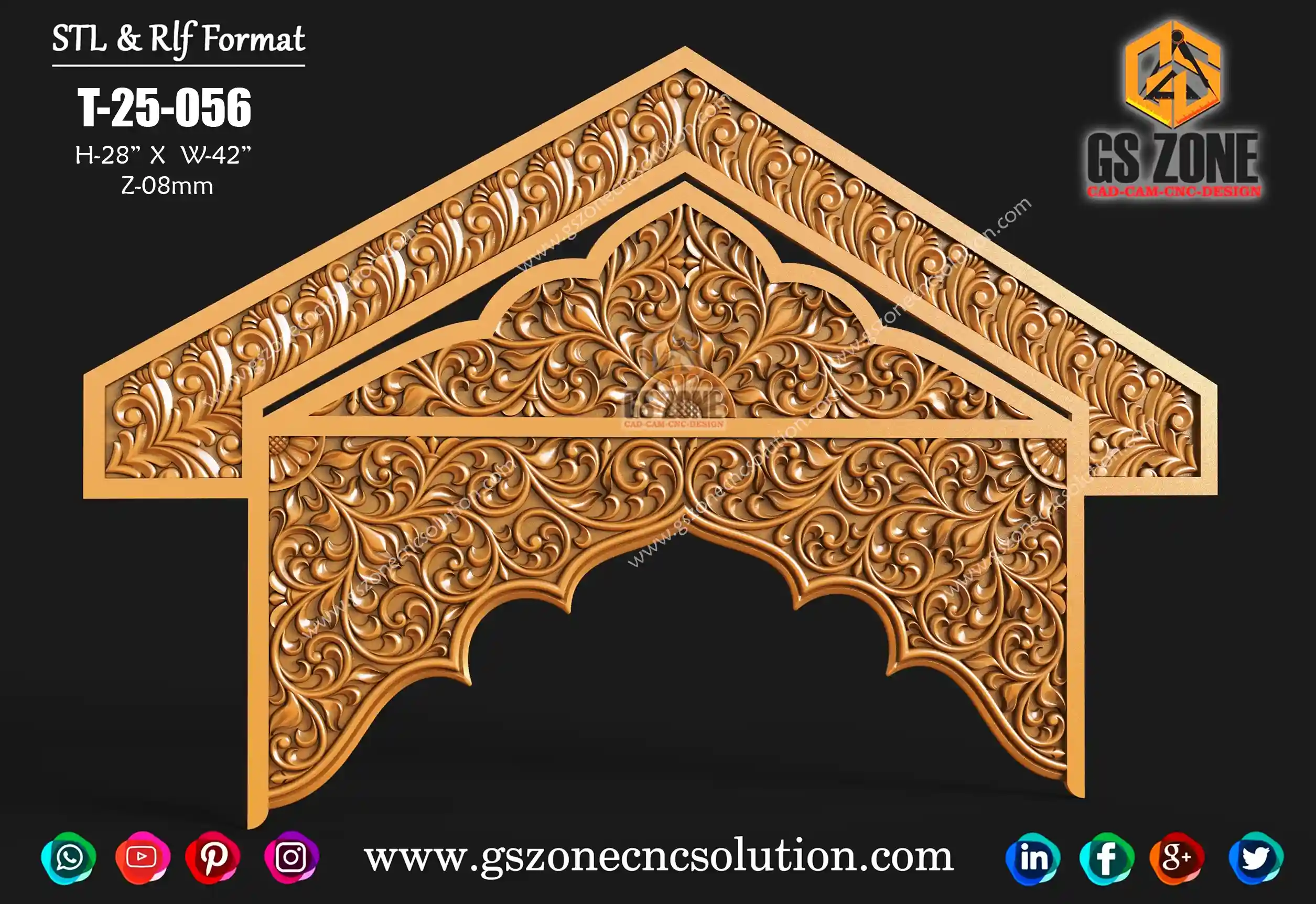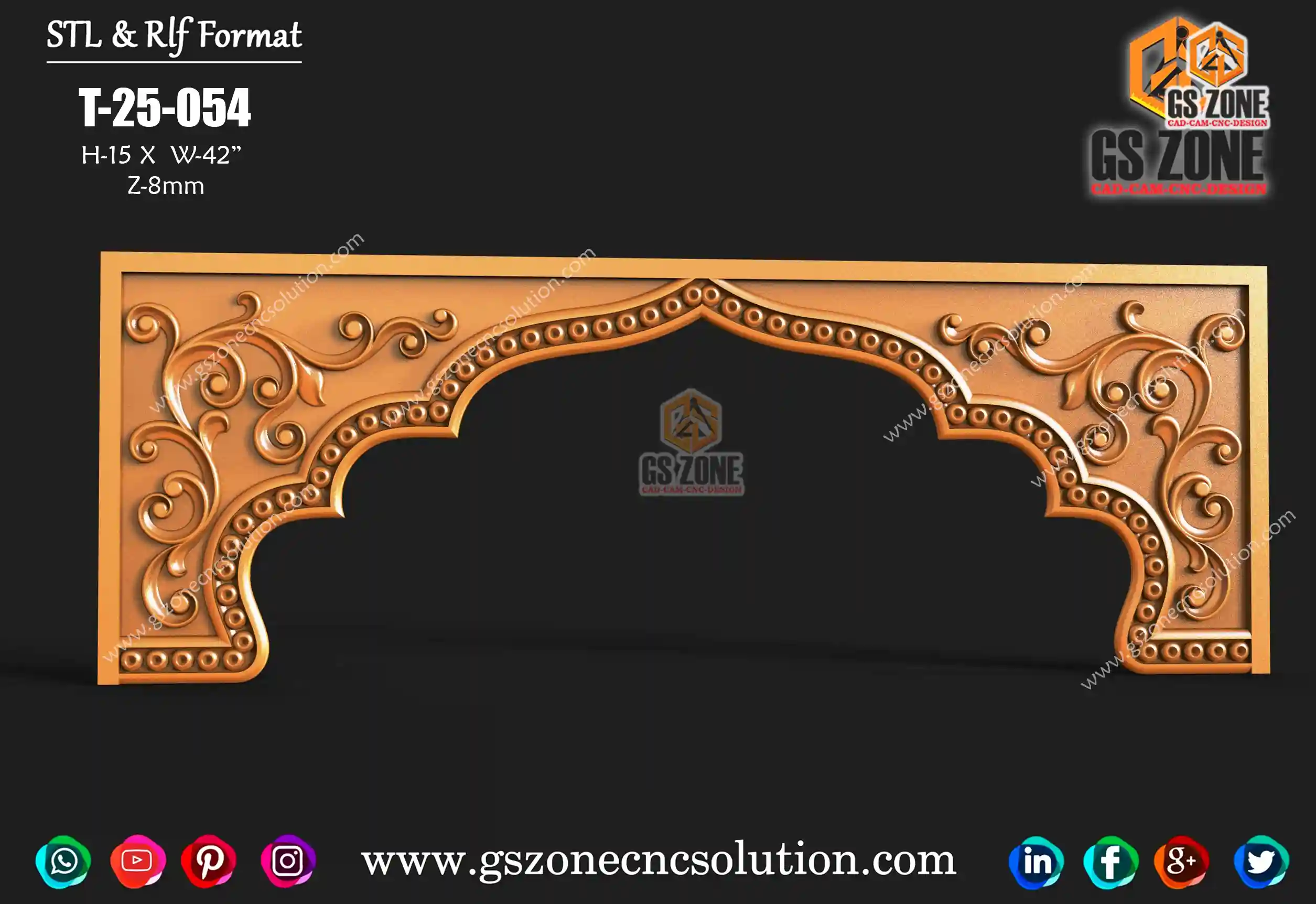 📐 Product Specifications ✔️ Design Code: T-25-054 ✔️ File Formats: STL & RLF ✔️ Size: Height – 15” | Width – 42” ✔️ Z-Depth: 8mm ✔️ Category: Arch / Temple / Decorative
