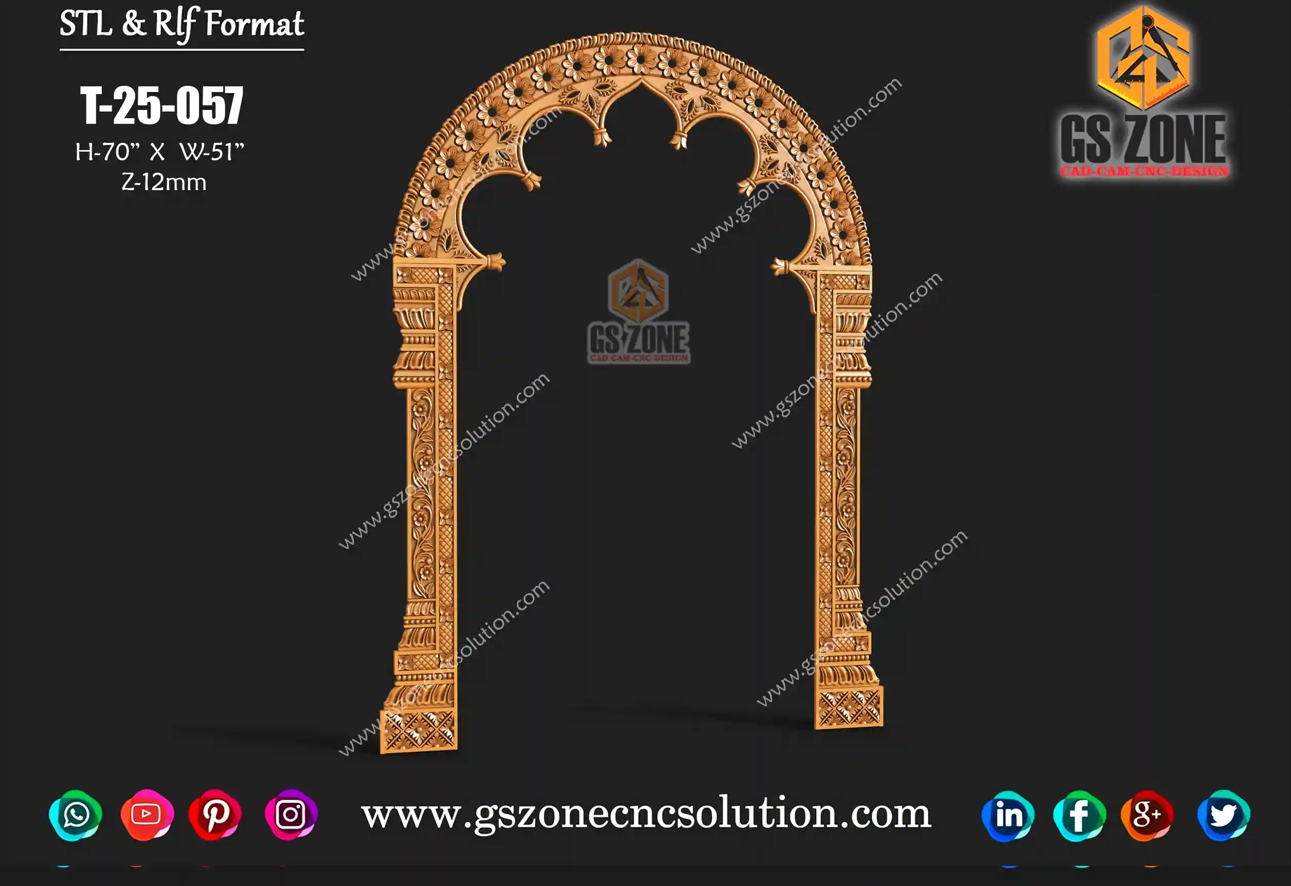 🏛 GSZone Temple Arch Frame Panel Code: T-25-058 📐 Specifications ✅ Size: H-58” × W-48” ✅ Z-Depth: 10mm ✅ File Formats: STL & RLF