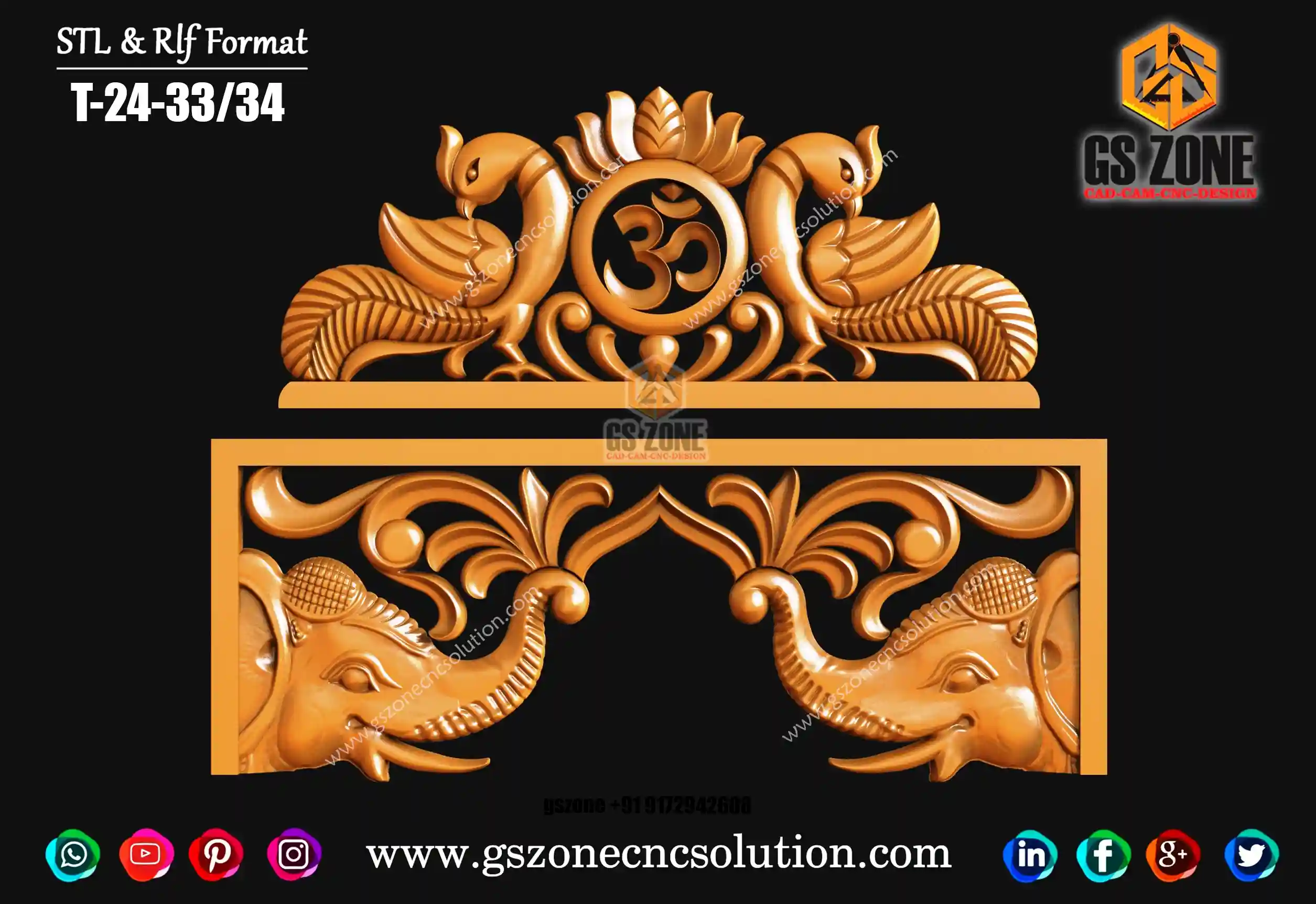 🪔 Kirti Mukh CNC Design | STL & RLF Format ✨ GSZone CNC Solution proudly presents the Kirti Mukh – a traditional and highly detailed 3D design, crafted exclusively for CNC router projects. 📐 Product Specifications Design Code: KIRTI-25-001 Format: STL & RLF Size: Height – 8” | Width – 10” Z-Depth: 12mm Category: Traditional / Decorative Design