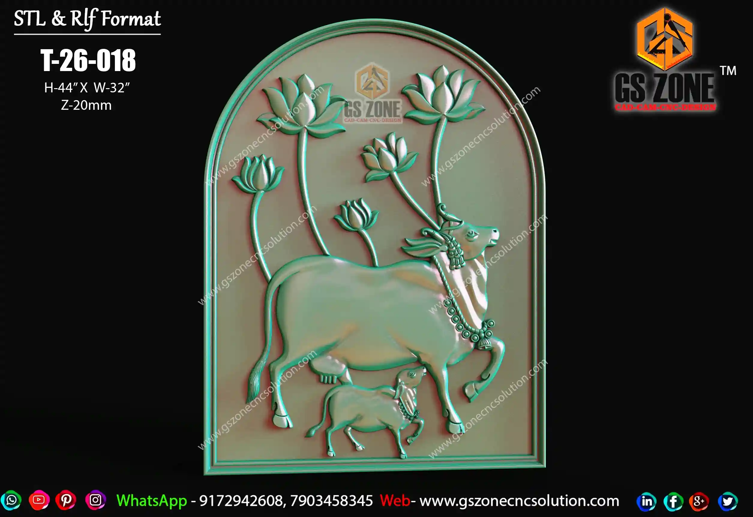 🌿 T-26-018 | Premium Cow & Lotus Temple Panel Design 📐 Size & Dimensions: • Height: 44 Inches • Width: 32 Inches • Z-Depth: 20mm 💾 File Formats Available: • STL • RLF ✨ Design Highlights: • Beautiful Cow & Calf (Gaumata) spiritual concept 🐄 • Elegant Lotus floral background 🌸 • Perfect arched temple frame design • Smooth detailing with high-quality 3D depth • Ideal for religious & premium interior projects 🏡 Applications: • Temple panels (Mandir CNC work) • Wall décor panels • Wooden & MDF carving projects • Interior spiritual artworks • CNC router carving projects