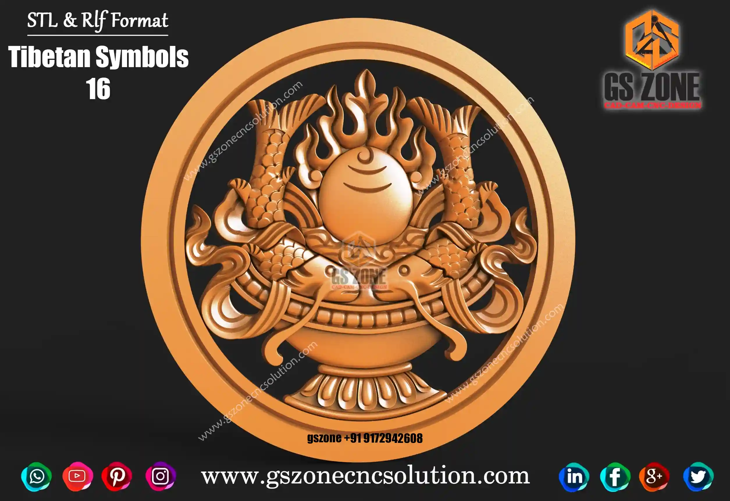 🆔 Product Code: Tibetan Symbols 16 📐 Size: 17 x 17 inches 📏 Z Depth: 15 mm 📁 File Formats: .RLF, .STL