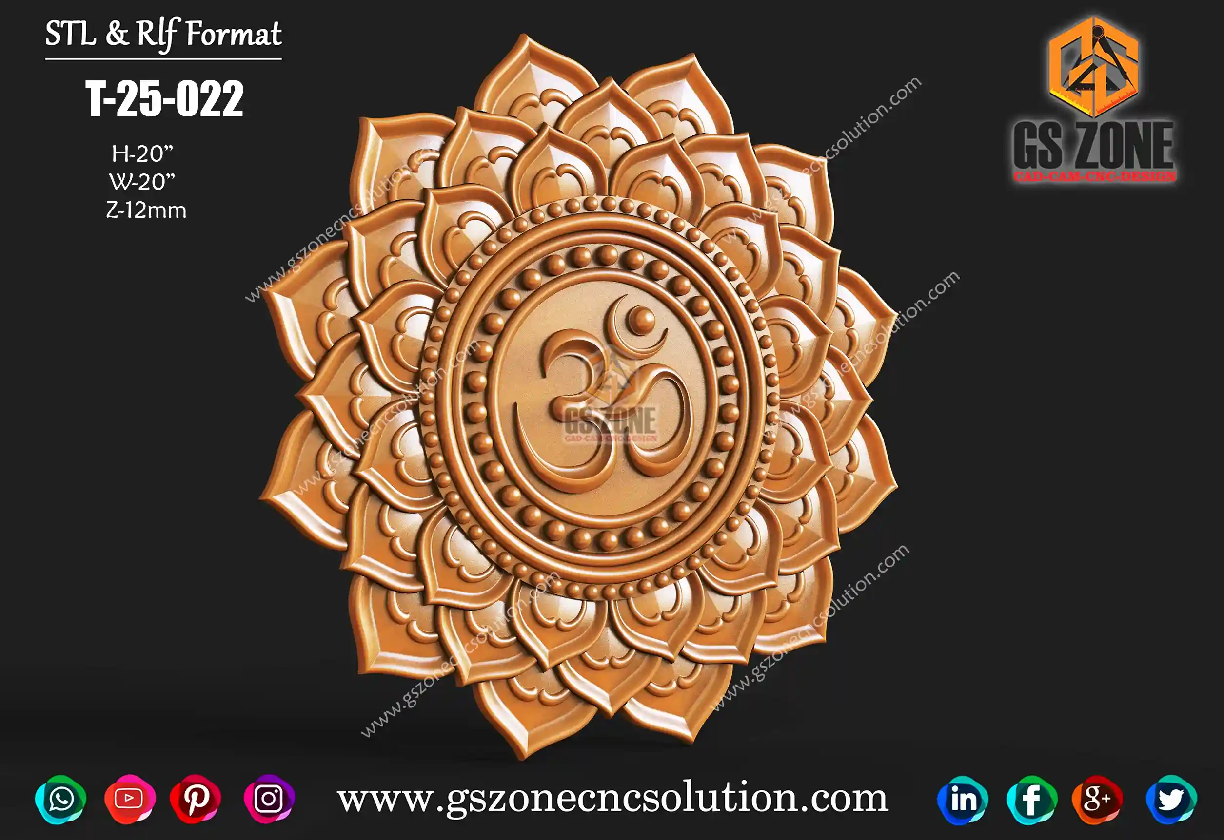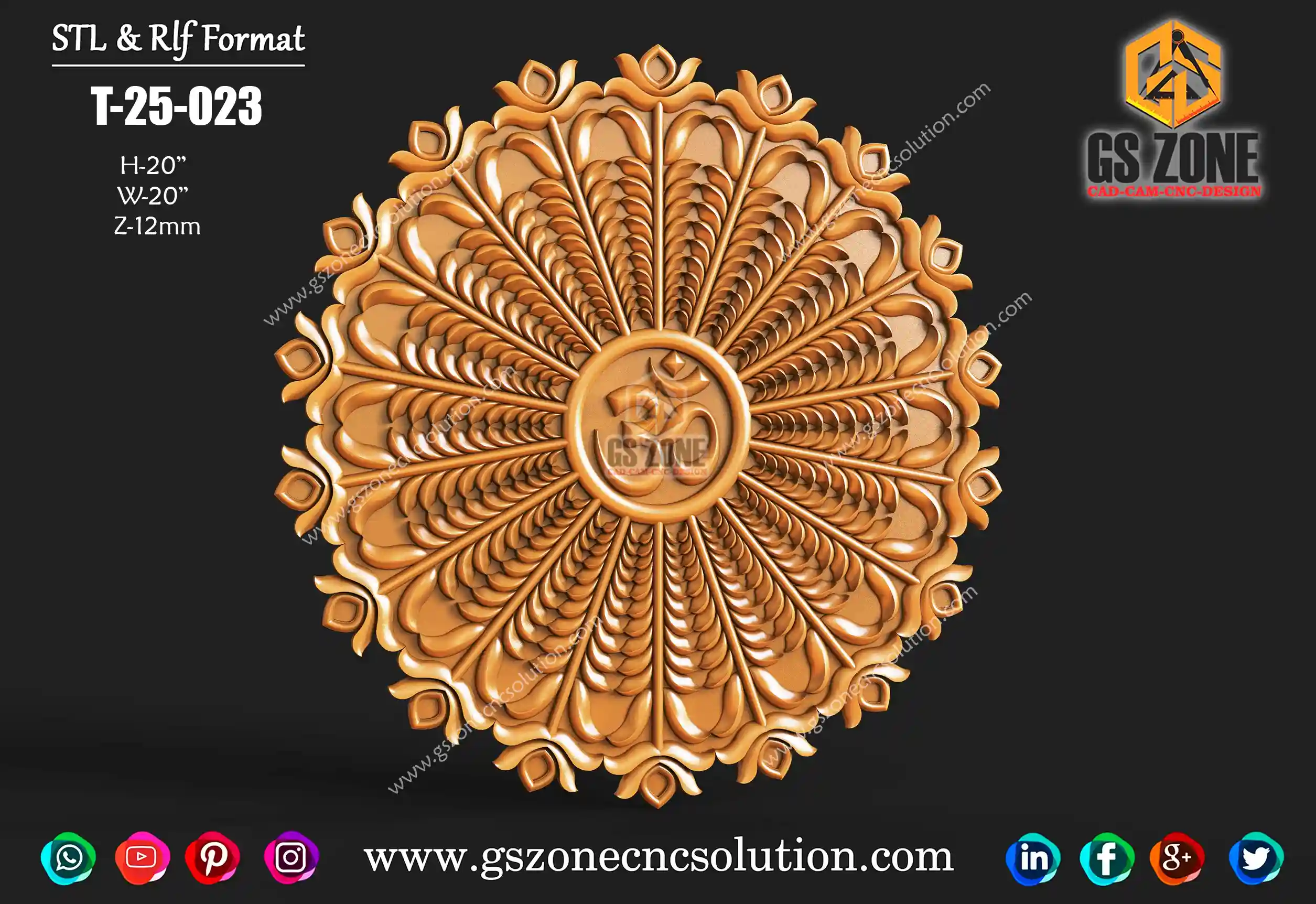 🔖 Product Code: T-25-022 📁 File Formats: .RLF, .STL (Compatible with ArtCAM & CNC Routers) 🛠️ Application: 2.5D / 3D carving with CNC Router machines ✅ Design Specifications: Diameter (Dia): 20 inches Z-Depth: 12 mm Material Compatibility: Wood, MDF, WPC, Stone