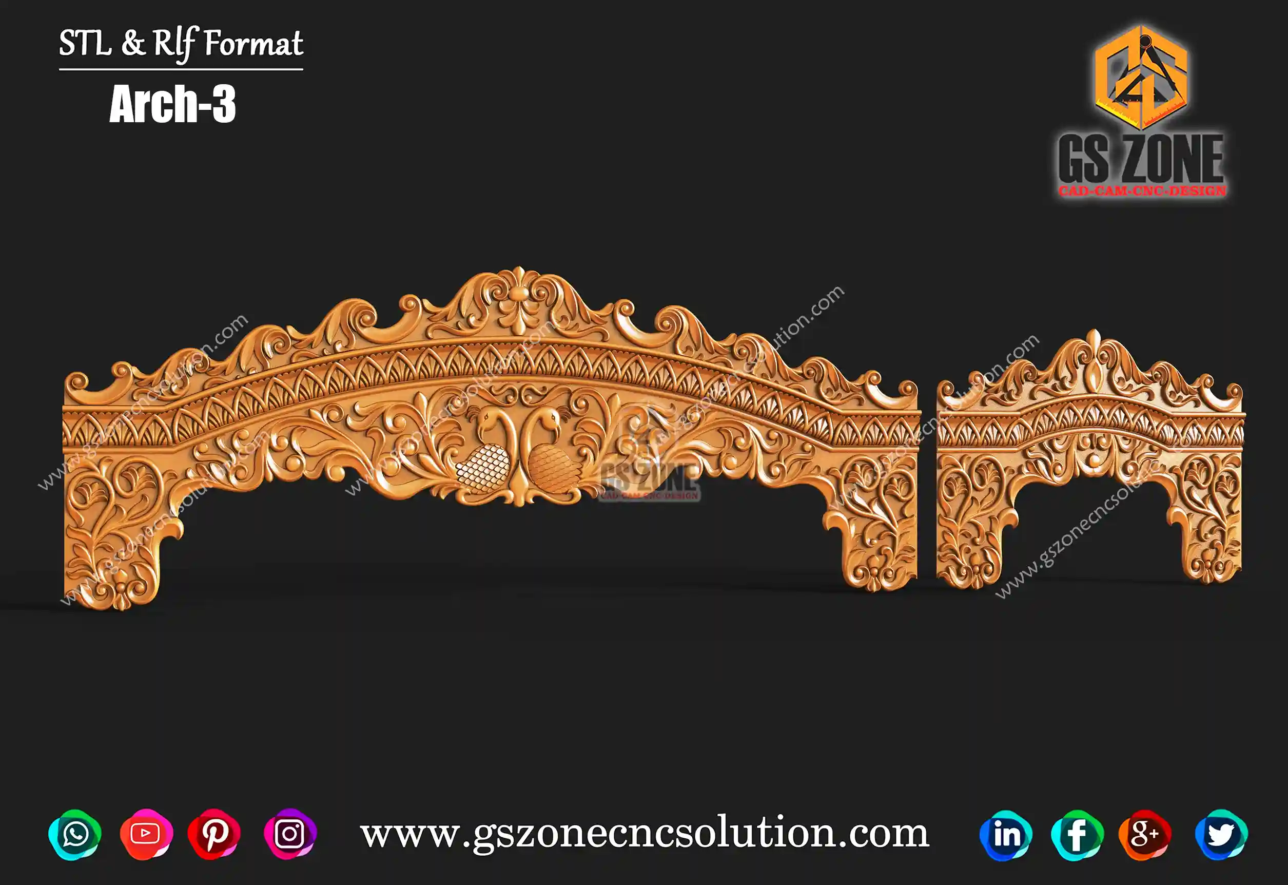 ✅ GSZONE 3D Temple Design – Arch-3 🔖 Product Code: T-25-023 📁 File Formats: .RLF, .STL (Compatible with ArtCAM & CNC Routers) 🛠️ Application: 3D carving with CNC Router machines