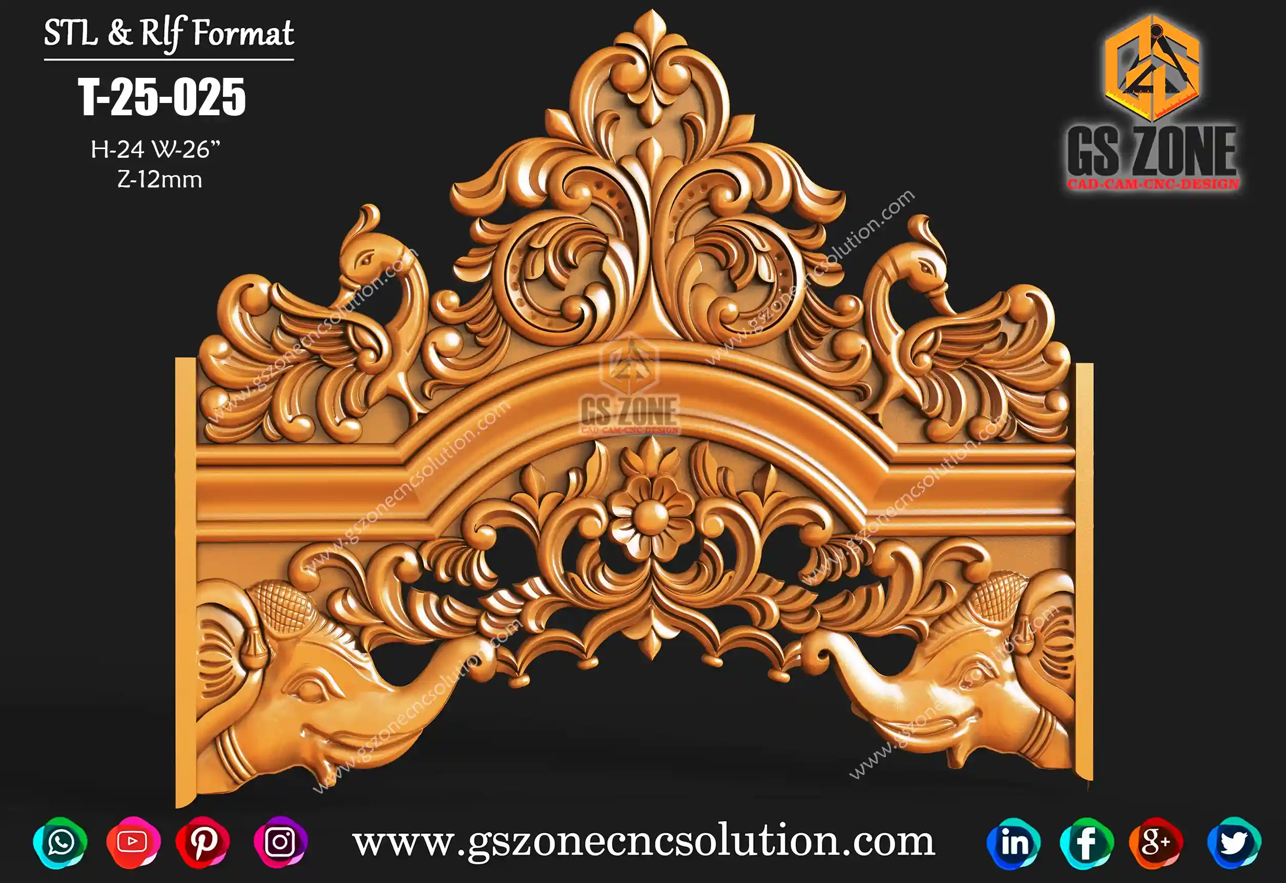 🔖 Product Code: T-25-025 📏 Height: 24 inches 📏 Width: 26 inches 📏 Z-Depth: 12 mm 📁 File Formats: .RLF, .STL (Compatible with ArtCAM & CNC Routers) 🛠️ Application: 3D temple carving with CNC Router machines