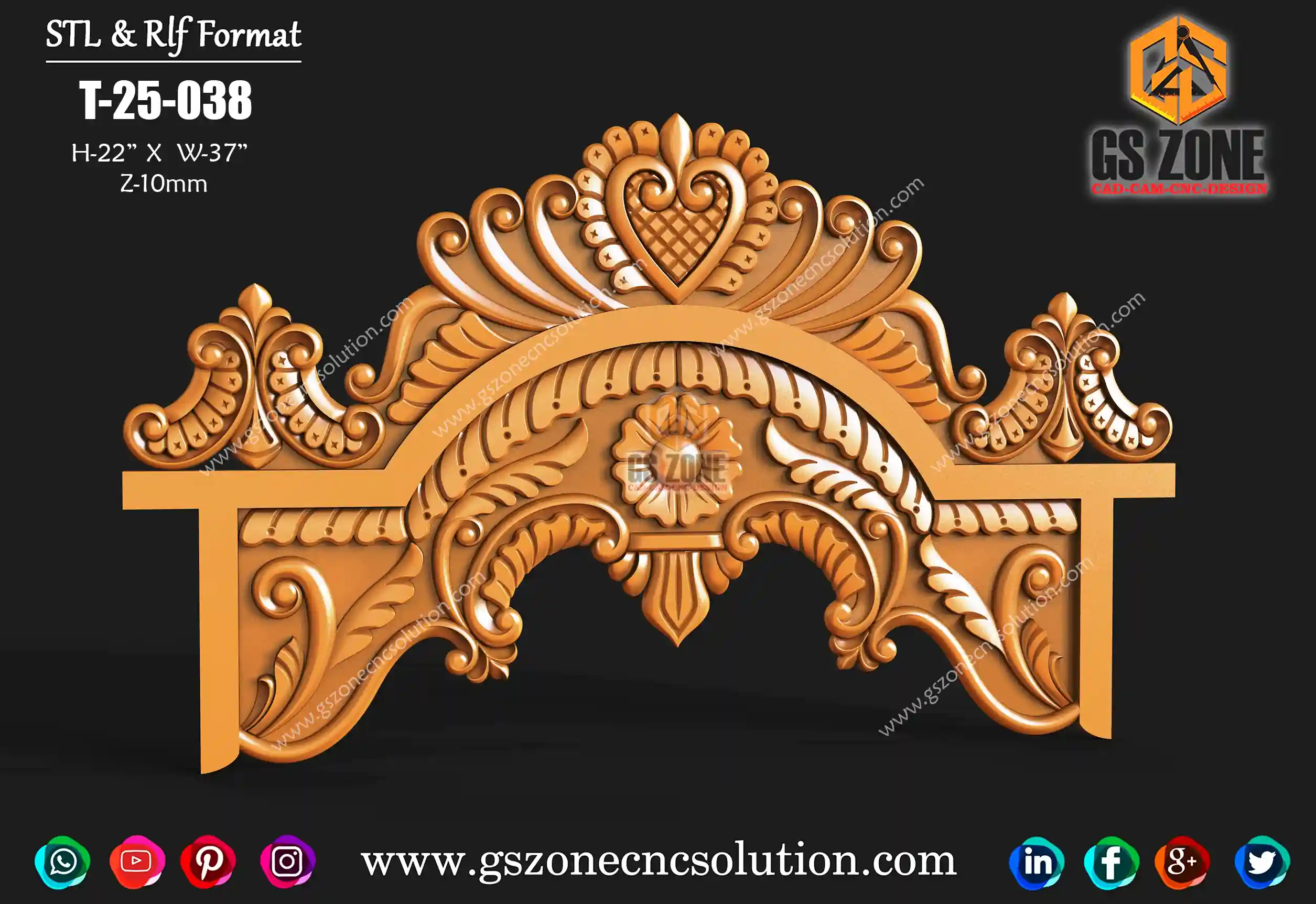 ✅ GSZONE 3D Temple Arch Design 🔖 Product Code: T-25-041 📏 Size: H – 20 inches | W – 36 inches 📐 Z-Depth: 10 mm 📁 File Formats: .RLF & .STL (Fully compatible with ArtCAM & CNC Router machines) 🛠️ Application: Ideal for home mandirs, temple front arches, pooja rooms, traditional door frames, and heritage-style interiors.