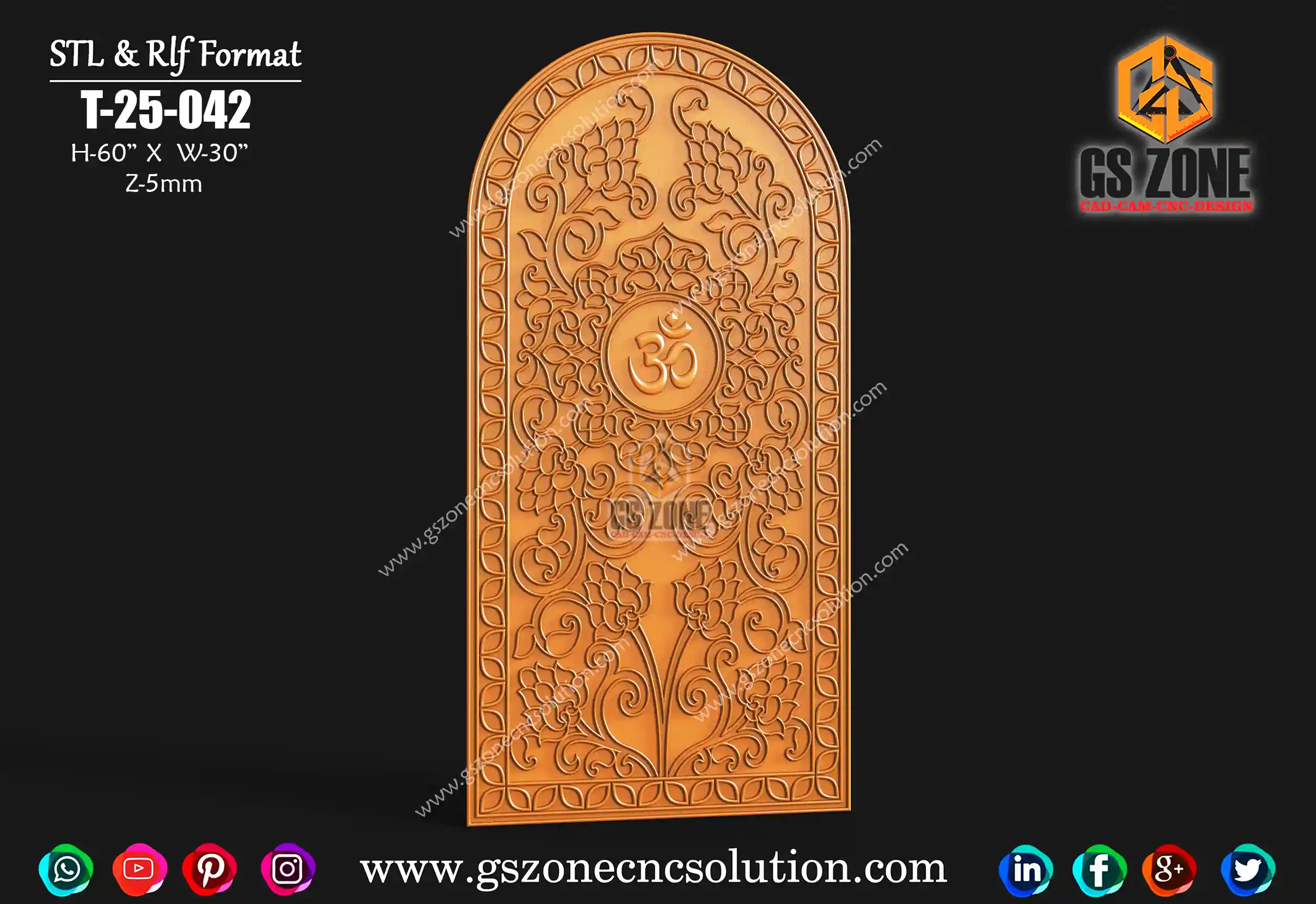 📌 Product Code: T-25-042 📐 Size: Height – 60 inch | Width – 30 inch 📏 Z-Depth: 5 mm 💾 File Format: STL & RLF (Fully Compatible with ArtCAM & CNC Router Machines)