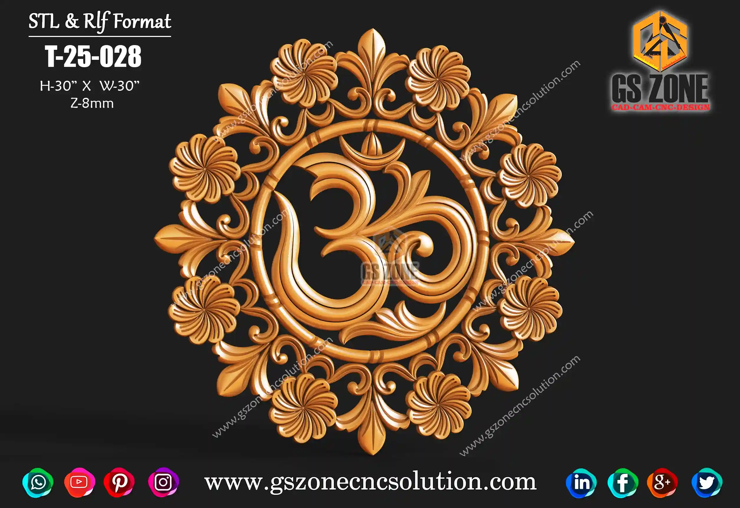GSZONE 3D Om Circular Design – Floral Harmony Series 🔖 Product Code: T-25-028 📐 Size: H – 30" × W – 30" × Z – 8mm 📁 File Formats: STL & RLF (CNC Router Ready)
