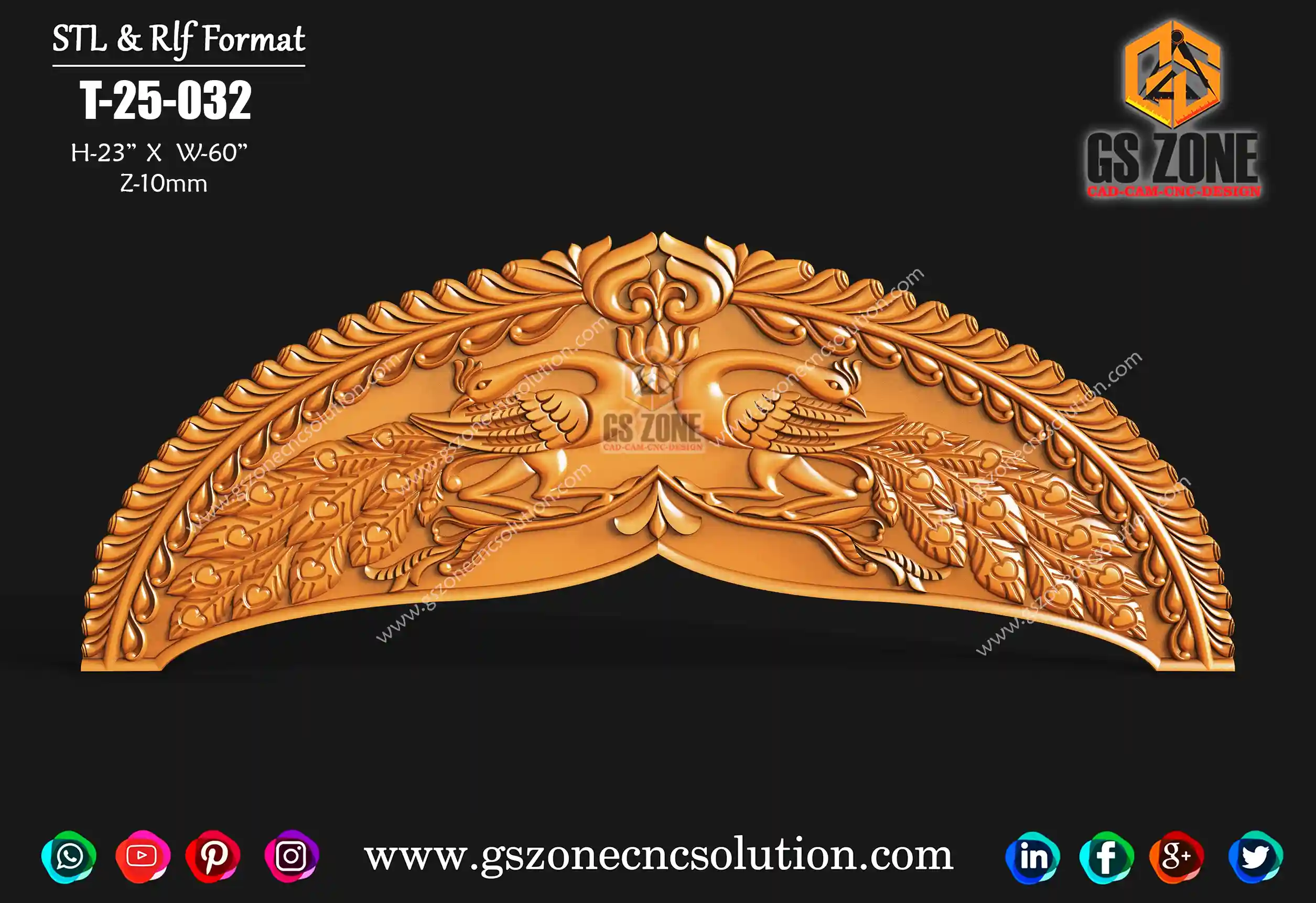 🦚 GSZONE 3D Temple Arch Design – T-25-032 Size: H-23” × W-60” Z-Depth: 10mm File Format: STL & RLF