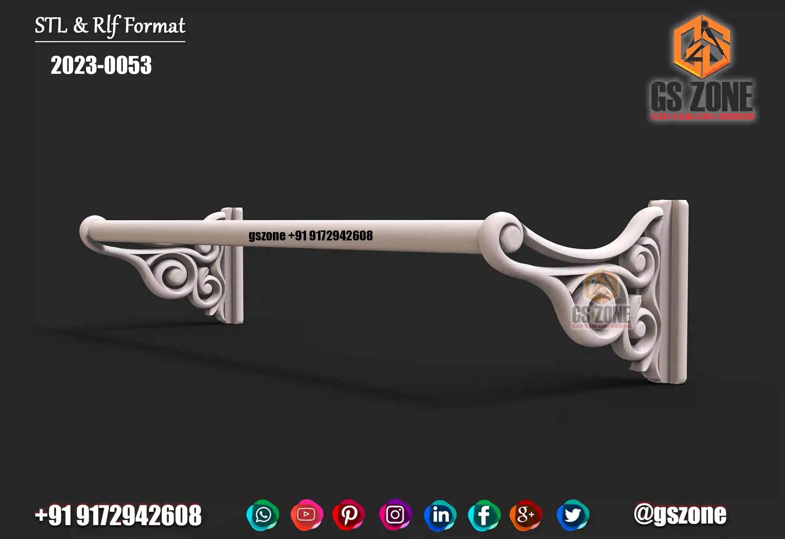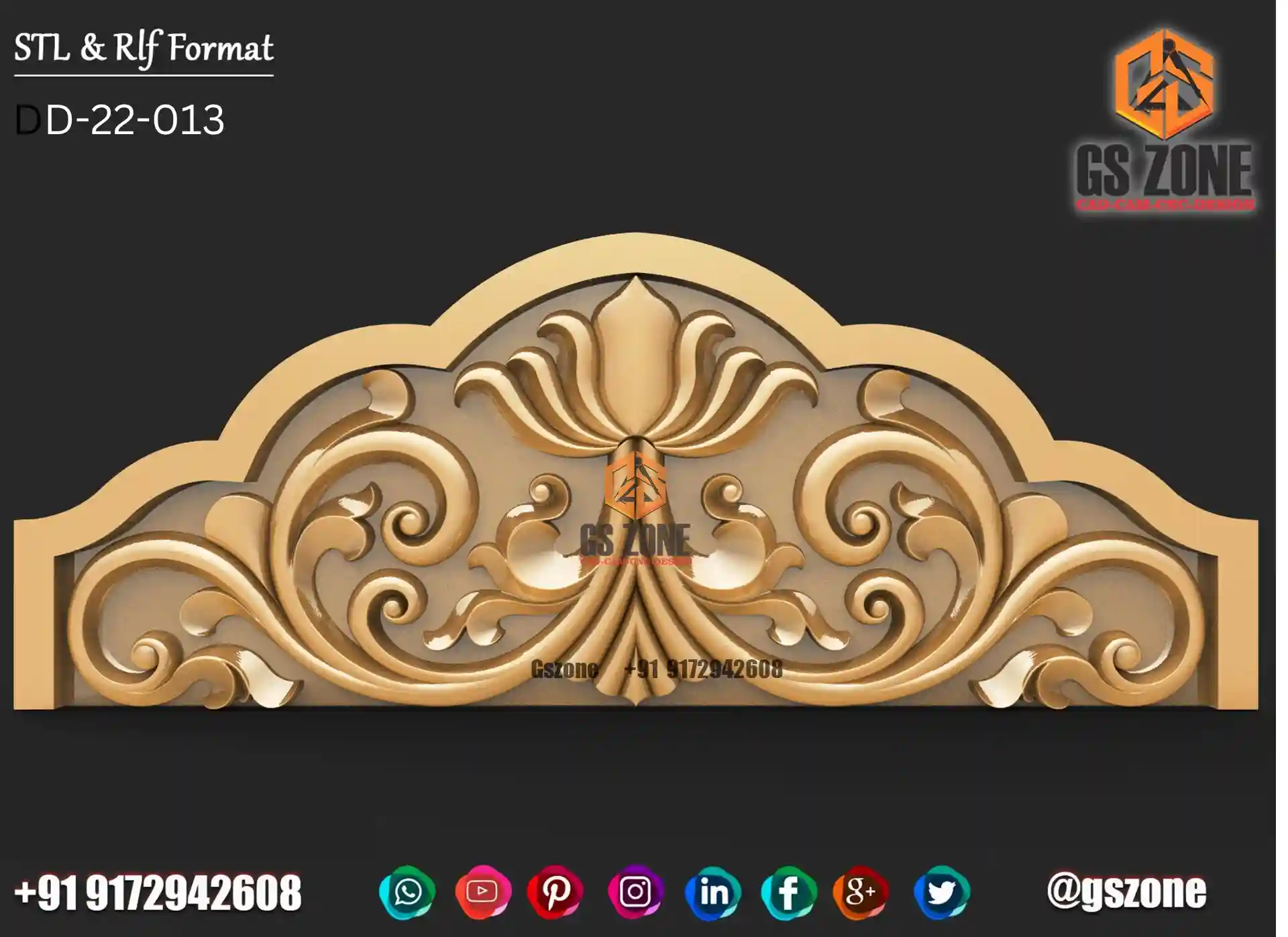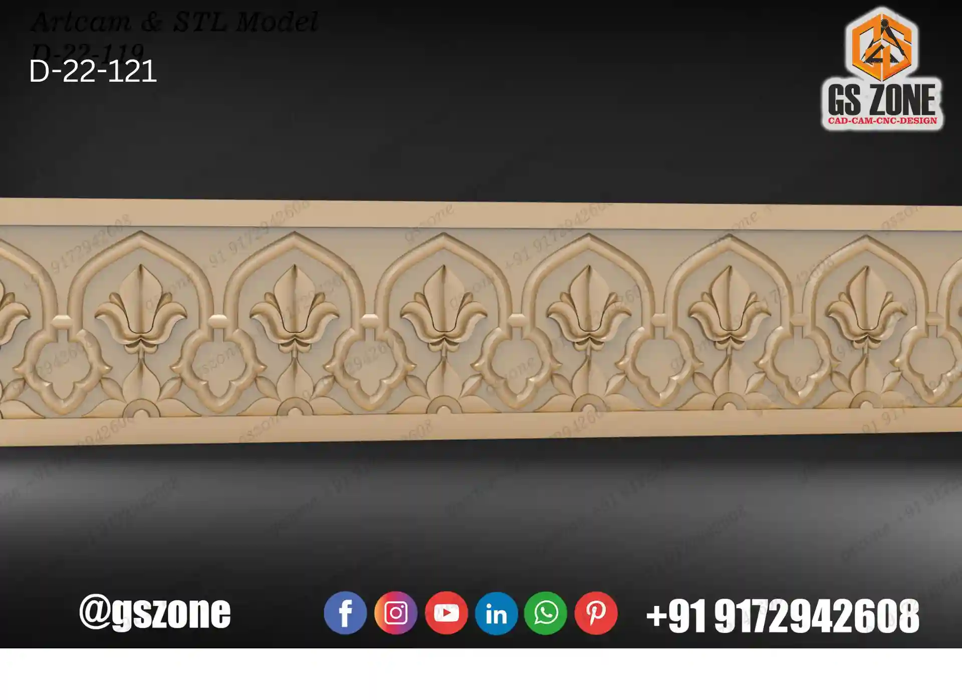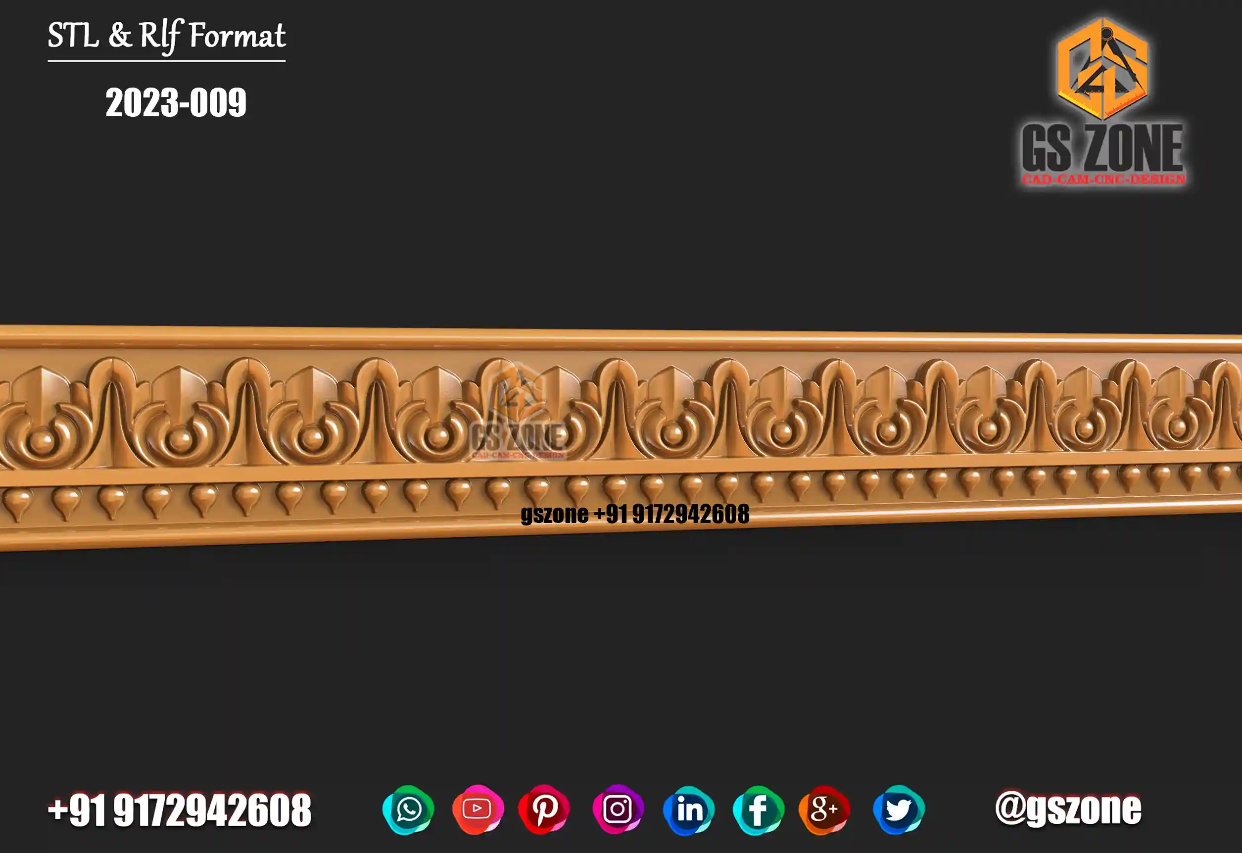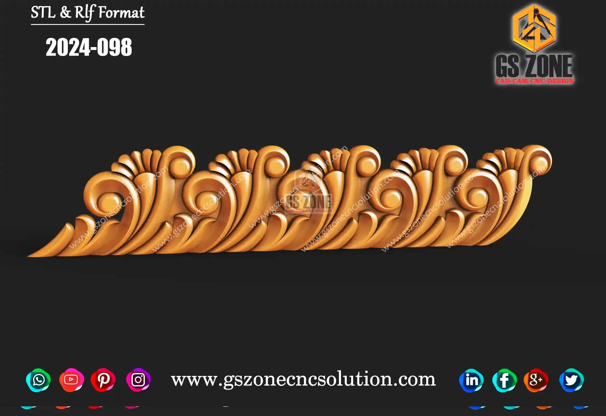 ✅ GSZONE Design 🔖 Product Code: 2025-037 📏 Height: 7 inches 📏 Width: 35 inches 📏 Z-Depth: 10 mm 📁 File Formats: .RLF, .STL (Compatible with ArtCAM & CNC Routers) 🛠️ Application: 3D carving with CNC Router machines