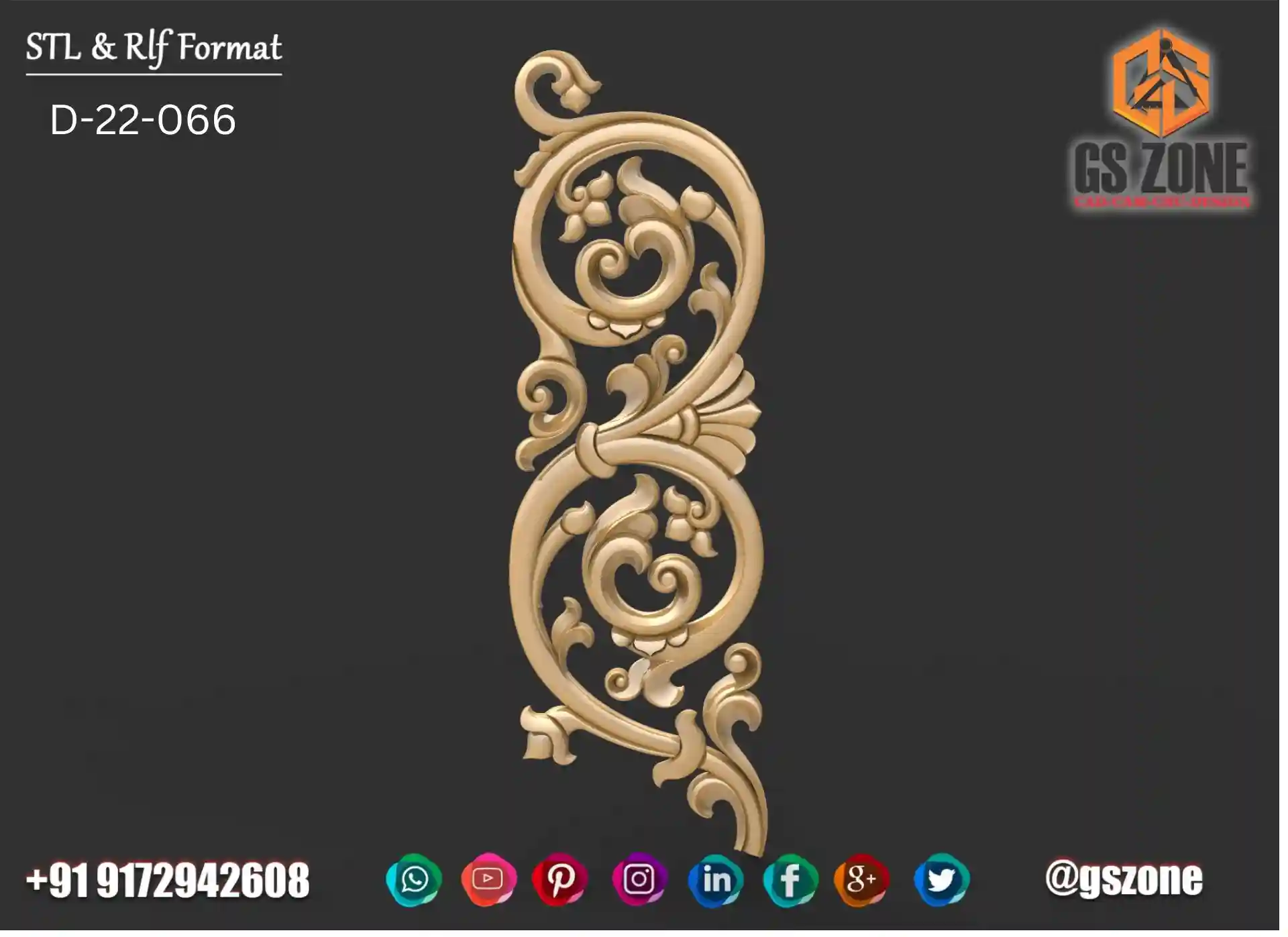 gszone 3D Design Model - D-22-066 Z- 10 mm format- .rlf .STL It looks like you're interested in the GS Zone 3D Design Model D-22-066 with a Z-depth of 10 mm and available in .rlf and .STL formats. This model is likely part of their extensive range of 3D designs for CNC router machines.