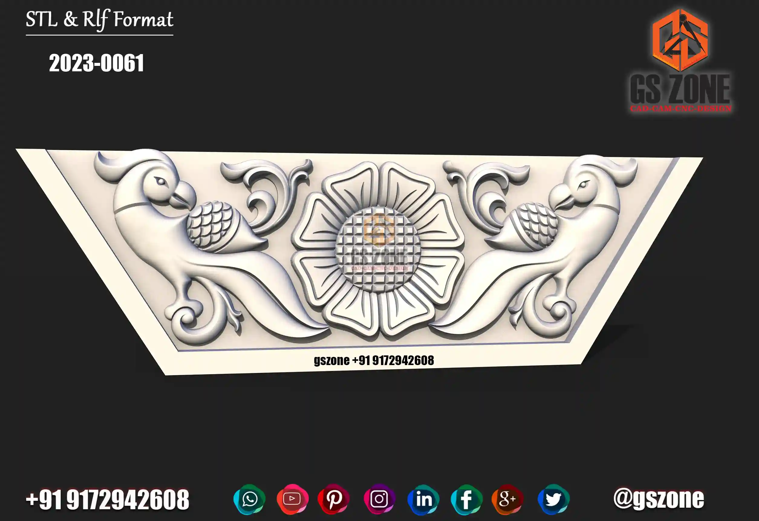 gszone 3D Design Model - 2023-0061 Z- 10 mm format- .rlf .STL It looks like you're interested in the GS Zone 3D Design Model 2023-0061 with a Z-depth of 10 mm and available in .rlf and .STL formats. This model is likely part of their extensive range of 3D designs for CNC router machines.