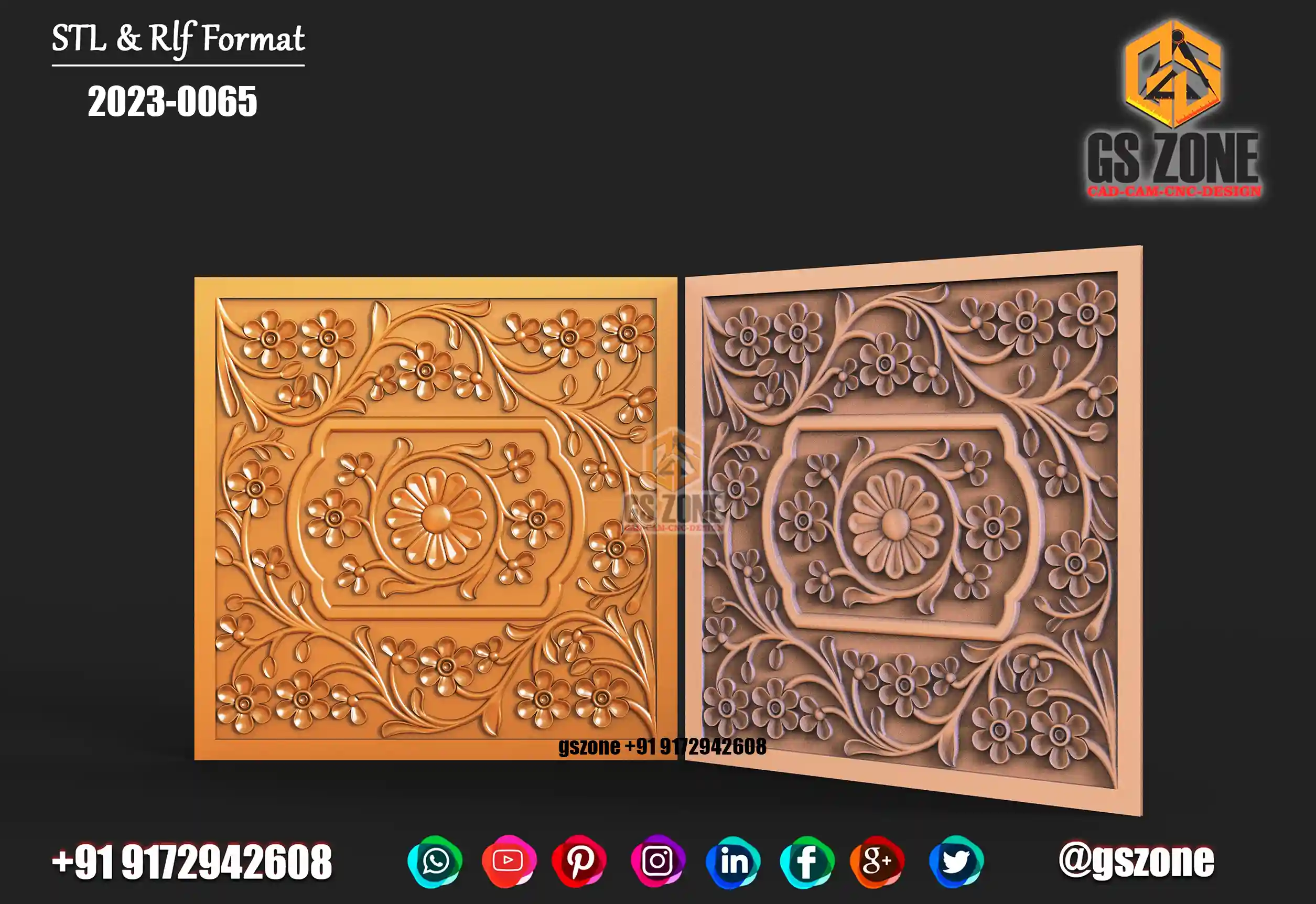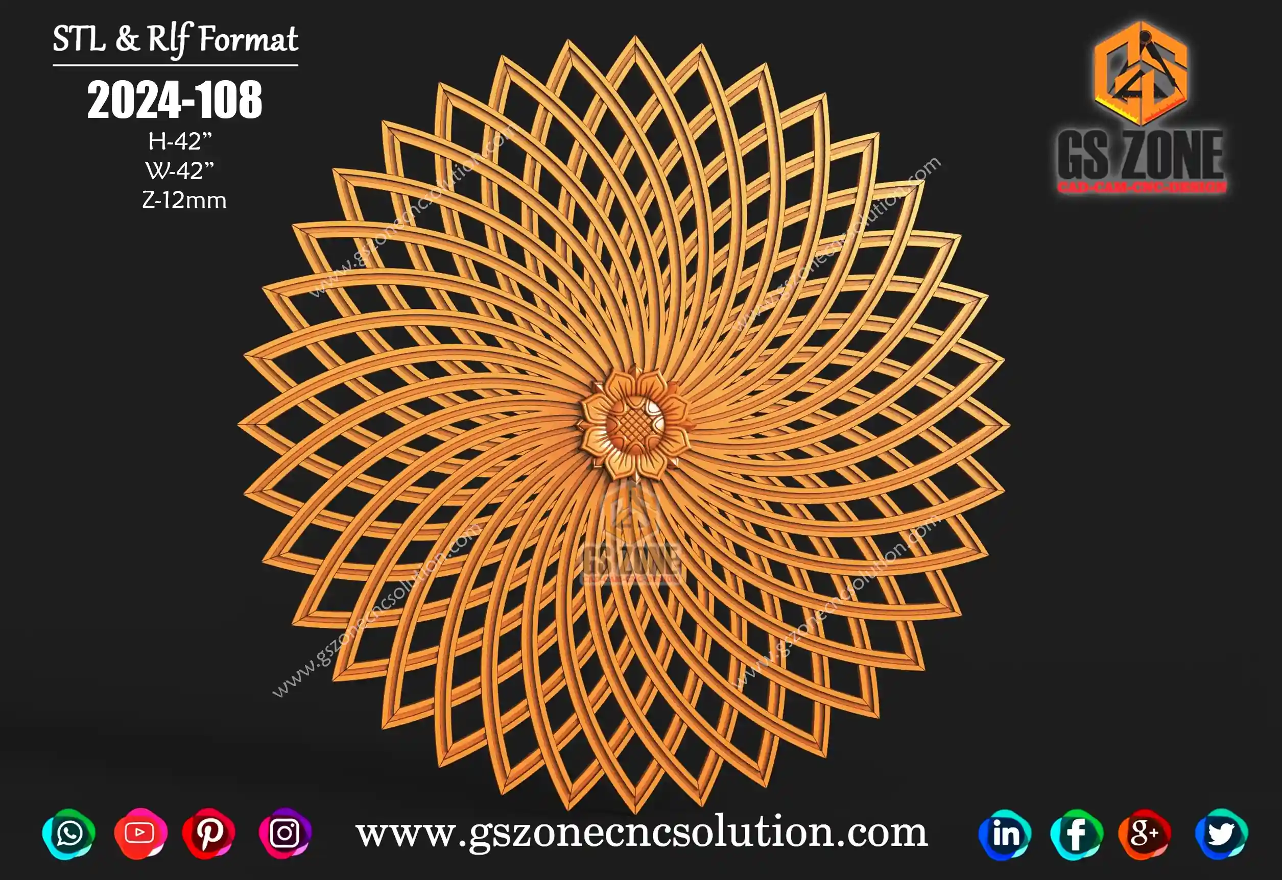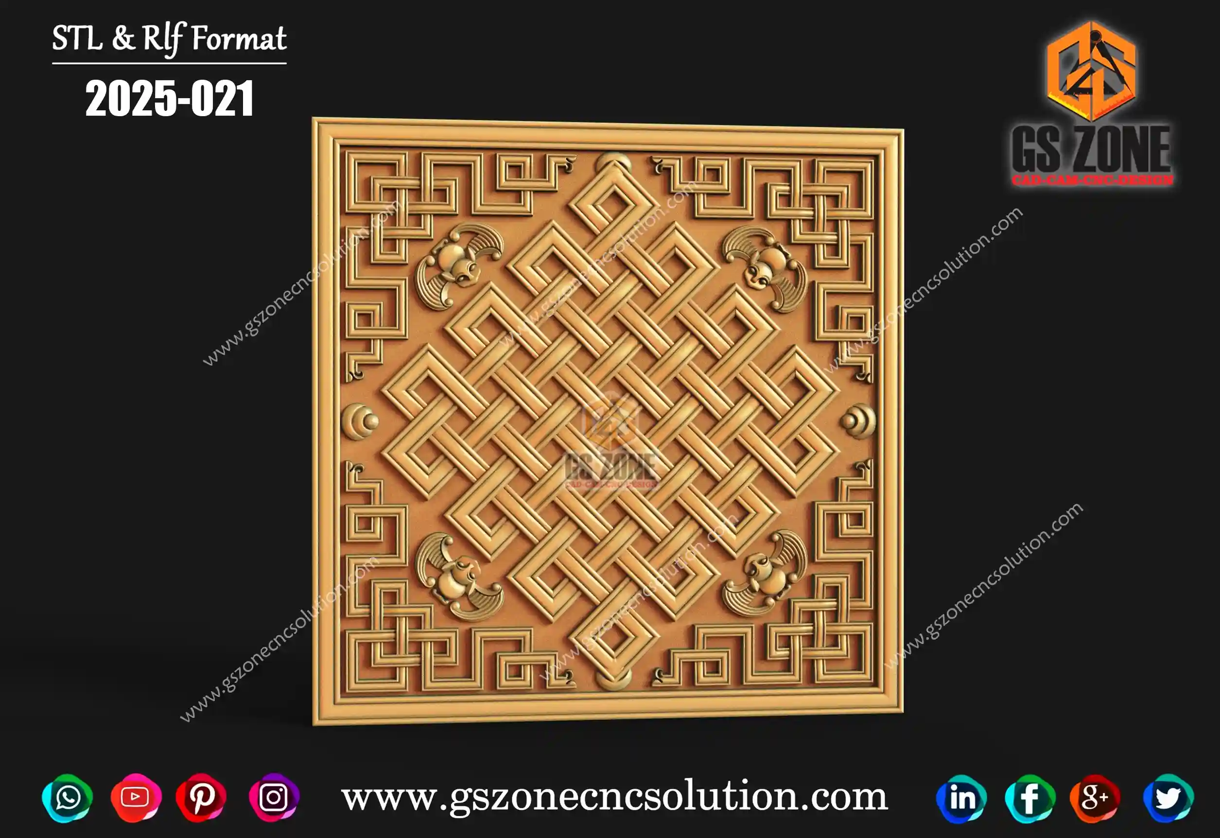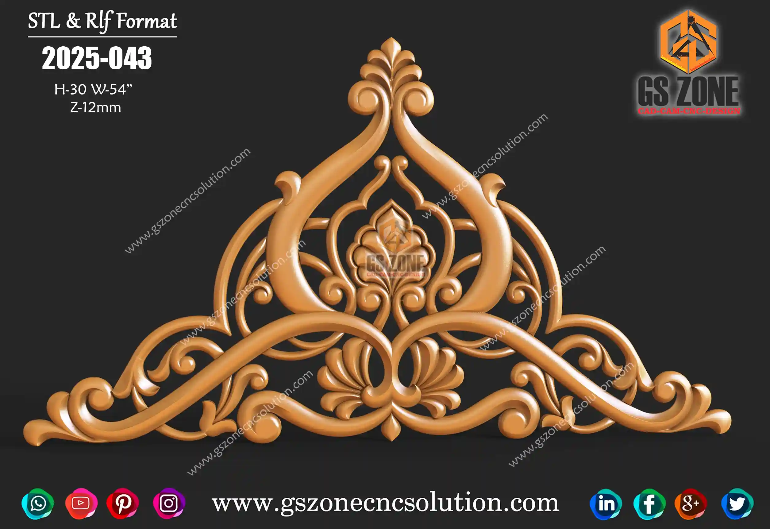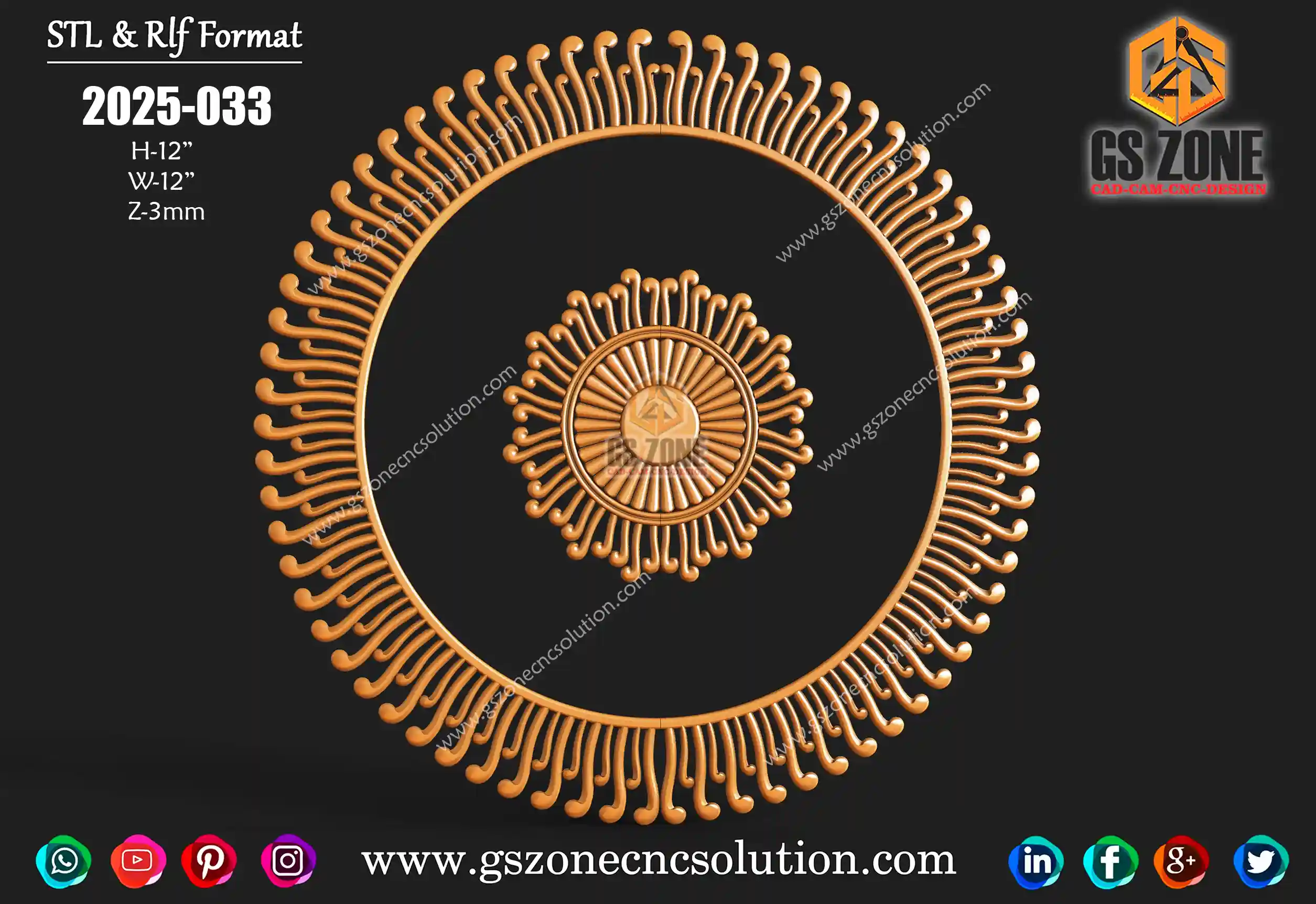 ✅ GSZONE Regular Design 🔖 Product Code: 2025-036 📏 Height & Width: 12 inches 📏 Z-Depth: 7 mm 📁 File Formats: .RLF, .STL (Compatible with ArtCAM & CNC Routers)
