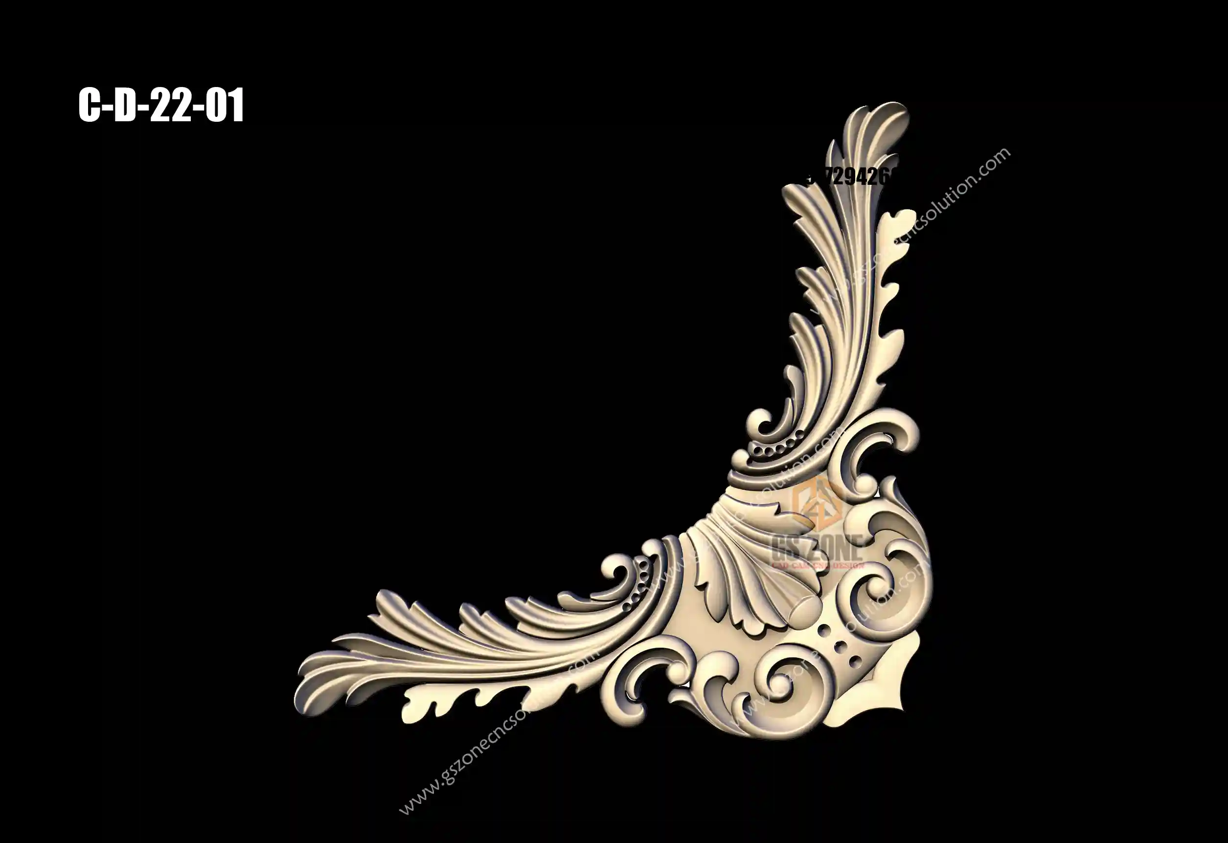 🔶 C-D-25-06 | 3D Floral Corner Design – GSZone Exclusive 📏 Design Size: • Height: 17" • Width: 17" 🔍 Z-Depth: 5 mm 📁 File Formats: .RLF & .STL (ArtCAM / CNC Ready)