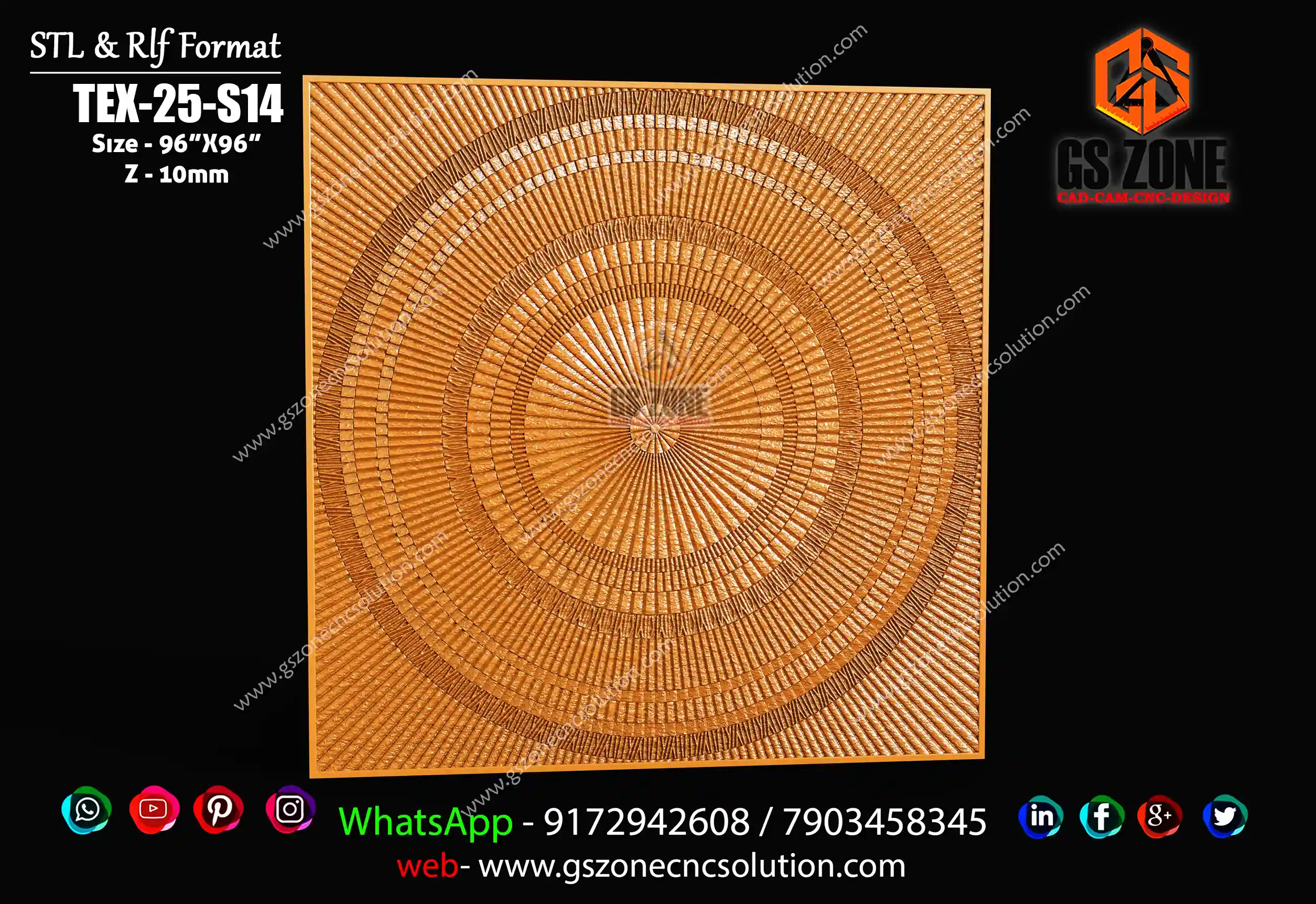 🔷 Tex-25-S11 | 3D Texture Panel Design 🔷 By GS Zone CNC Solution™ 📐 Size & Dimensions Height: 108 Inch Width: 113 Inch Z-Depth: 18 mm 📁 File Formats ✅ STL ✅ RLF