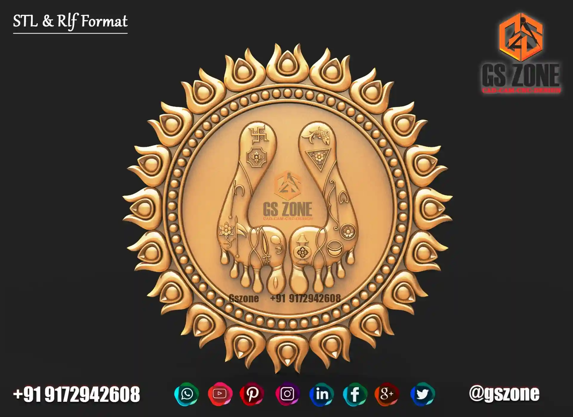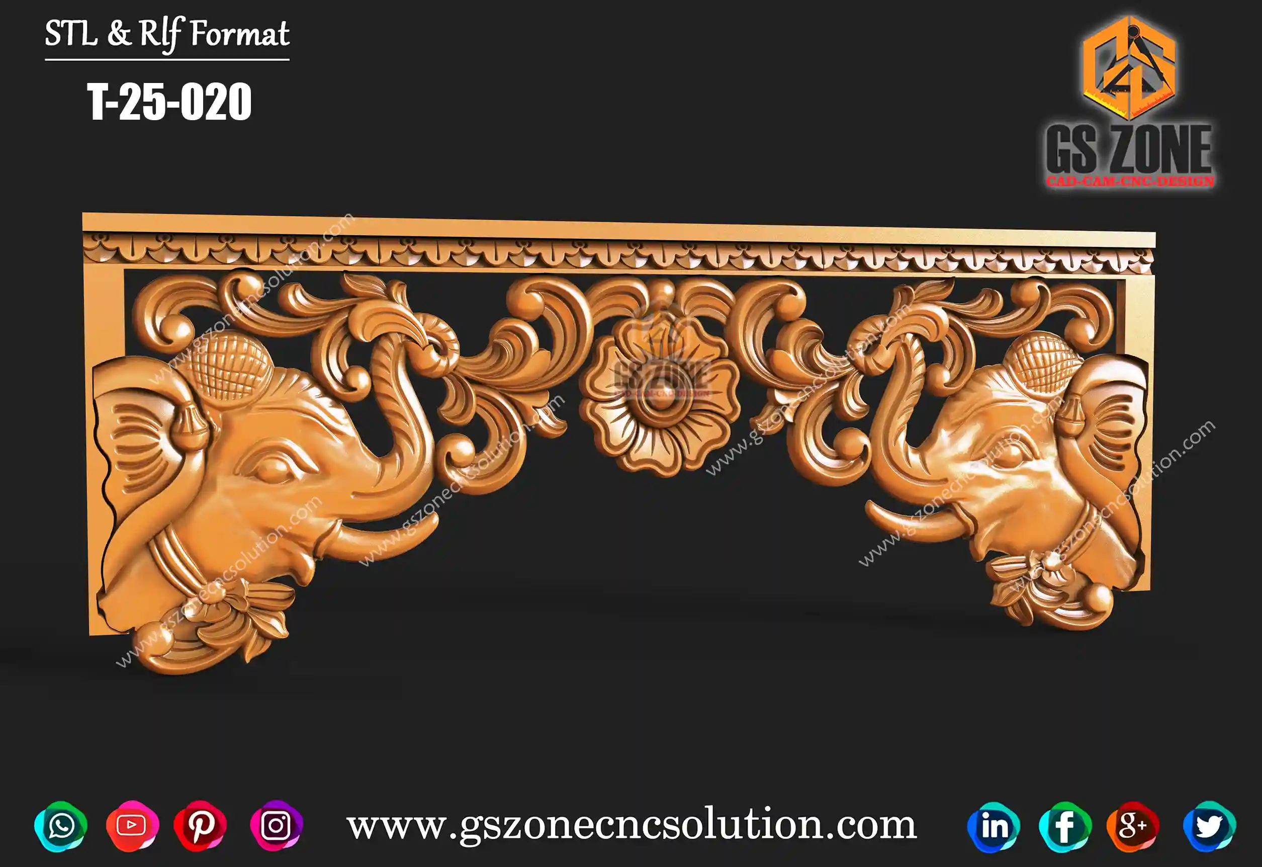 🪔 Kirti Mukh CNC Design | STL & RLF Format ✨ GSZone CNC Solution proudly presents the Kirti Mukh – a traditional and highly detailed 3D design, crafted exclusively for CNC router projects. 📐 Product Specifications Design Code: KIRTI-25-001 Format: STL & RLF Size: Height – 8” | Width – 10” Z-Depth: 12mm Category: Traditional / Decorative Design