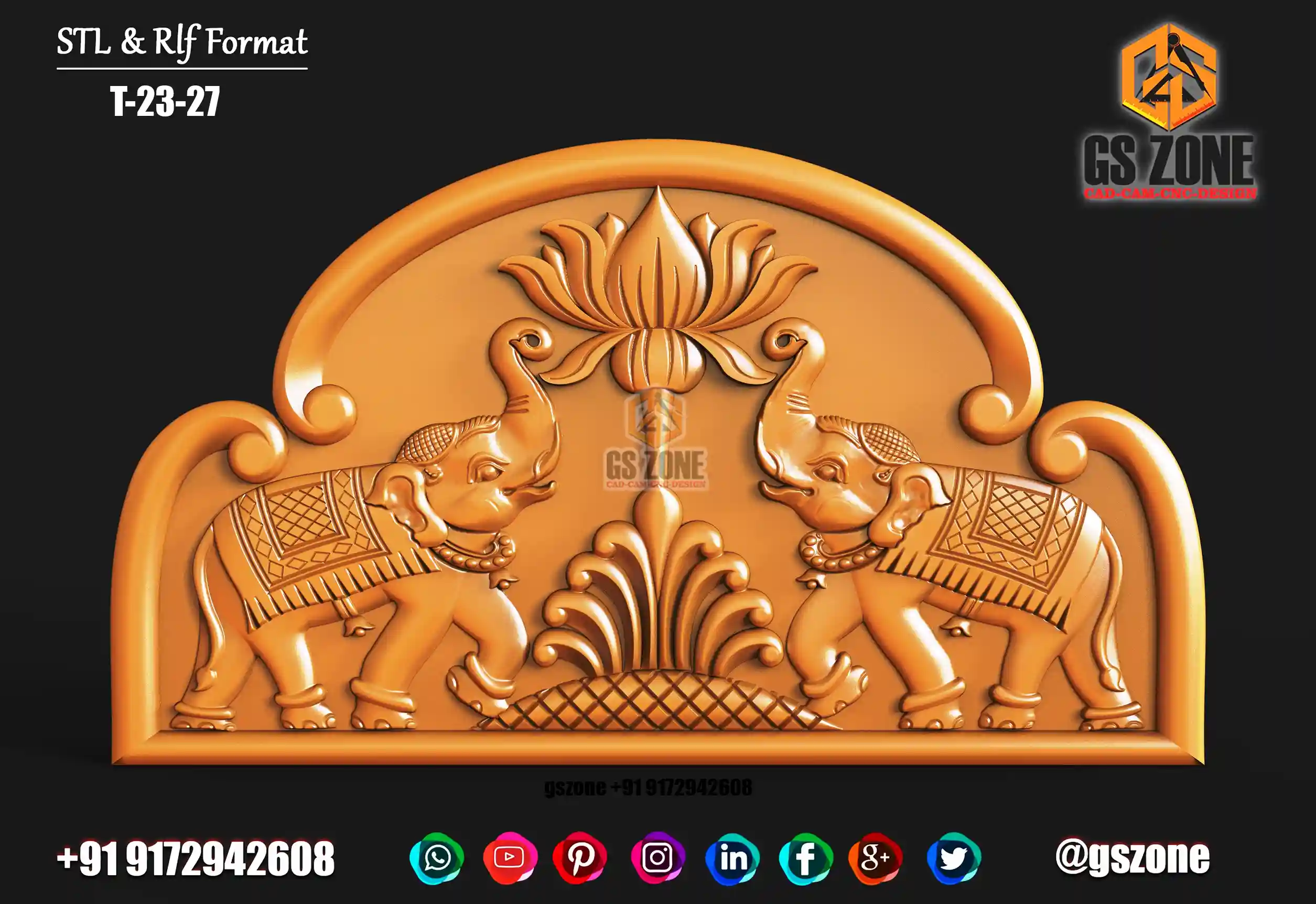 🛕 GSZONE 3D Mandir-Style Arch Design – Elephant Floral Elegance 🔖 Product Code: T-25-030 📐 Size: H – 16" × W – 31" × Z – 8mm 📁 File Formats: STL & RLF (CNC Router Ready)