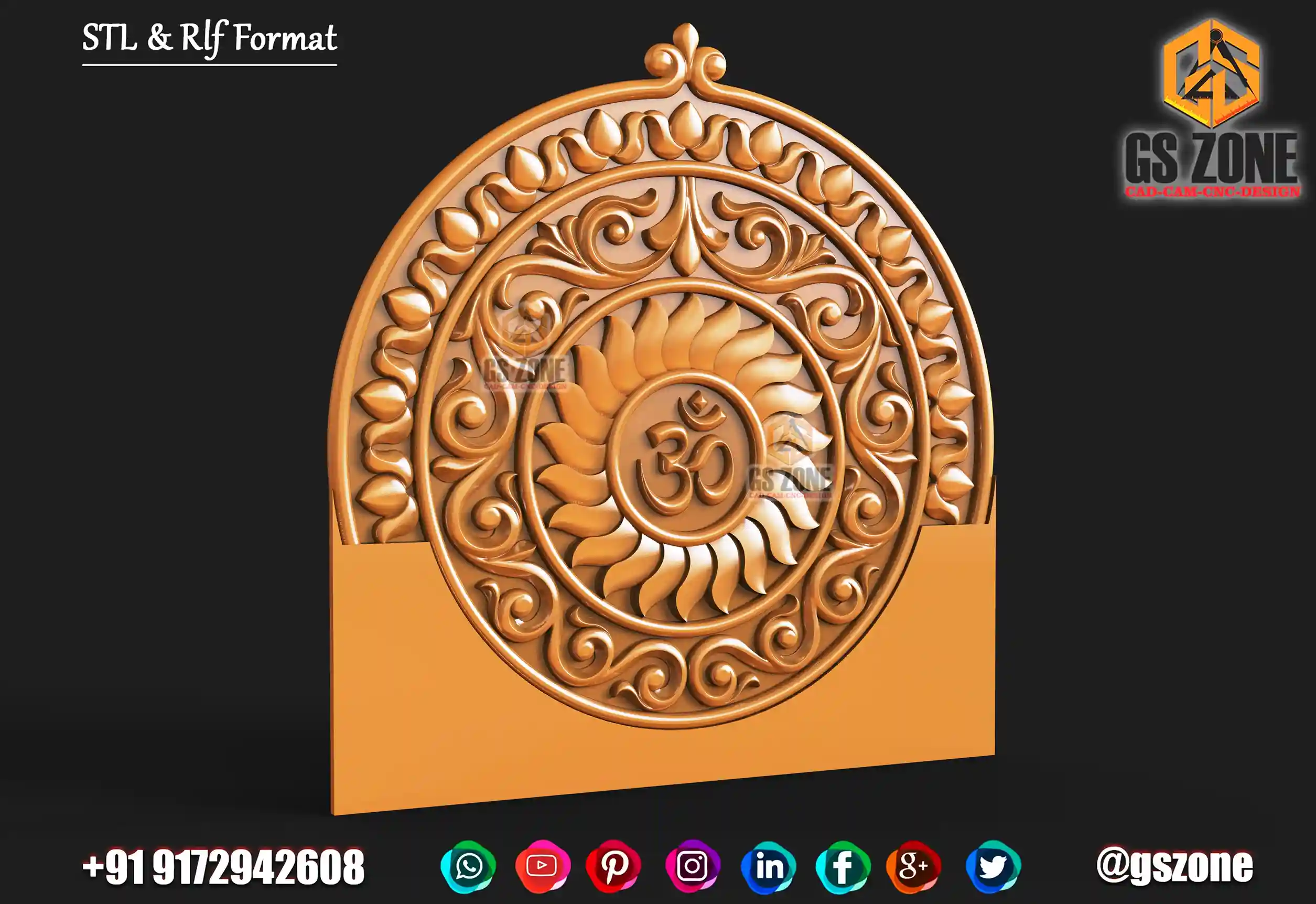 gszone 3D Design Model -Om Ganesh Panel Z- 10 mm format- .rlf .STL It looks like you're interested in the GS Zone 3D Design Model- Om Ganesh Panel with a Z-depth of 10 mm and available in .rlf and .STL formats. This model is likely part of their extensive range of 3D designs for CNC router machines.