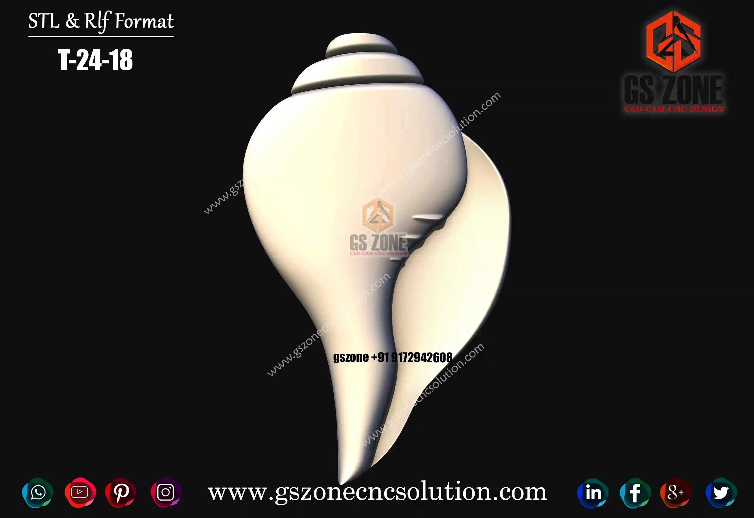 🕉️ T-25-059 | Elegant Shankh 3D Relief Design Format: STL & RLF Size: H-18” × W-10” Z-Depth: 12mm