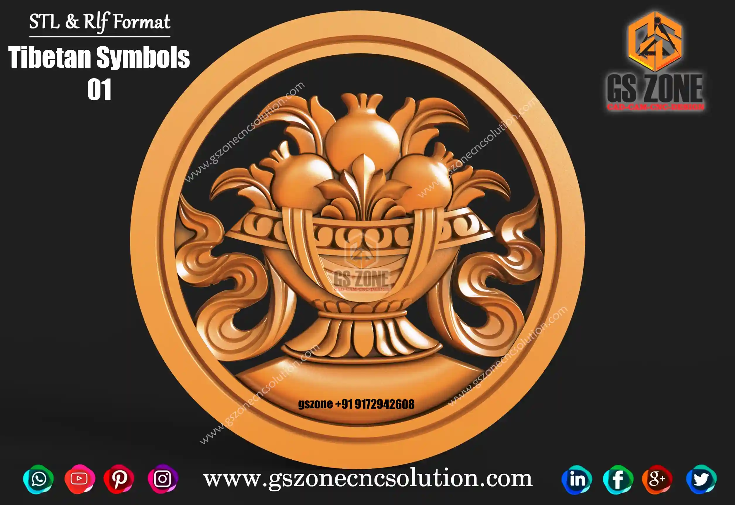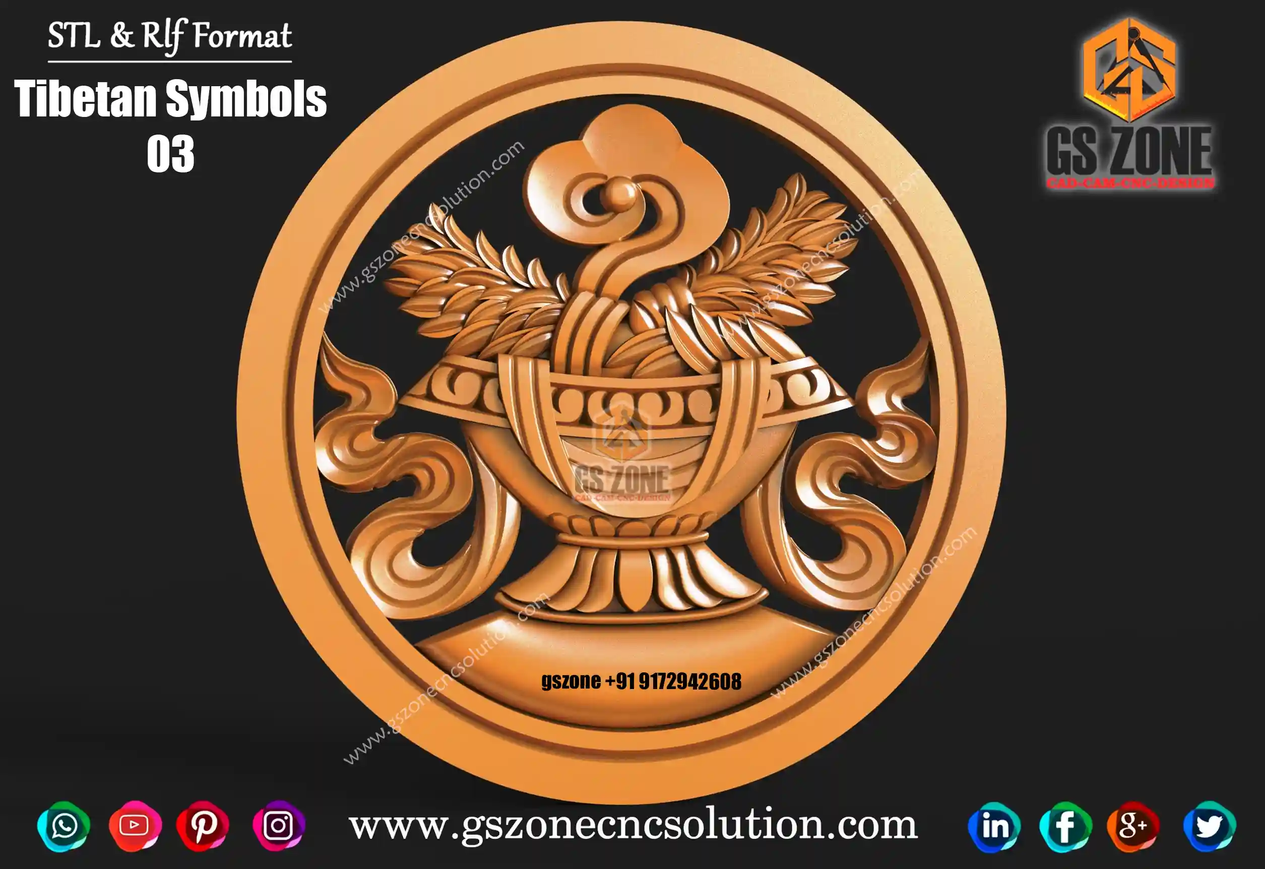 🆔 Product Code: Tibetan Symbols 03 📐 Size: 17 x 17 inches 📏 Z Depth: 15 mm 📁 File Formats: .RLF, .STL