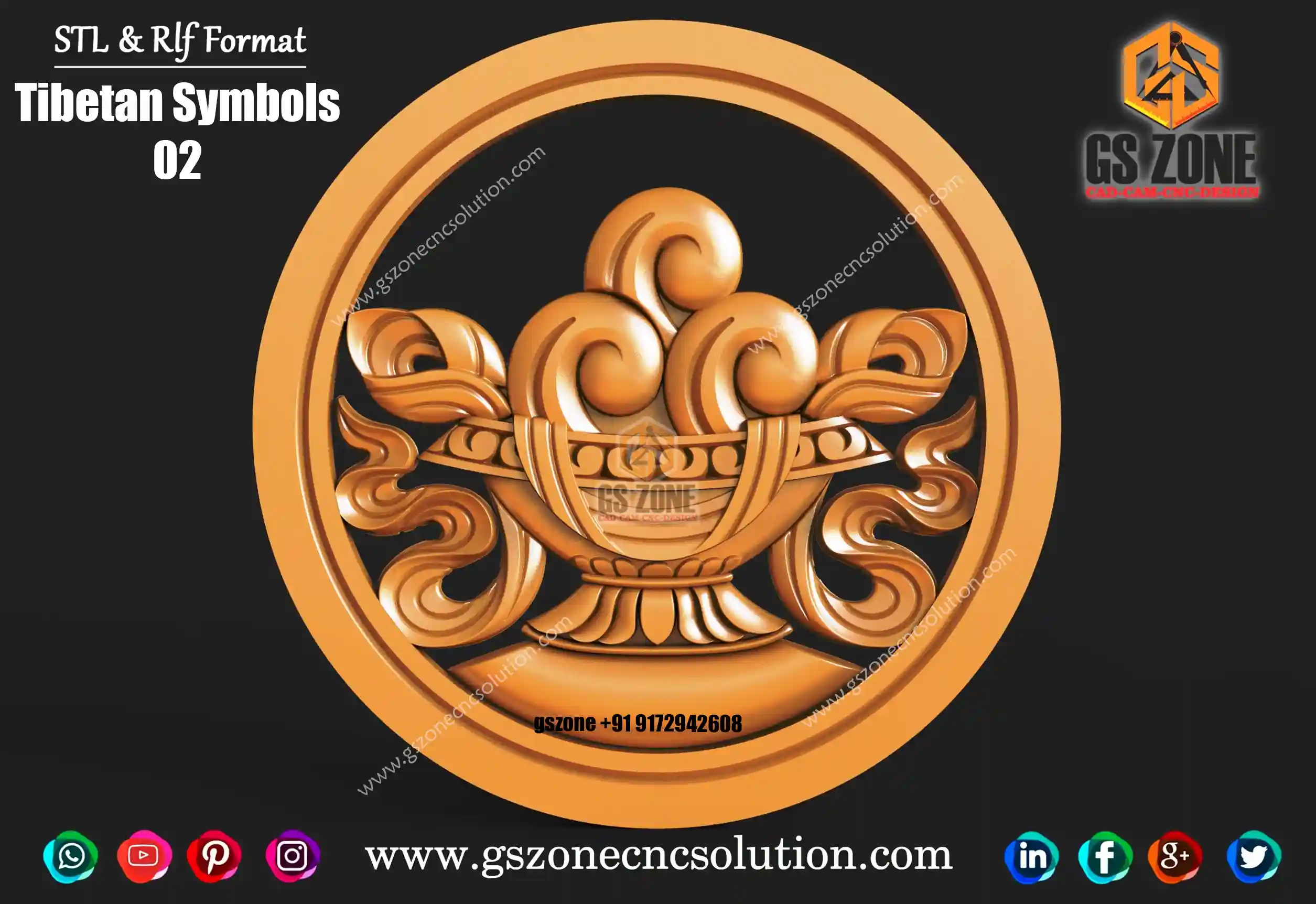 🆔 Product Code: Tibetan Symbols 10 📐 Size: 17 x 17 inches 📏 Z Depth: 15 mm 📁 File Formats: .RLF, .STL