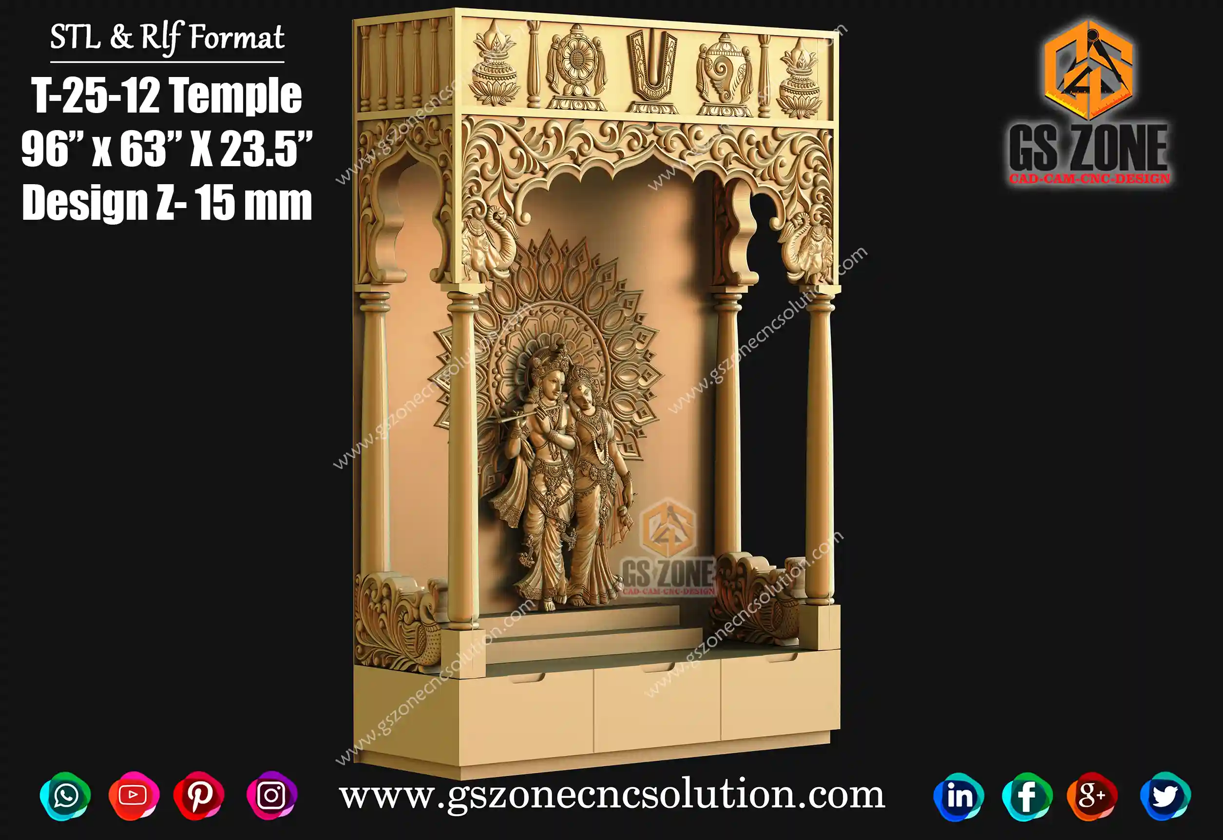 nfuse your sacred spaces with divine beauty using the GS ZONE 2023-0017 Temple 3D Design. Created and designed with precision by GS ZONE, this CNC router masterpiece, available in .rfl and .stl formats, provides versatility for jali cutting, bed carving, and beyond. Experience the perfect blend of 2D and 3D design for an ethereal atmosphere. For inquiries, contact us on WhatsApp at wa.me/9172942608 or visit our website at https://www.gszonecncsolution.com/.
