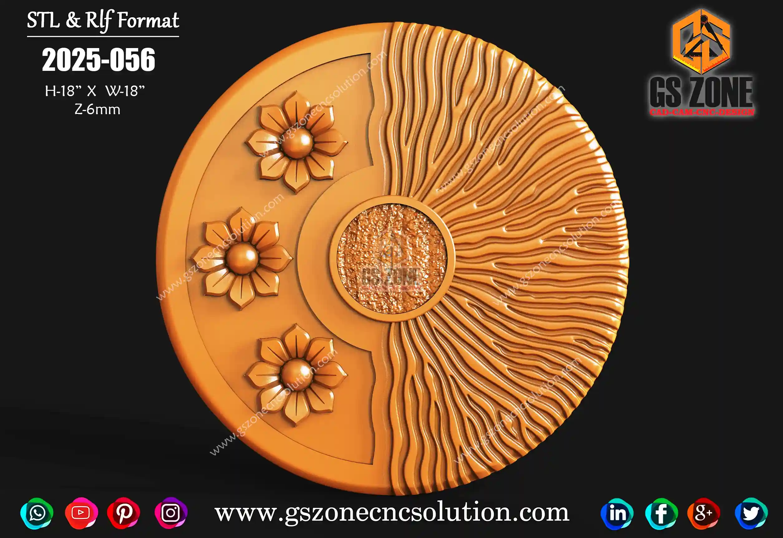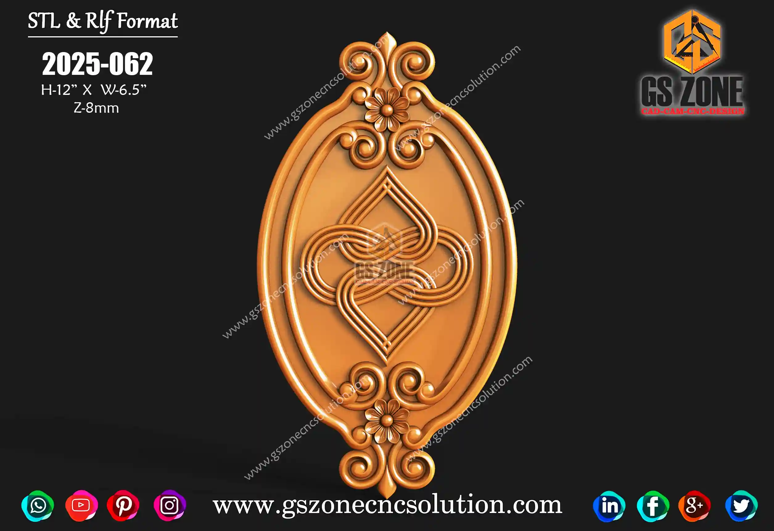 ✅ GSZONE Regular Design 🔖 Product Code: 2025-036 📏 Height & Width: 12 inches 📏 Z-Depth: 7 mm 📁 File Formats: .RLF, .STL (Compatible with ArtCAM & CNC Routers)