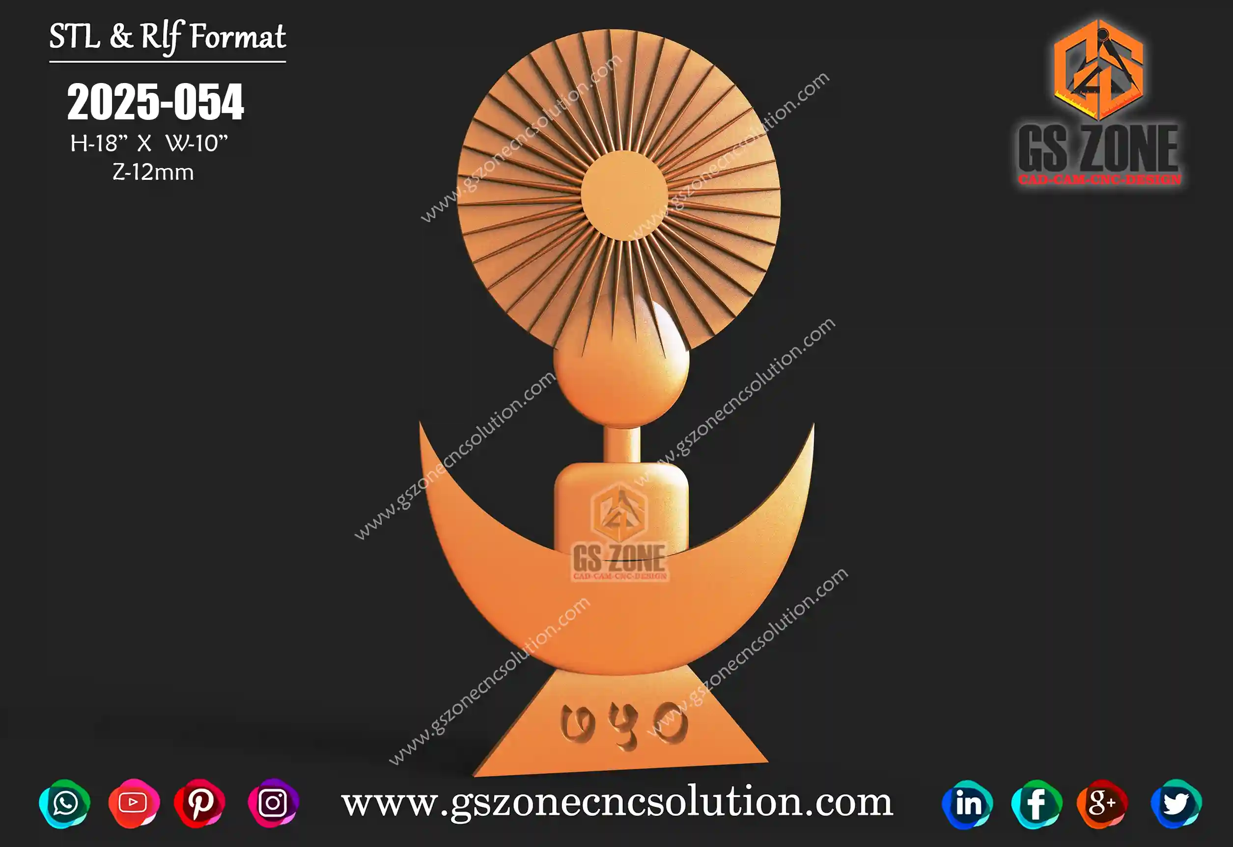 🌞 GSZONE 3D Design (2025-054) 📏 Size: Height – 18", Width – 10", Z-Depth – 12mm 📁 Formats: STL & RLF (Fully compatible with ArtCAM & CNC routers)