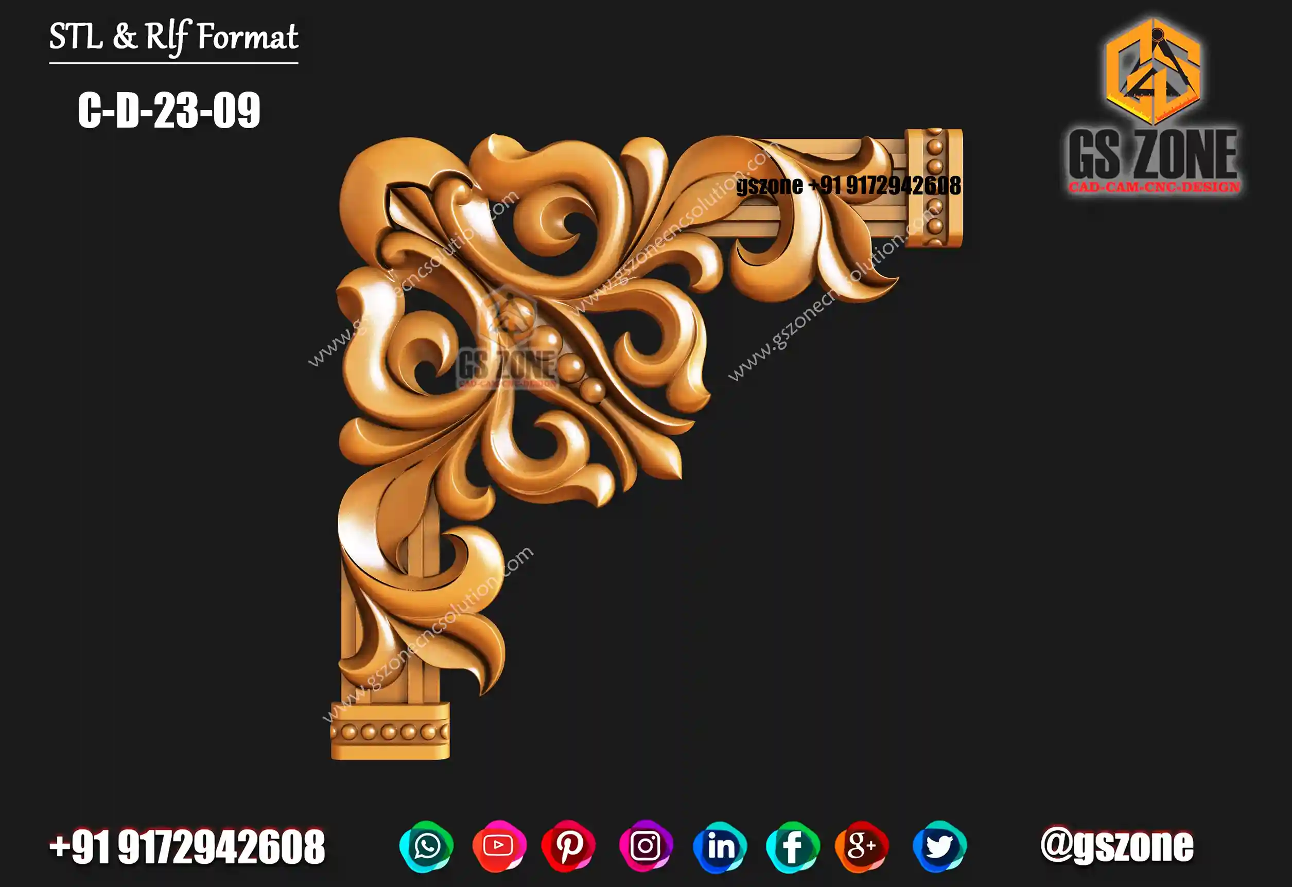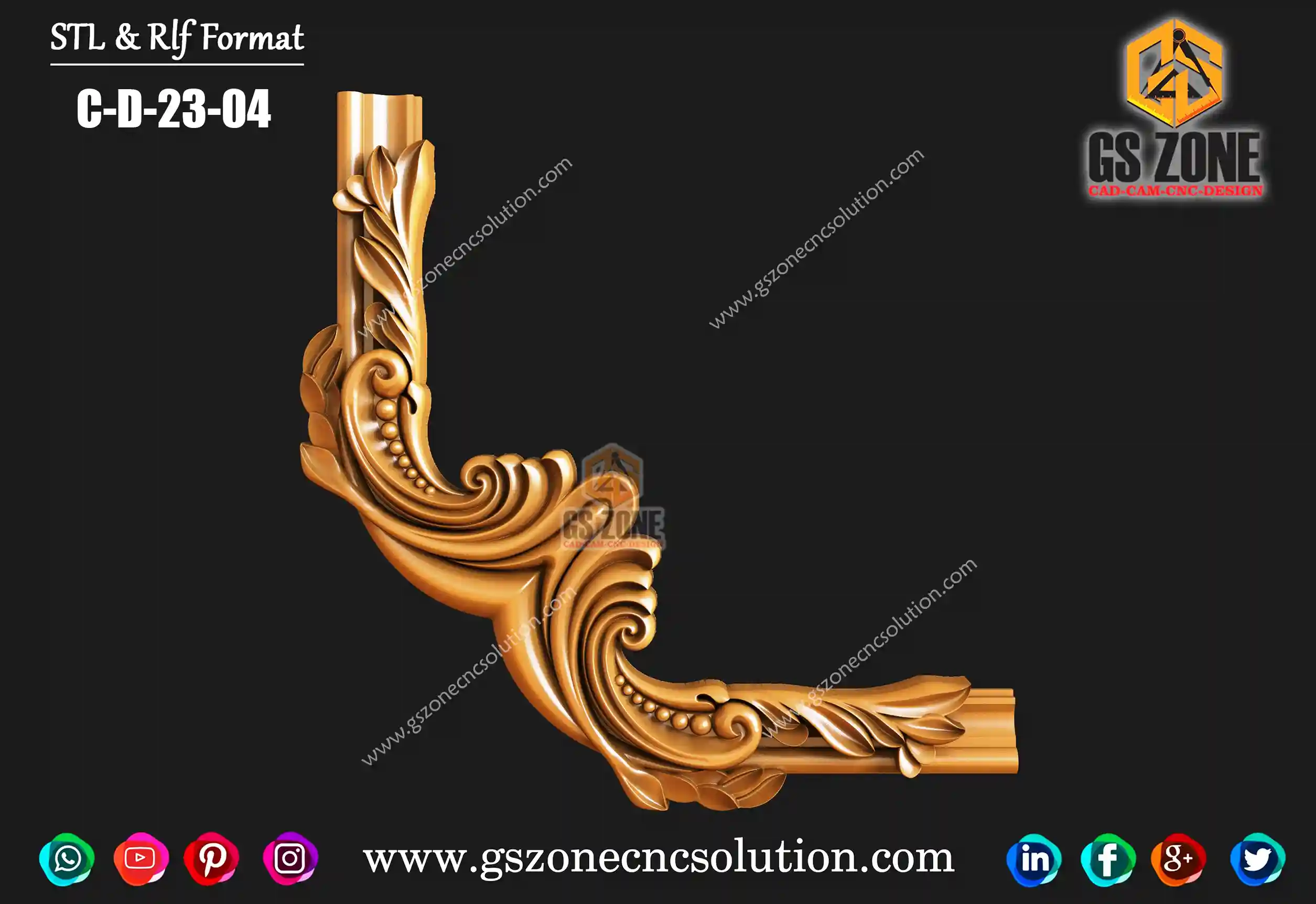 🔶 C-D-25-06 | 3D Floral Corner Design – GSZone Exclusive 📏 Design Size: • Height: 17" • Width: 17" 🔍 Z-Depth: 5 mm 📁 File Formats: .RLF & .STL (ArtCAM / CNC Ready)