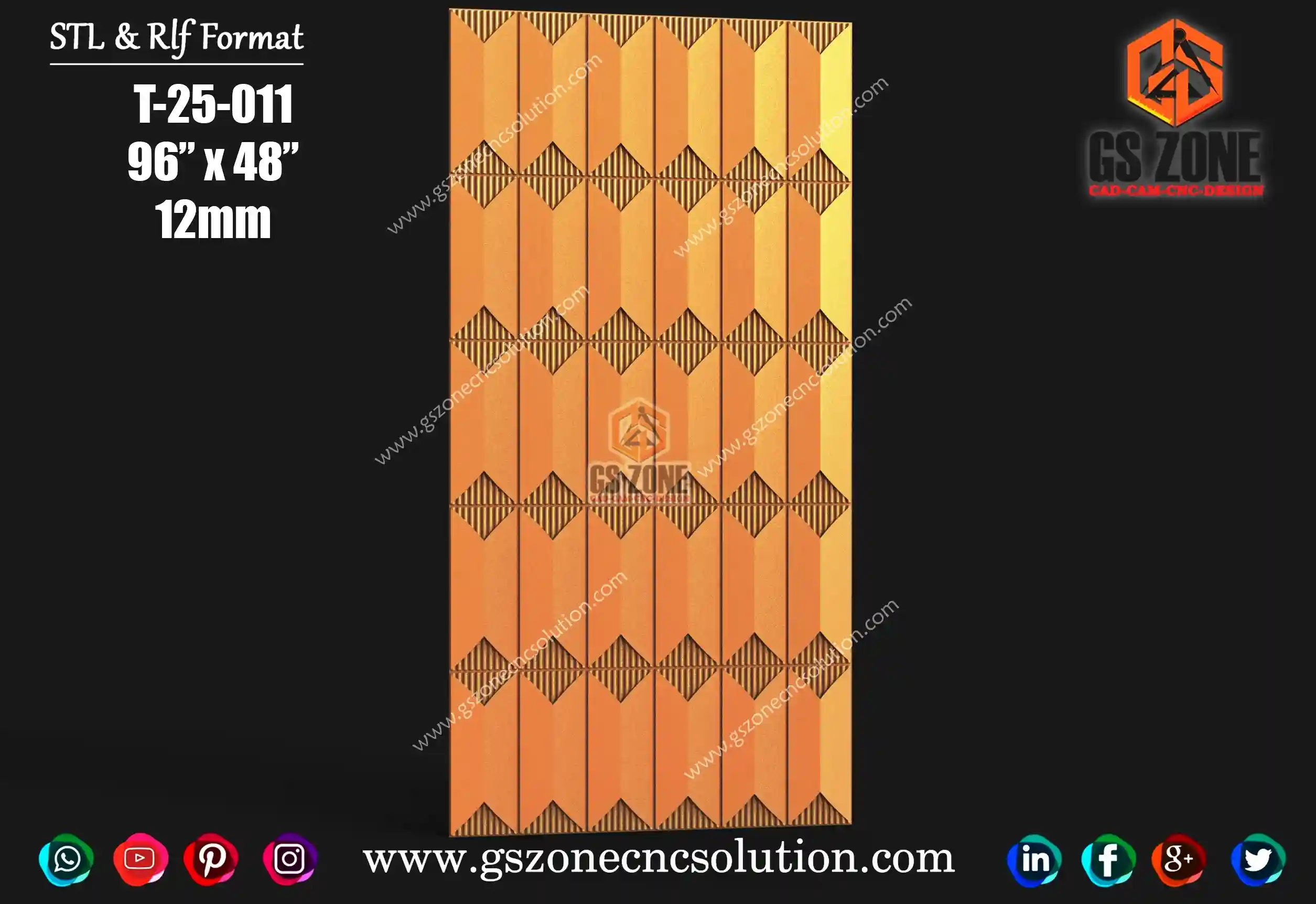 ⚜️ GSZone 3D Texture Panel Design – TEX-25-S05 ⚜️ 📐 Size & Dimensions 48" × 96" (Standard Sheet Size) Z-Depth: 15mm 💾 File Formats STL RLF