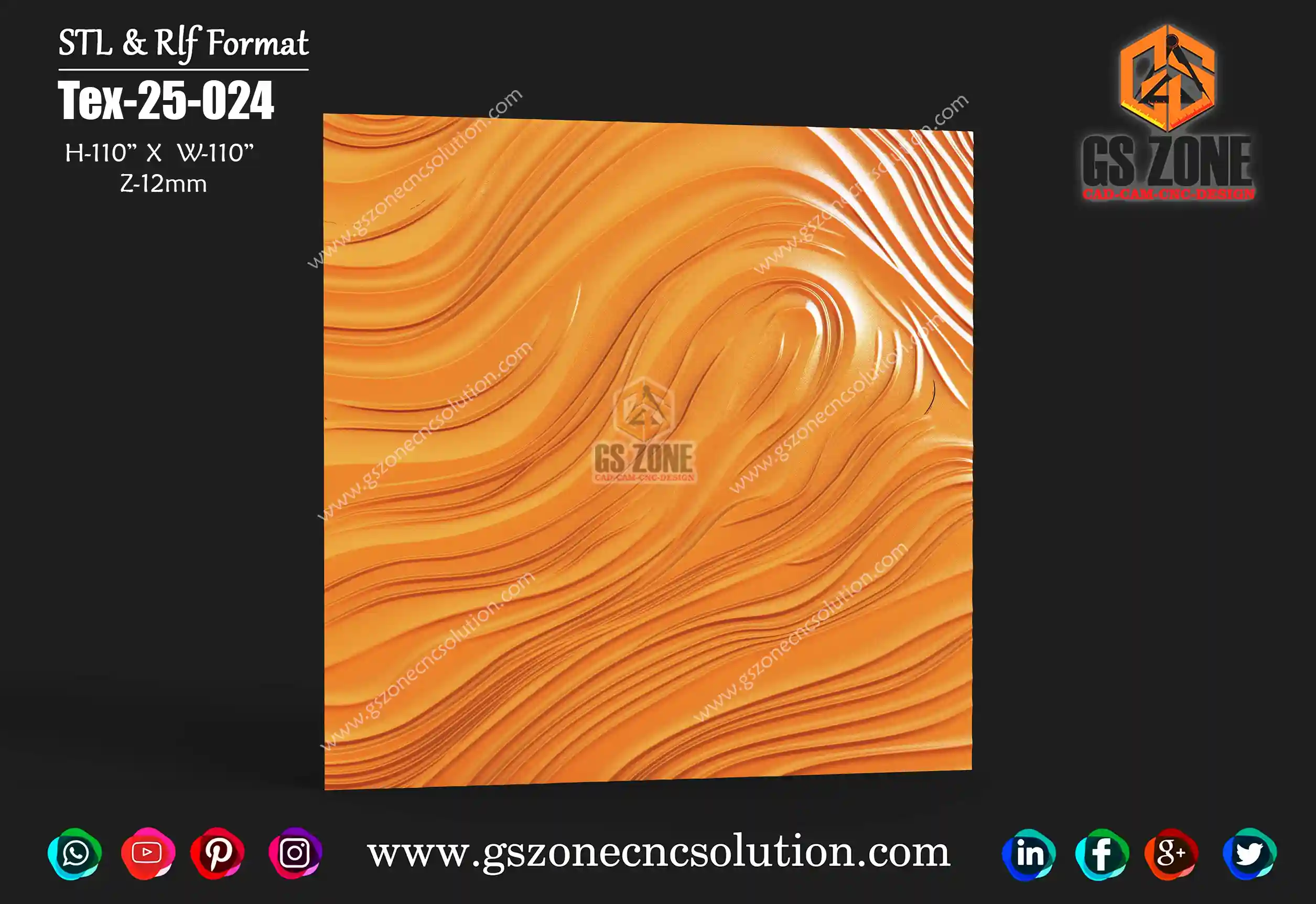 🌊 GSZone Wave Texture Panel Design | TEX-25-042 📏 Size & Dimensions: Height – 84 inch | Width – 84 inch ⚙️ Z-Depth: 18 mm 💾 File Formats: 🗂️ .STL & .RLF