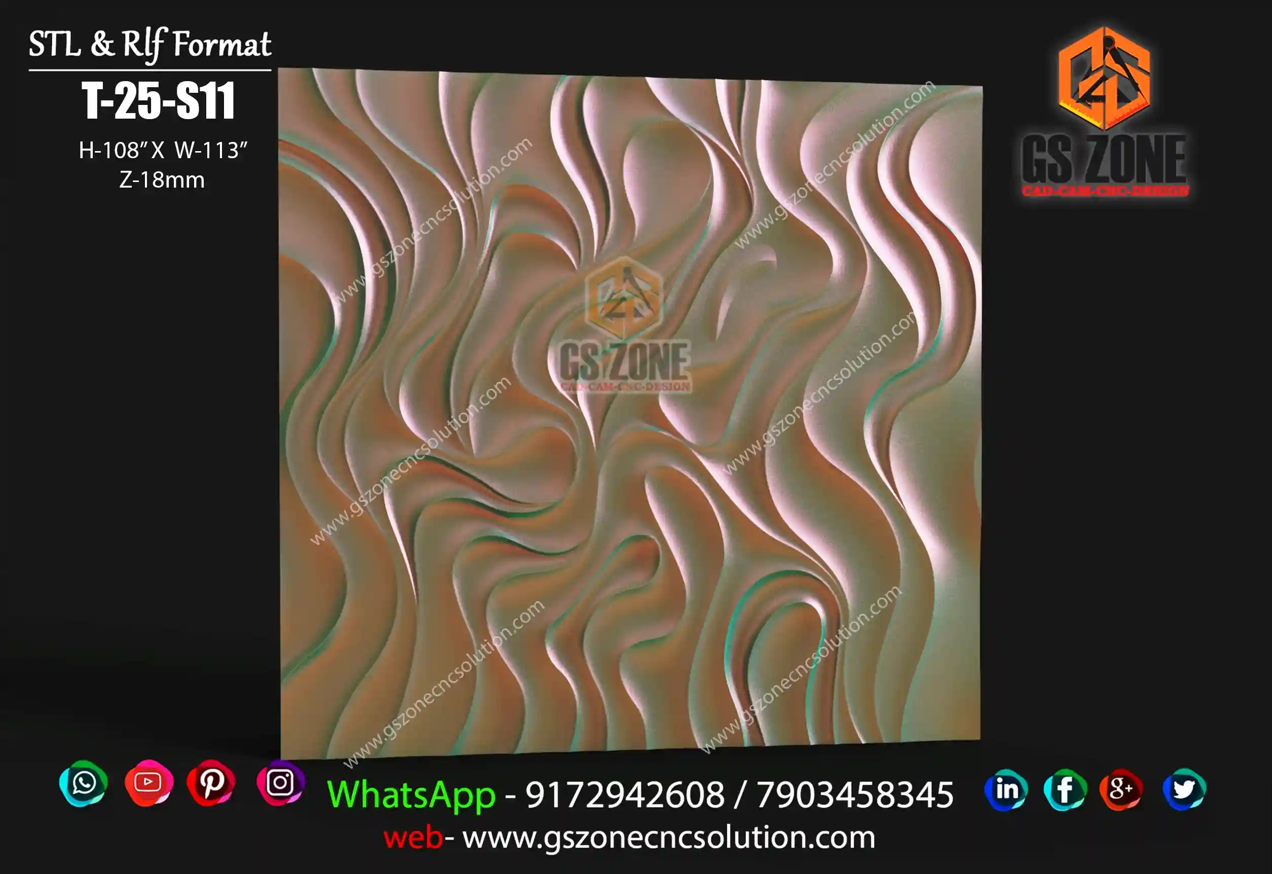 🔸 GSZONE 3D Texture Panel – TEX-25-022 📏 Size: H-96” x W-48” 🌀 Z-Depth: 15mm 📁 Format: STL & RLF