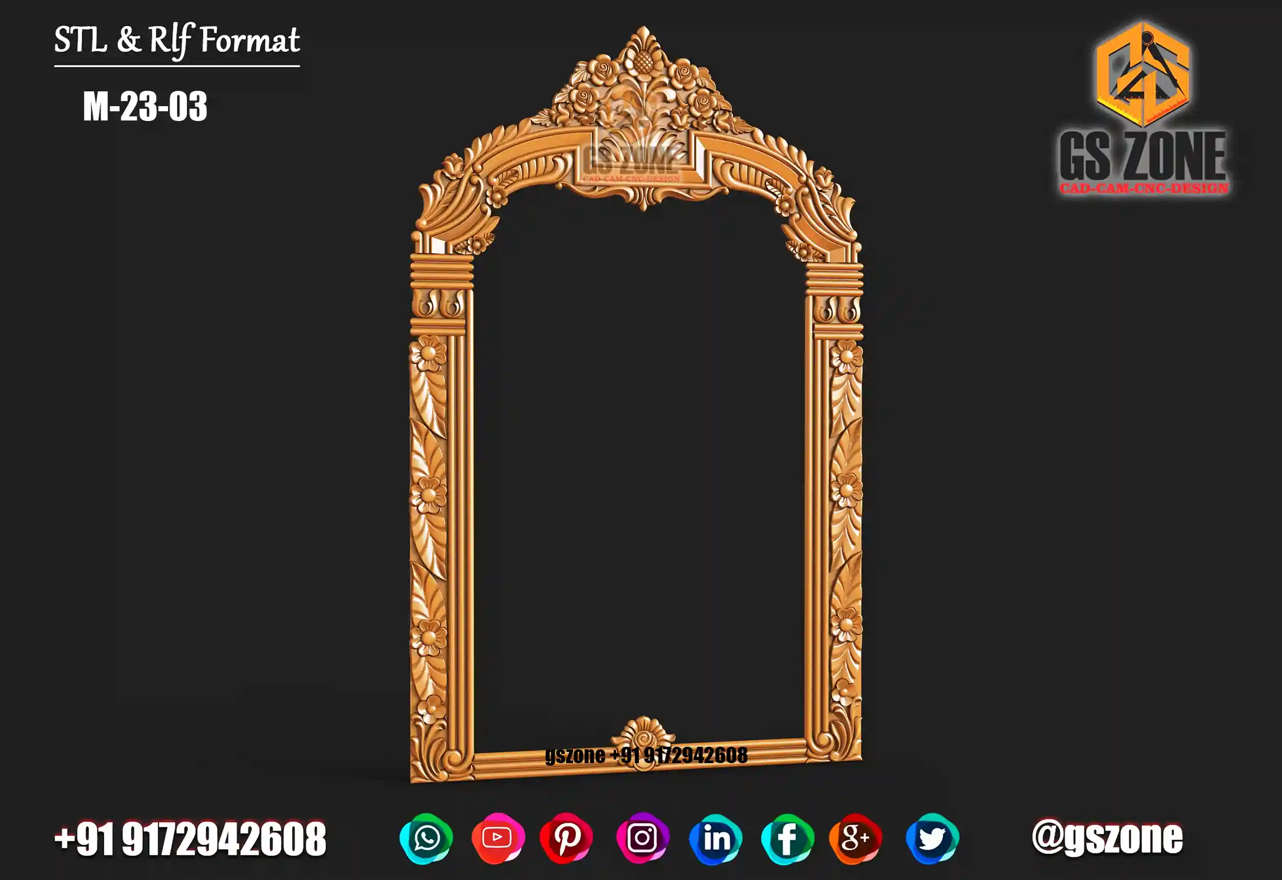Gszone Model- 3D Mirror Frame Code-M-22-03 Format -.rlf &.stl use - CNC Router Thikness - 12 mm