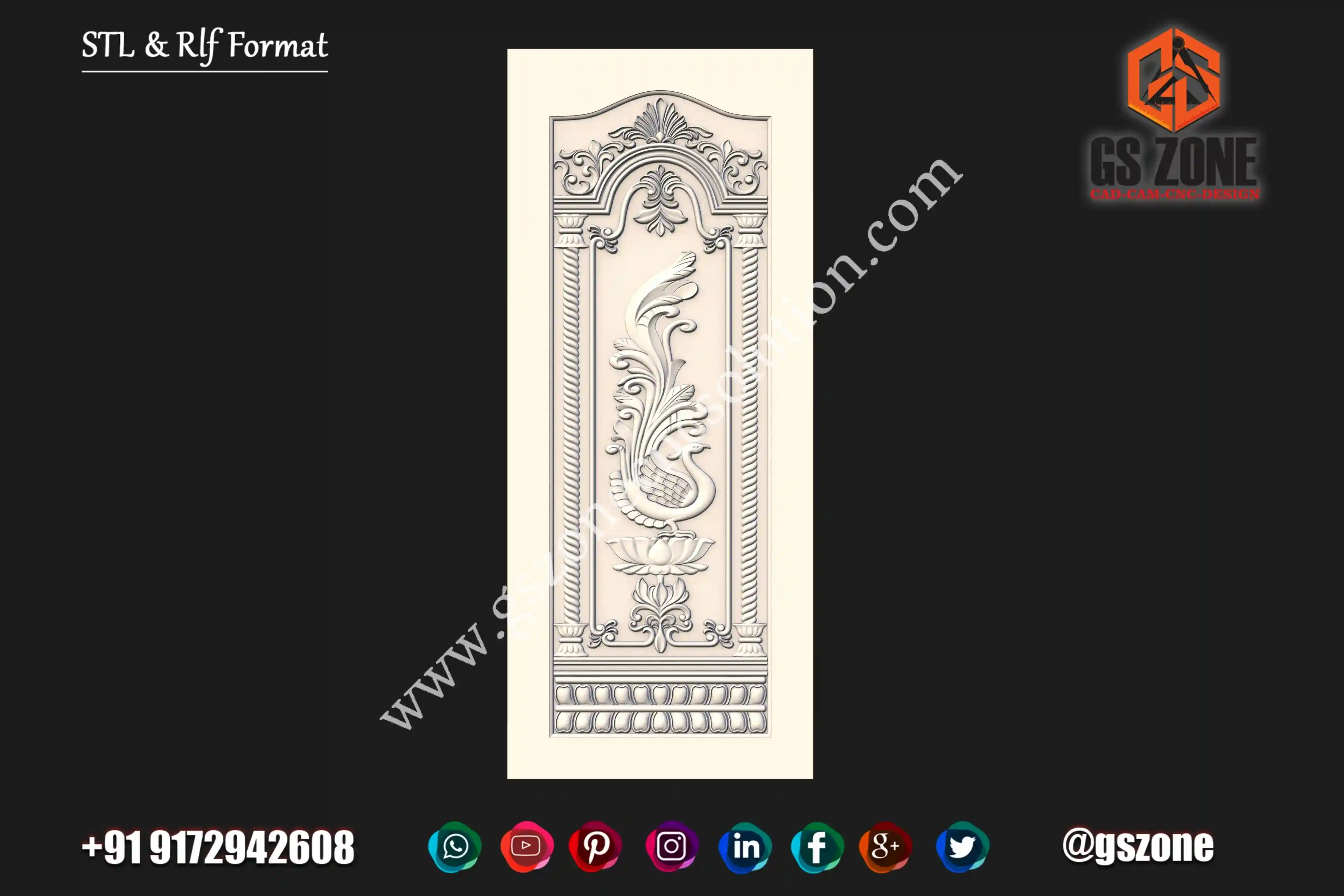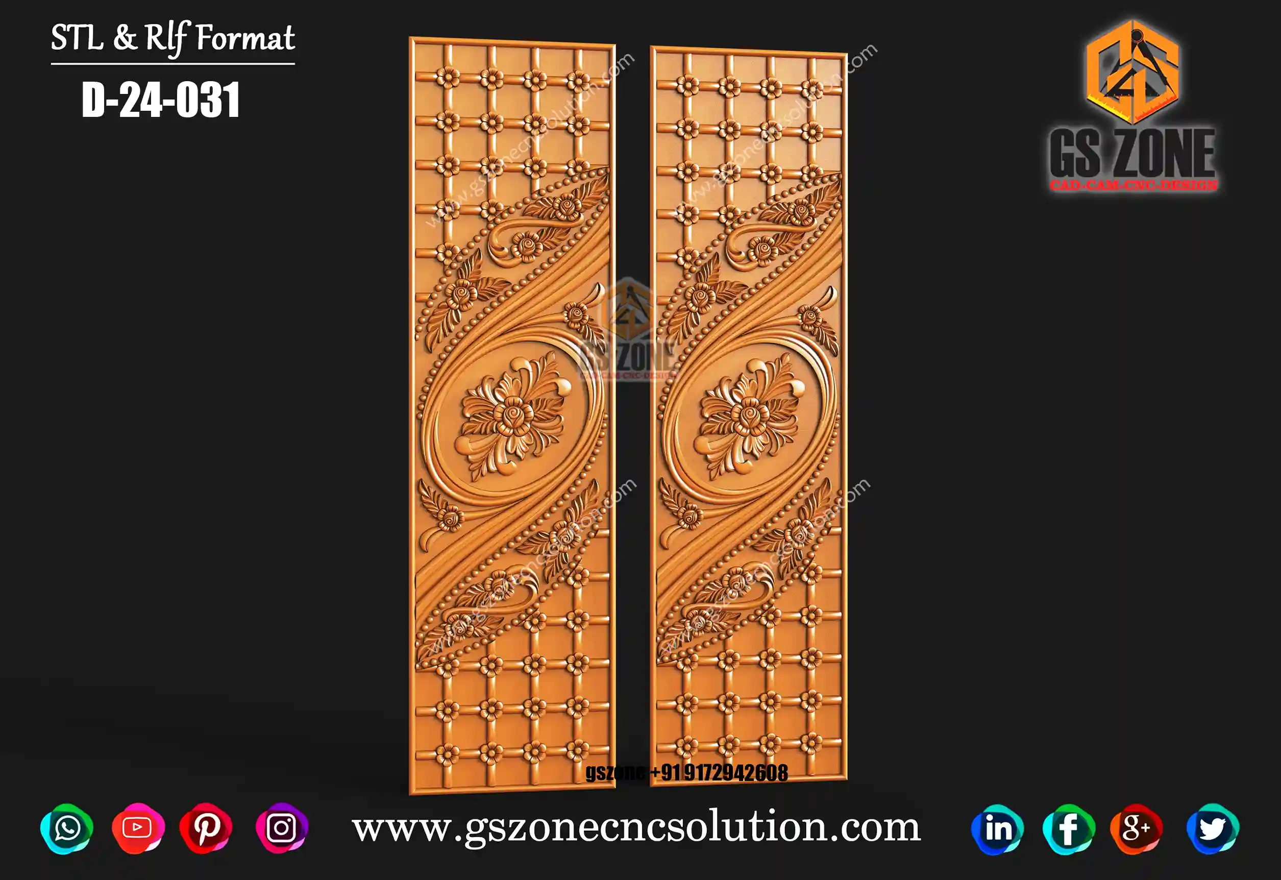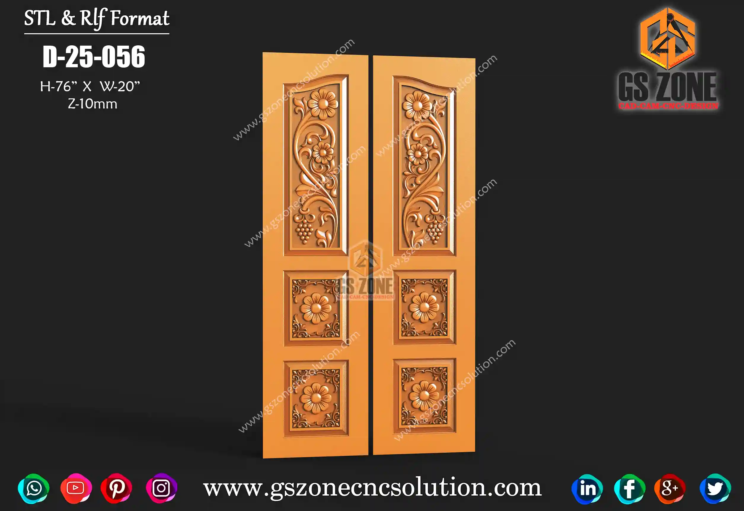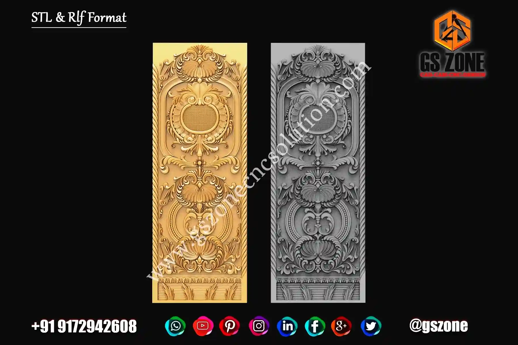 ✅ GSZONE 3D Designer Double Door Panel 🔖 Product Code: D-25-056 📐 Size (Each Panel): Height – 76 inches | Width – 20 inches 🌀 Z-Depth: 10 mm 📁 File Formats: .RLF & .STL (Fully Compatible with ArtCAM & CNC Routers)