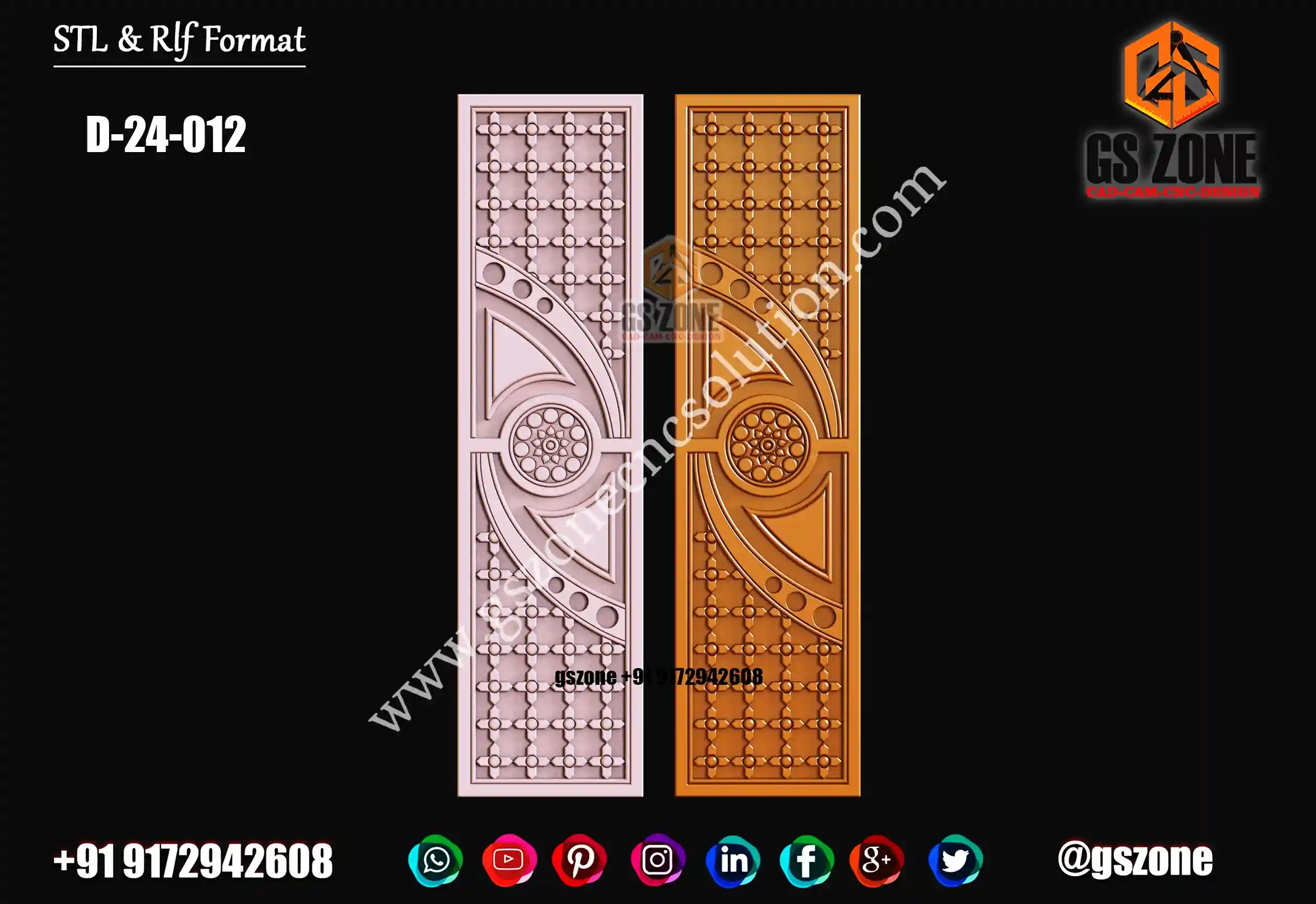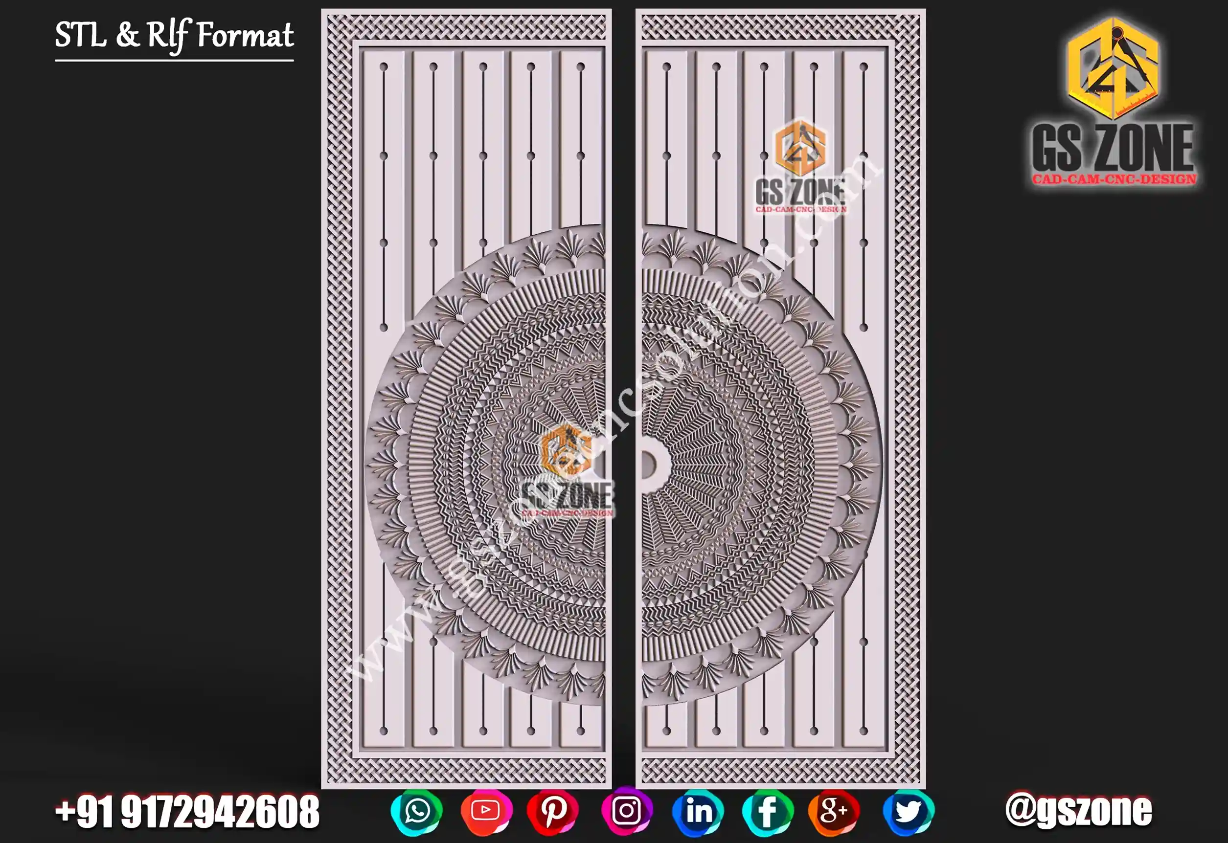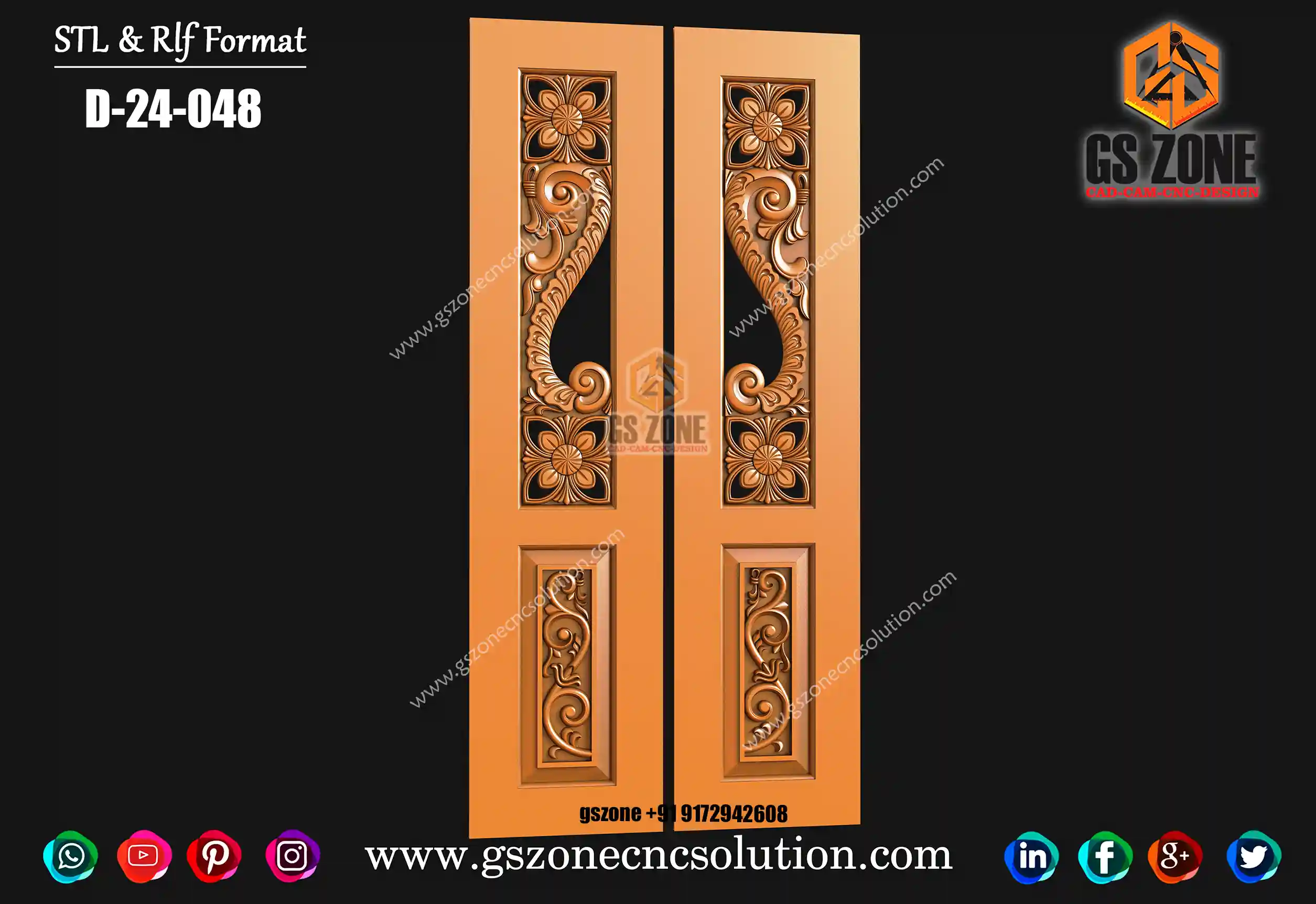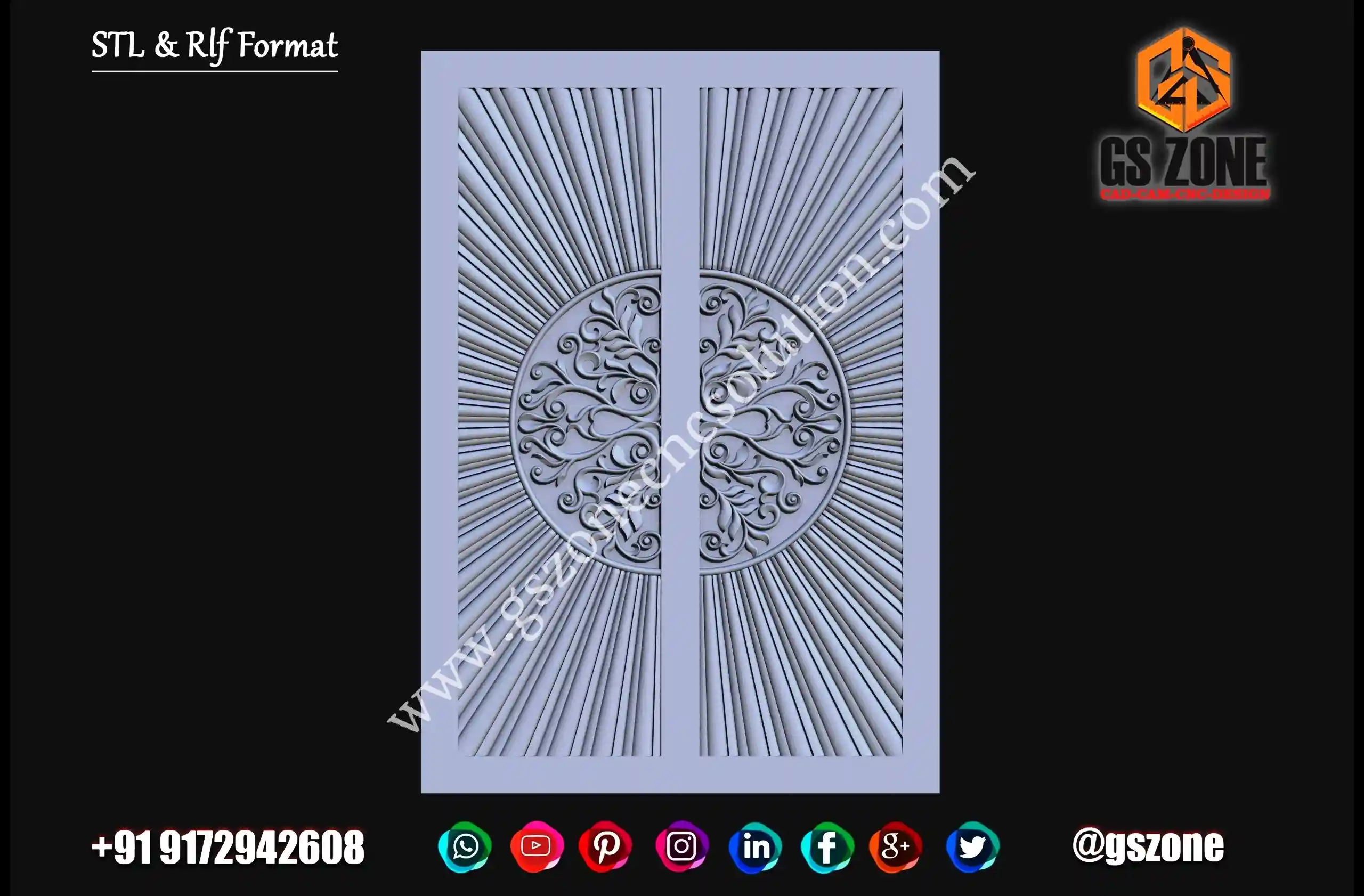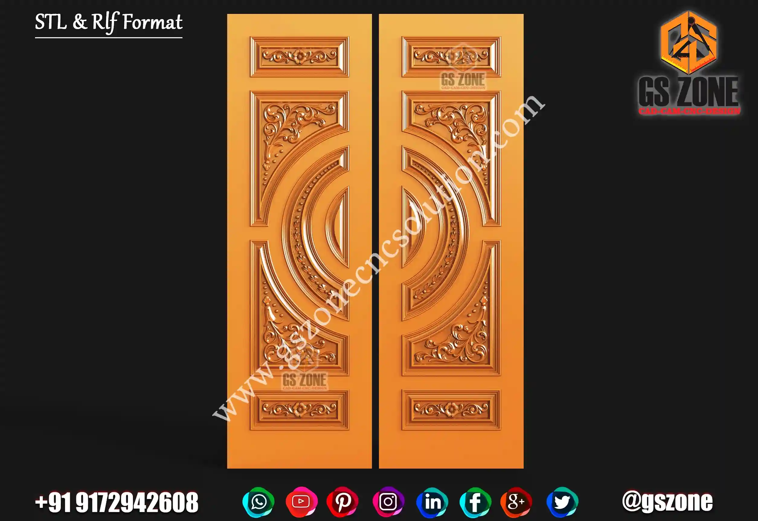 ✅ GSZONE 3D Designer Double Door Panel 🔖 Product Code: D-25-056 📐 Size (Each Panel): Height – 76 inches | Width – 20 inches 🌀 Z-Depth: 10 mm 📁 File Formats: .RLF & .STL (Fully Compatible with ArtCAM & CNC Routers)
