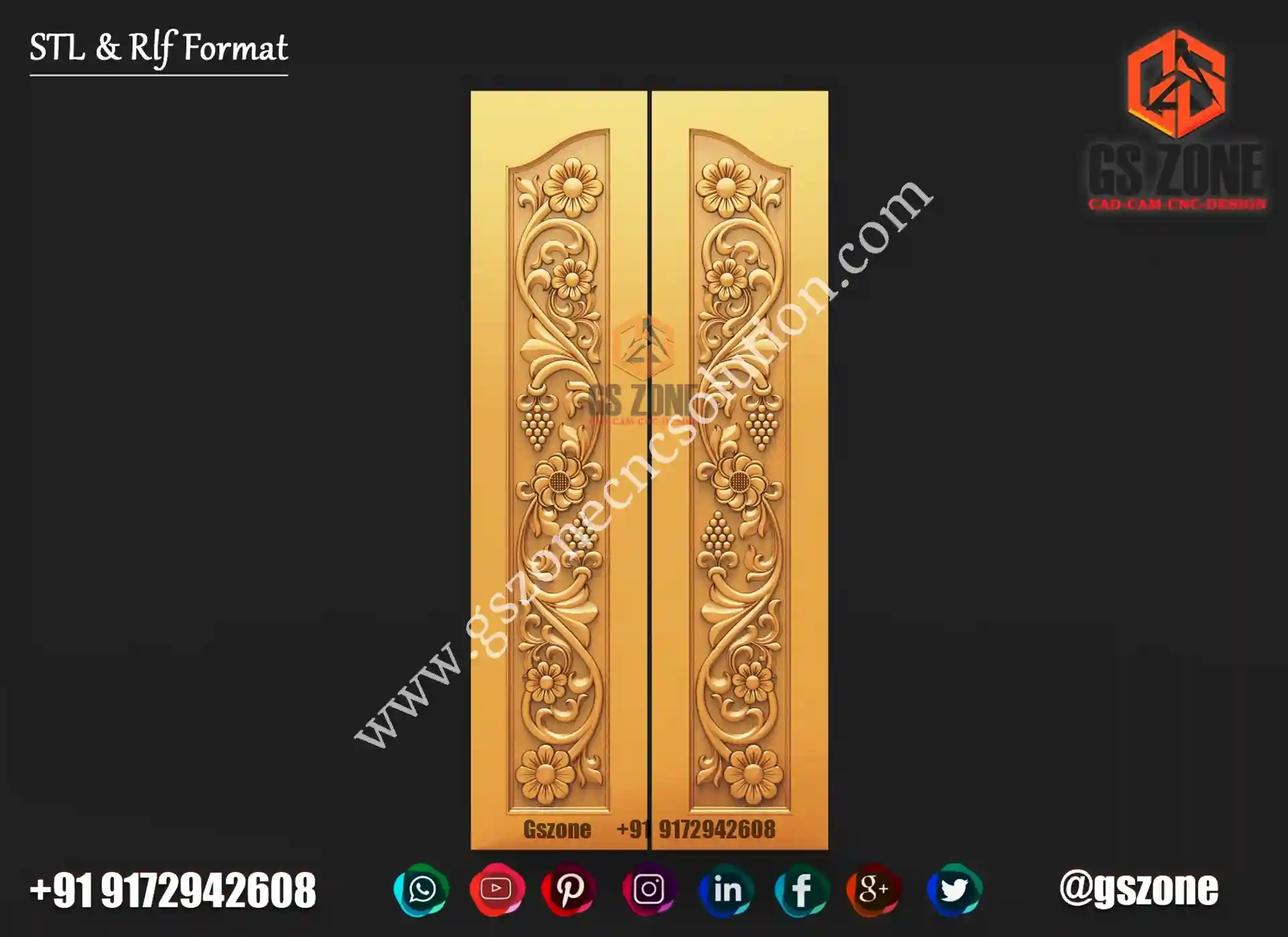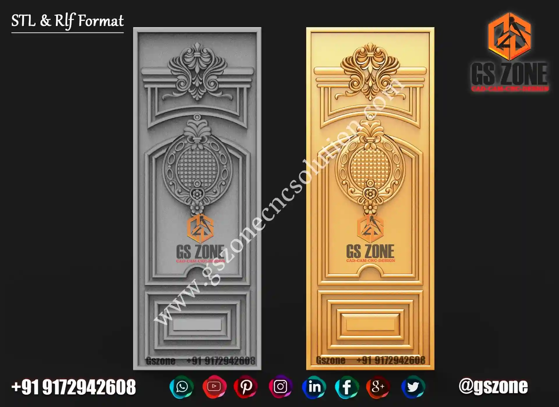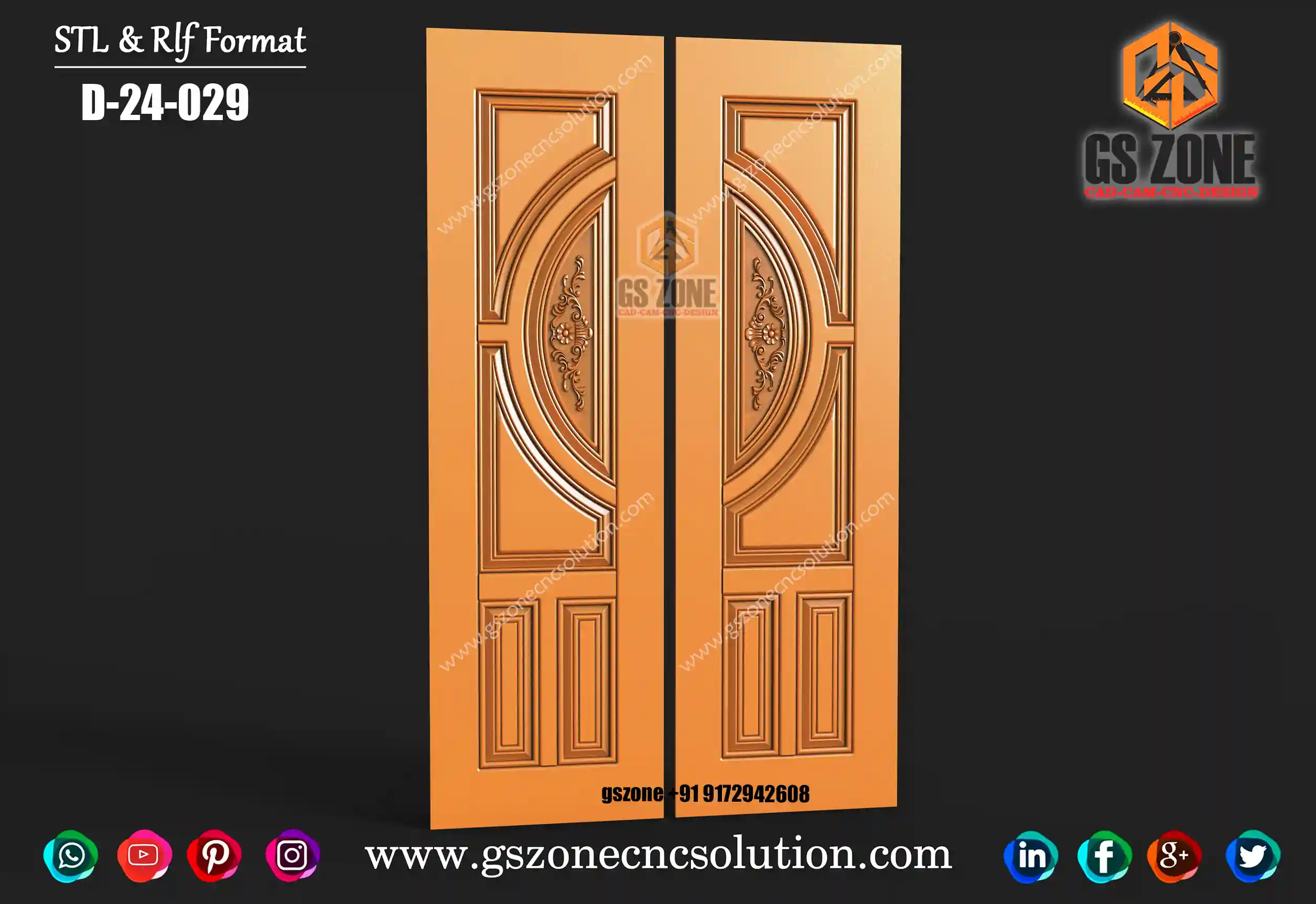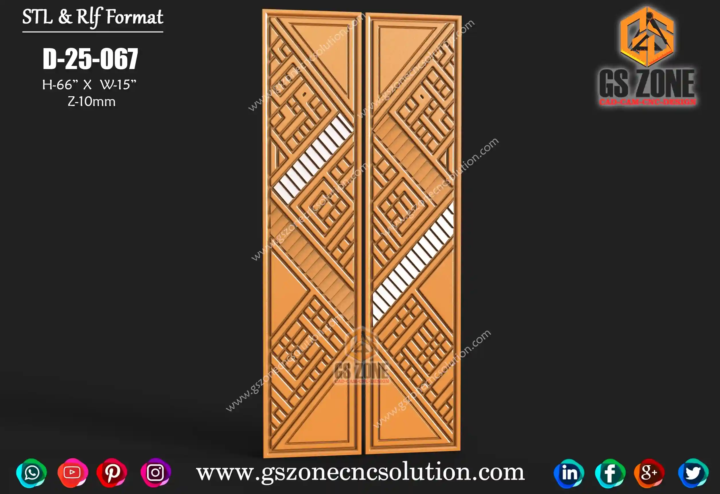✅ GSZONE 3D Designer Double Door Panel 🔖 Product Code: D-25-056 📐 Size (Each Panel): Height – 76 inches | Width – 20 inches 🌀 Z-Depth: 10 mm 📁 File Formats: .RLF & .STL (Fully Compatible with ArtCAM & CNC Routers)