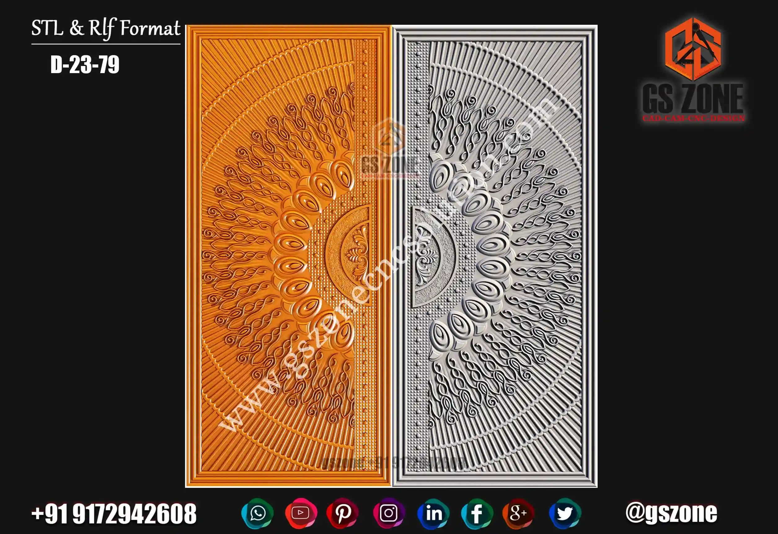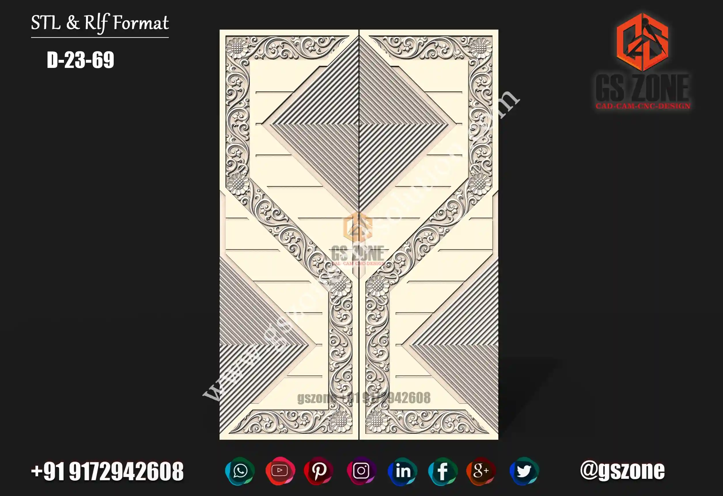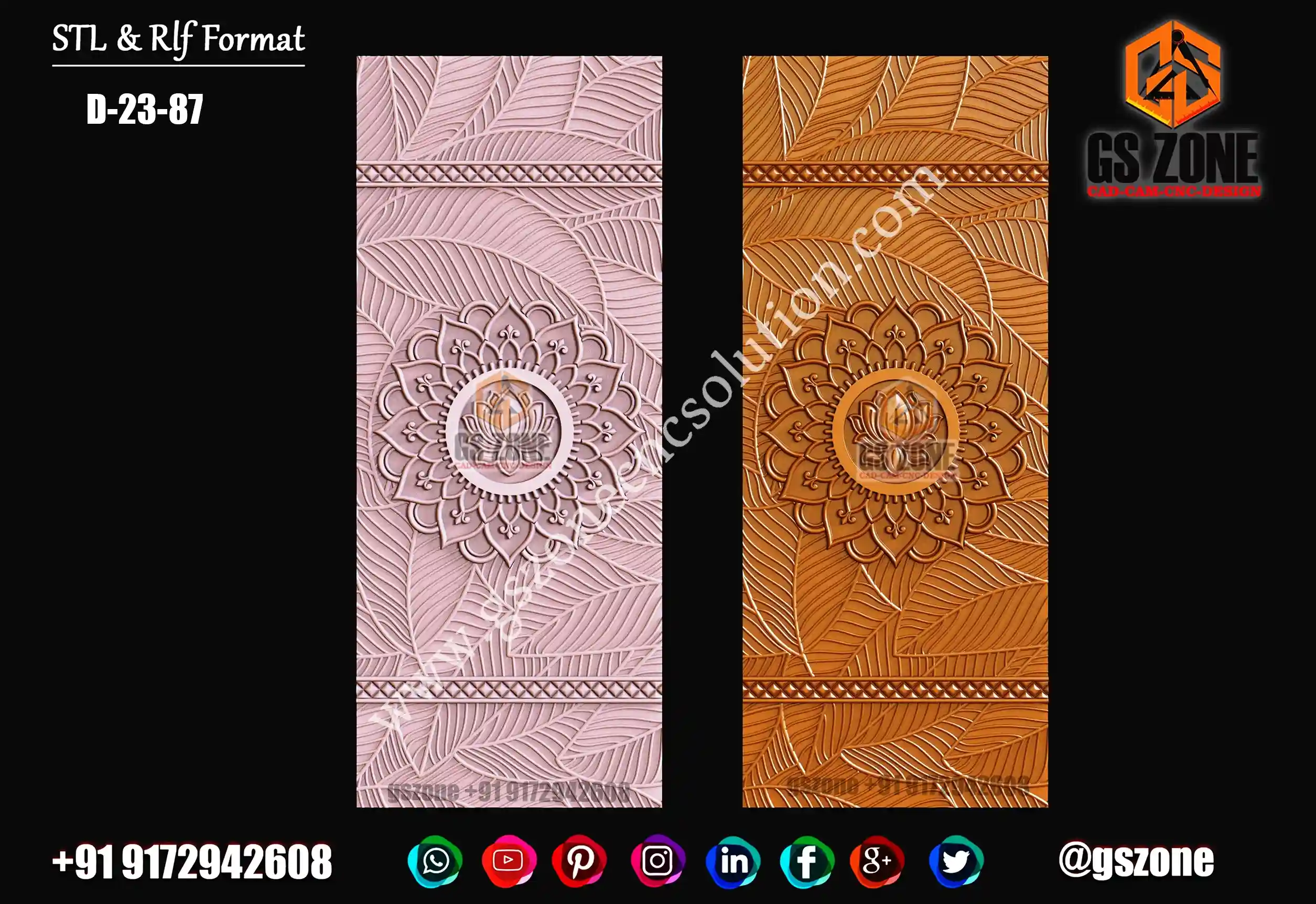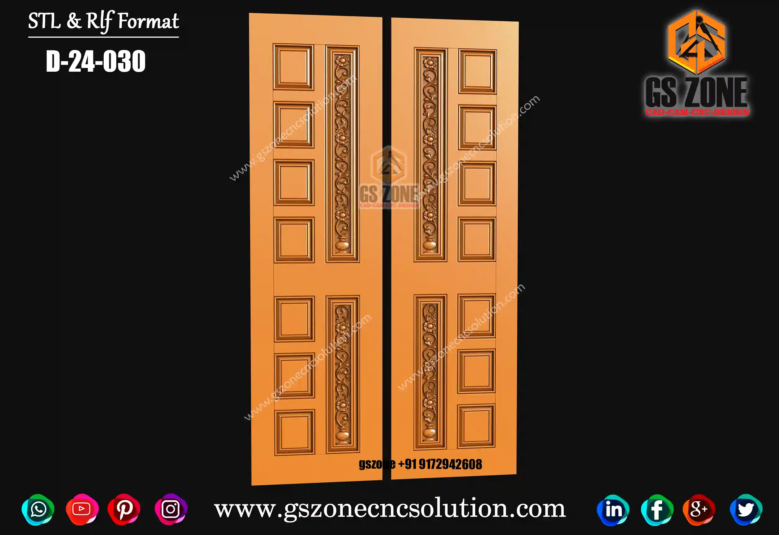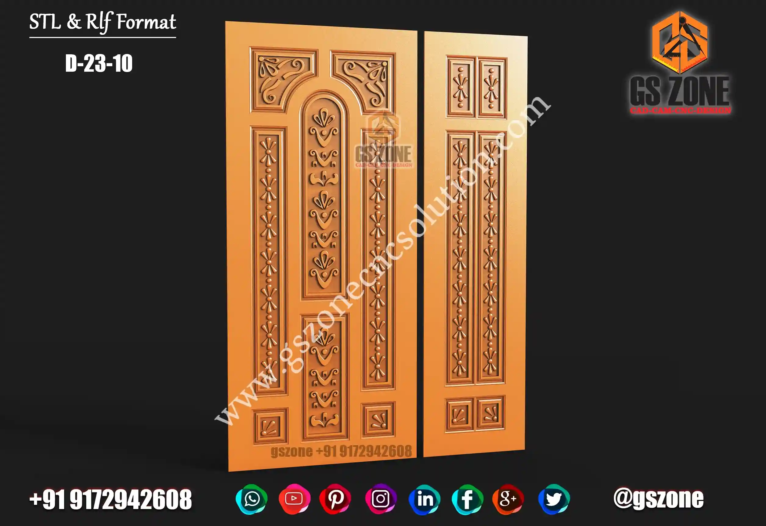 ✅ GSZONE 3D Designer Double Door Panel 🔖 Product Code: D-25-056 📐 Size (Each Panel): Height – 76 inches | Width – 20 inches 🌀 Z-Depth: 10 mm 📁 File Formats: .RLF & .STL (Fully Compatible with ArtCAM & CNC Routers)