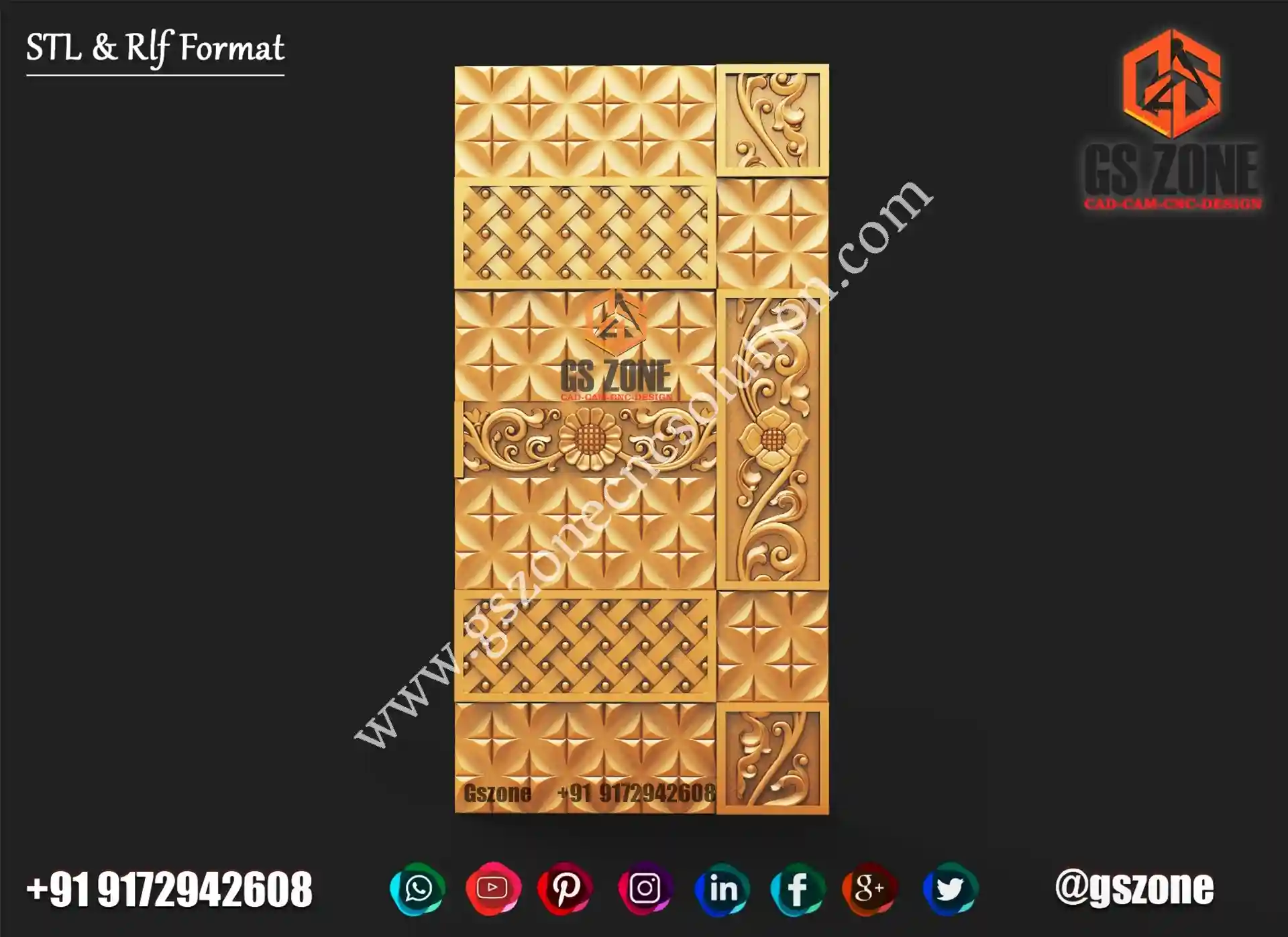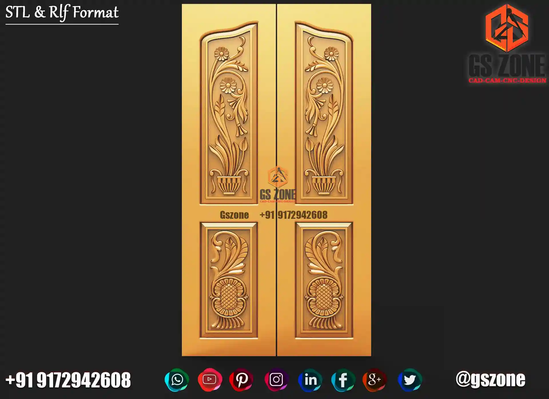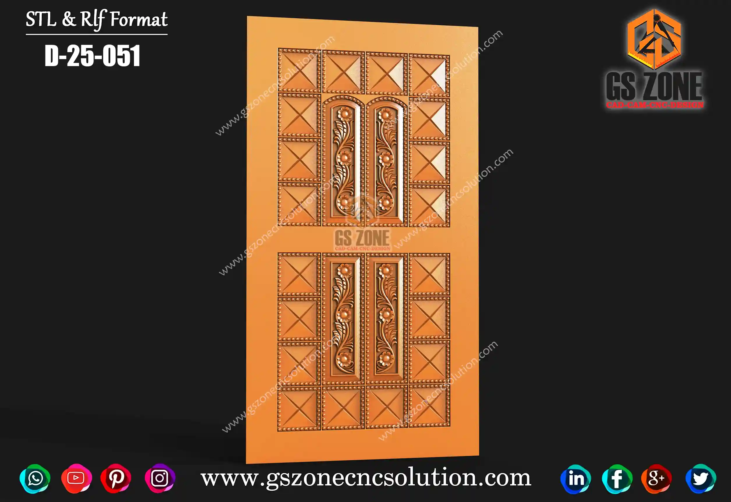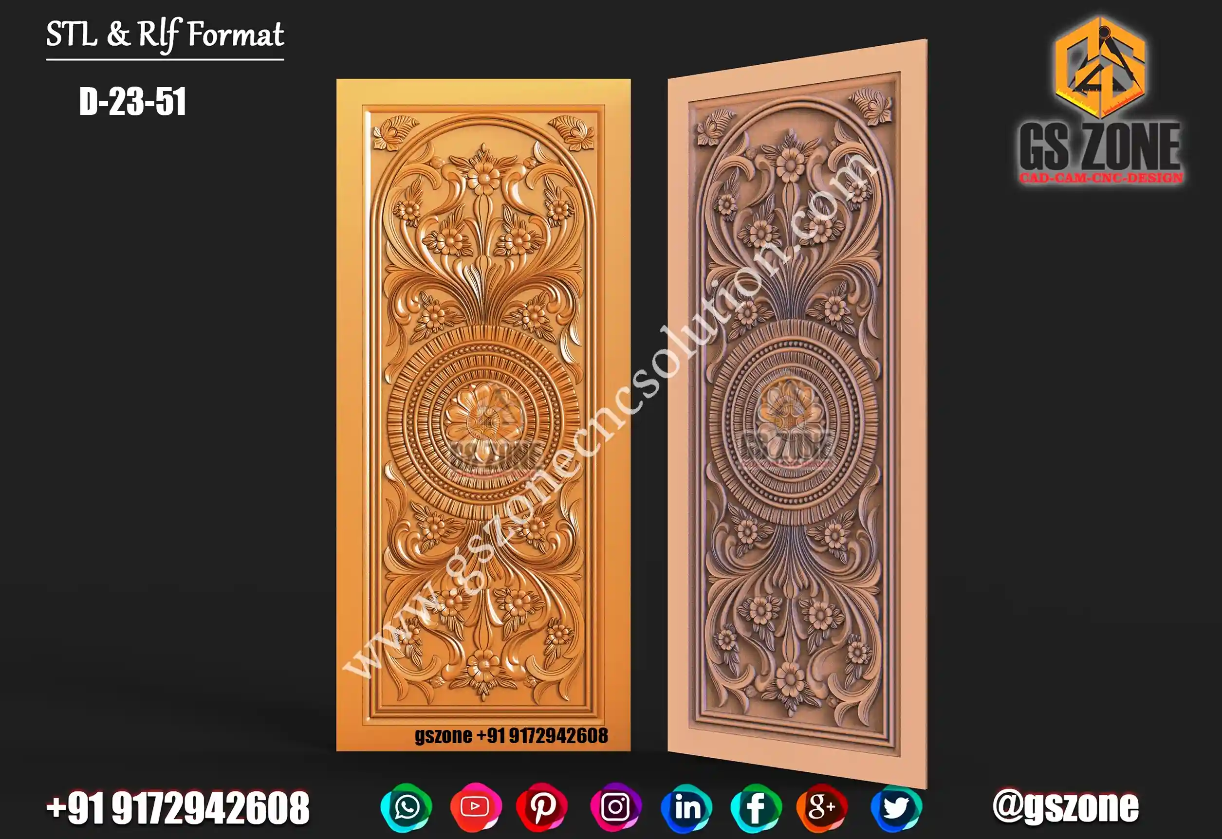 ✅ GSZONE 3D Designer Double Door Panel 🔖 Product Code: D-25-056 📐 Size (Each Panel): Height – 76 inches | Width – 20 inches 🌀 Z-Depth: 10 mm 📁 File Formats: .RLF & .STL (Fully Compatible with ArtCAM & CNC Routers)