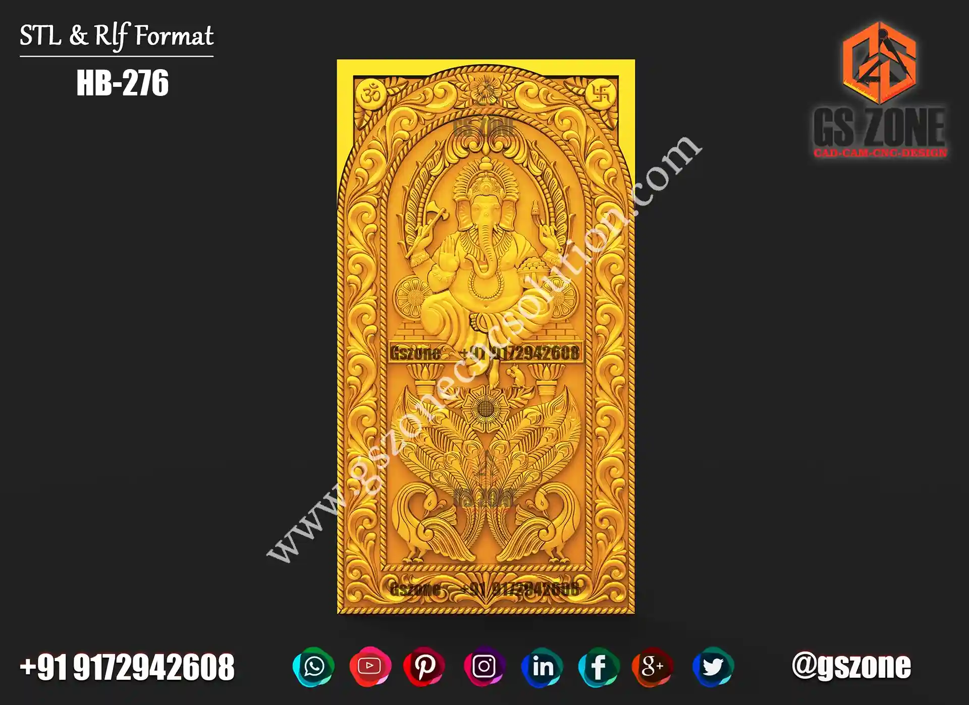 🚪 GSZONE 3D Ganesh Pooja Door Design – Royal Temple Style Panel 🔖 Product Code: D-25-045 📐 Size: H – 62" × W – 25" × Z – 15mm 📁 File Formats: STL & RLF (CNC Ready)