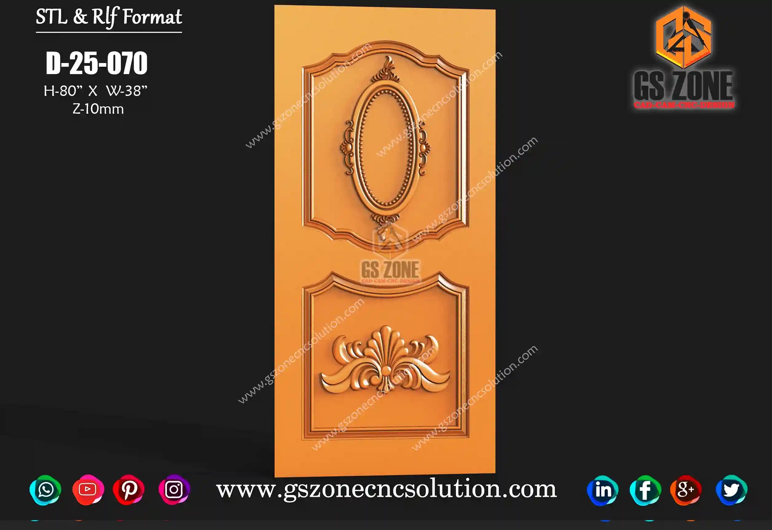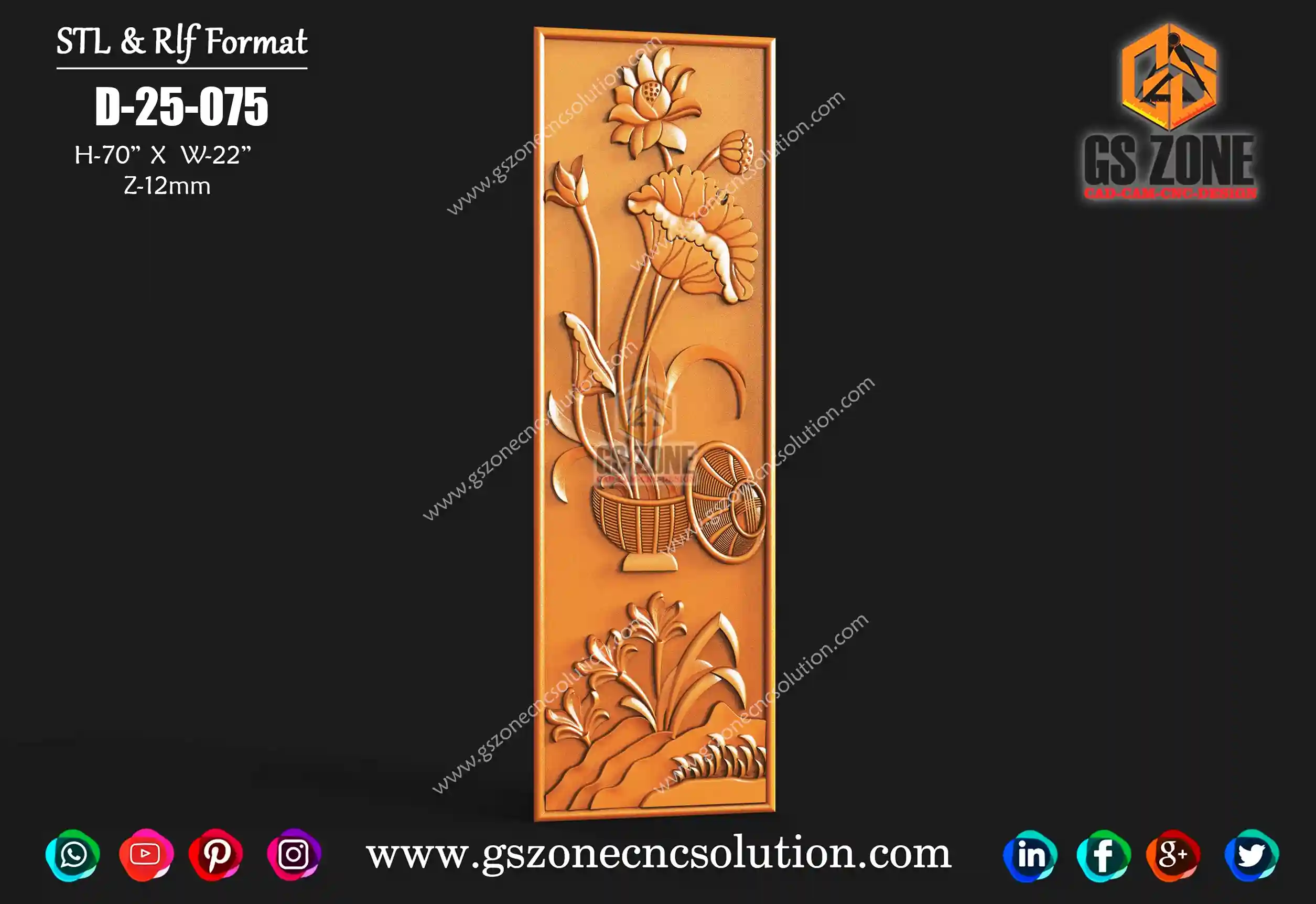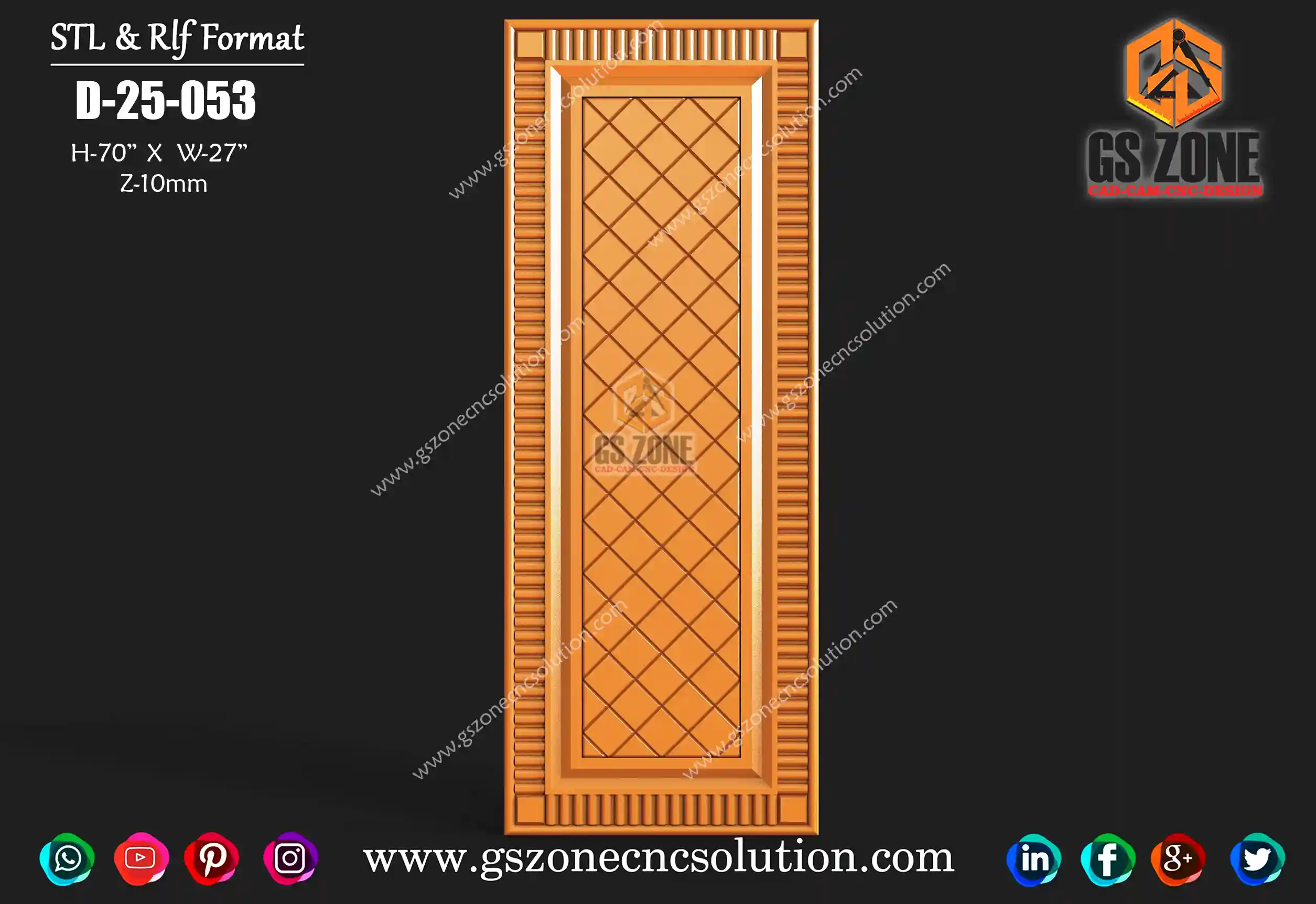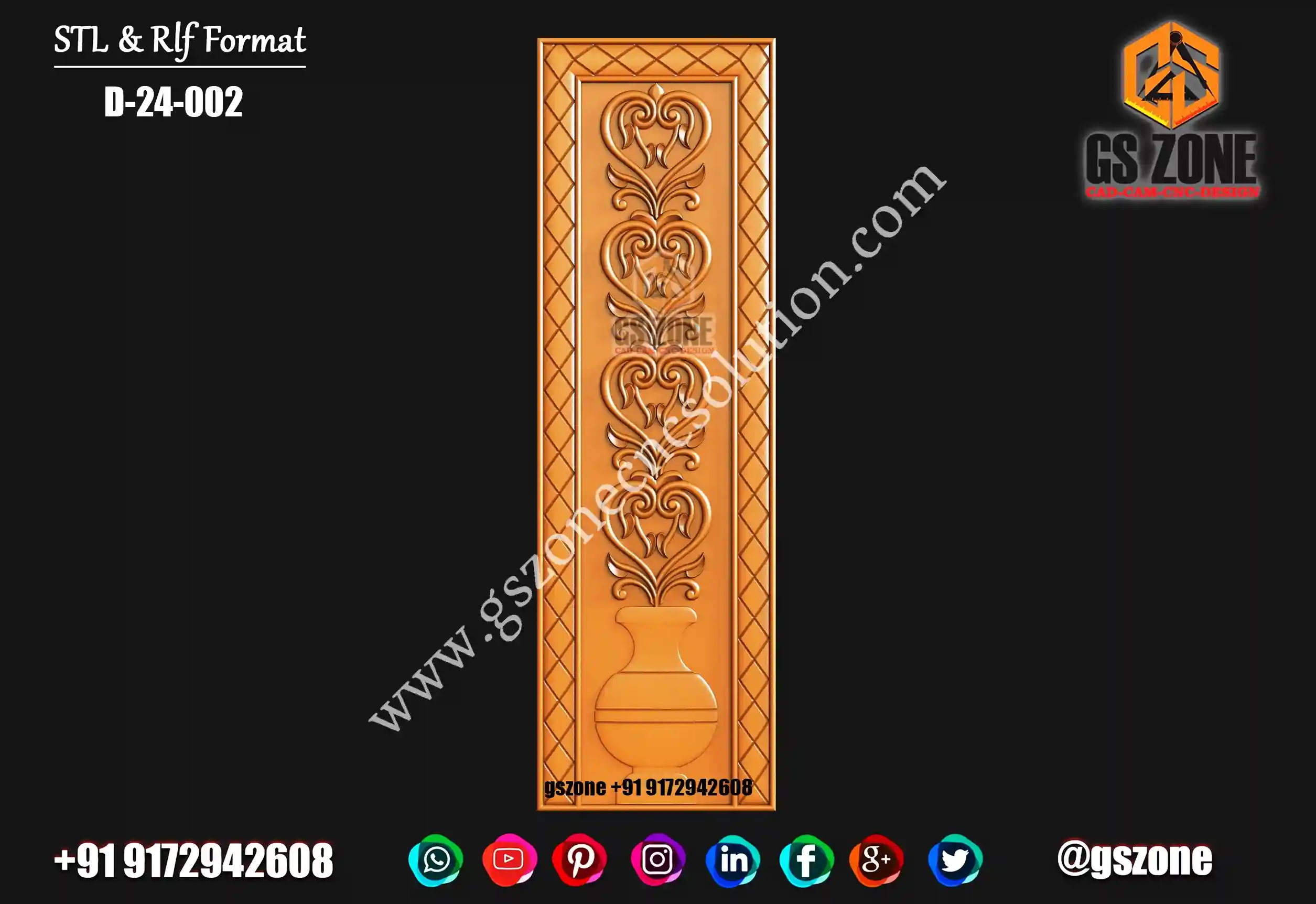 🪵 GSZone Door Design | D-25-075 📏 Size & Dimensions: Height – 70 inch | Width – 22 inch ⚙️ Z-Depth: 12 mm 💾 File Formats: 🗂️ .STL & .RLF